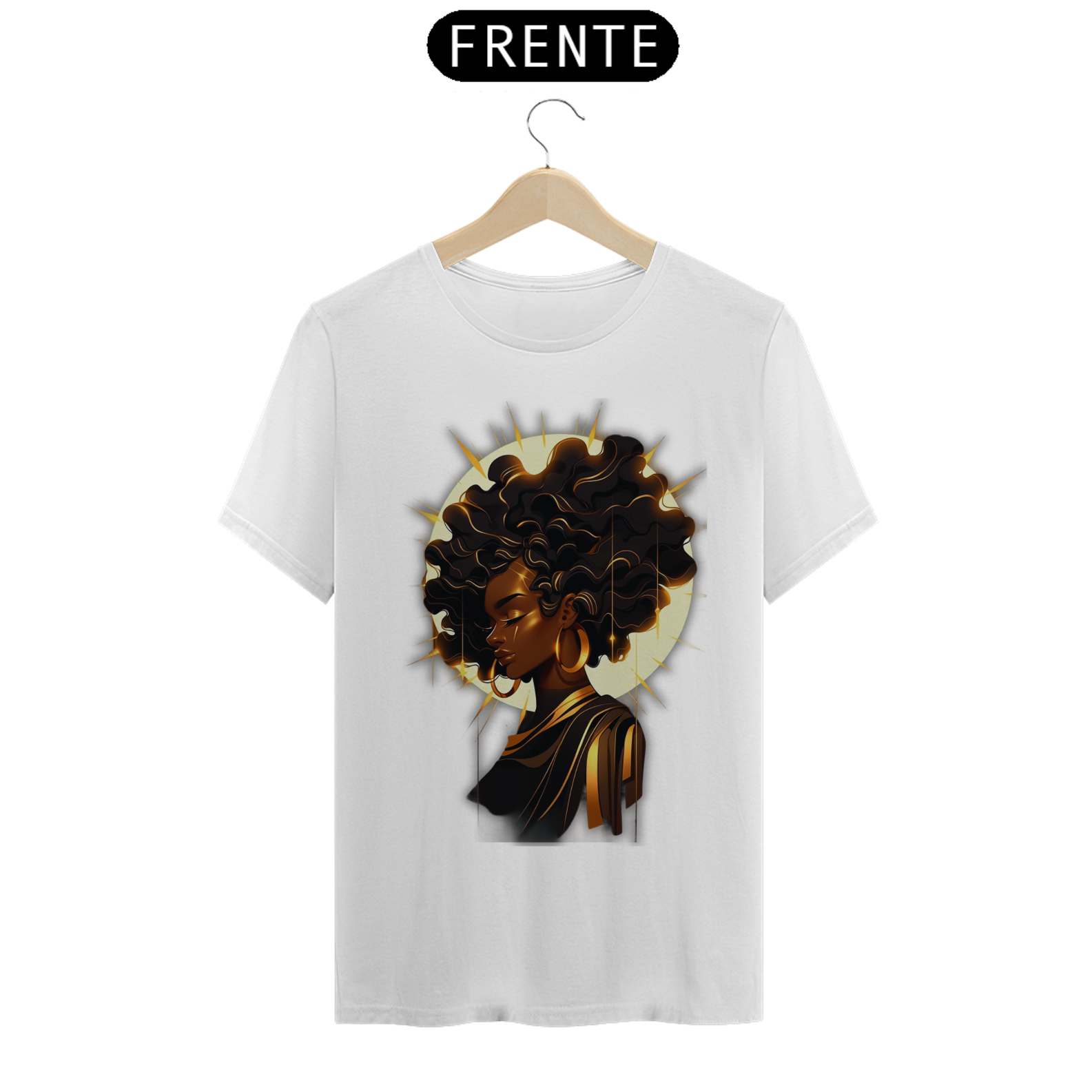 A estampa 'Brilho de Oshun' traz a magnificência da deusa africana Oshun, cuja presença é resplandecente como os raios de sol. Com traços de ilustração vibrantes e um fundo que representa o esplendor da água, essa arte captura a energia e a feminilidade exuberantes associadas a Oshun. Oshun é uma deusa reverenciada pela sua conexão com os rios, a fertilidade e o amor. Use essa camiseta e celebre a luz radiante de Oshun, conectando-se com a energia da água doce e com a essência divina dessa poderosa deusa africana.