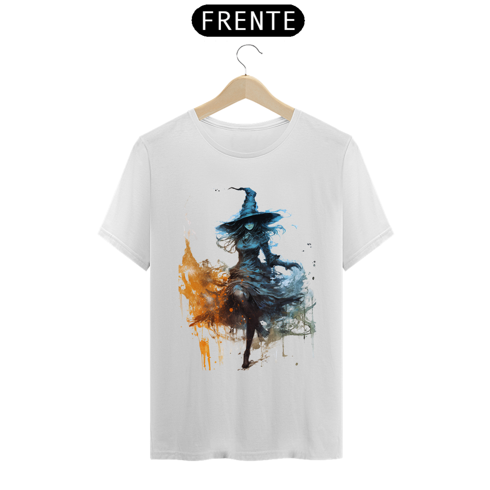 1. Descrição: "Nesta camiseta mística, uma bruxa poderosa domina os elementos da água e do fogo. Seus movimentos fluem como as ondas e suas chamas dançam em perfeita harmonia. Uma representação fascinante do equilíbrio entre as forças da natureza."