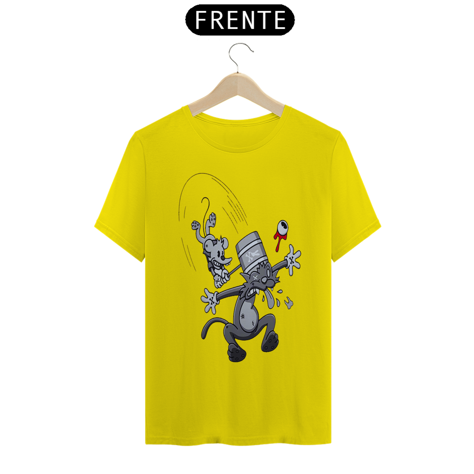 Volte no tempo com a nossa estampa de camiseta "Comichão e Coçadinha: A Marretada Surpreendente". Nessa criação em preto e branco, inspirada nas animações dos anos 193, testemunhe um momento de caos entre o rato e o gato. O rato, com uma expressão travessa, dá uma marretada na cabeça do gato, enquanto este último exibe uma reação de surpresa. Essa cena humorística e cheia de ação é uma representação das travessuras e desventuras que esses personagens icônicos vivenciam. Vista essa camiseta e deixe que "Comichão e Coçadinha: A Marretada Surpreendente" seja uma expressão do seu amor pelo humor clássico e pela nostalgia dos desenhos animados antigos. Celebre a loucura engraçada que surge das perseguições e brincadeiras intermináveis entre o rato e o gato. Que essa estampa seja um lembrete constante de que o humor atemporal pode trazer alegria mesmo nas situações mais inesperadas.