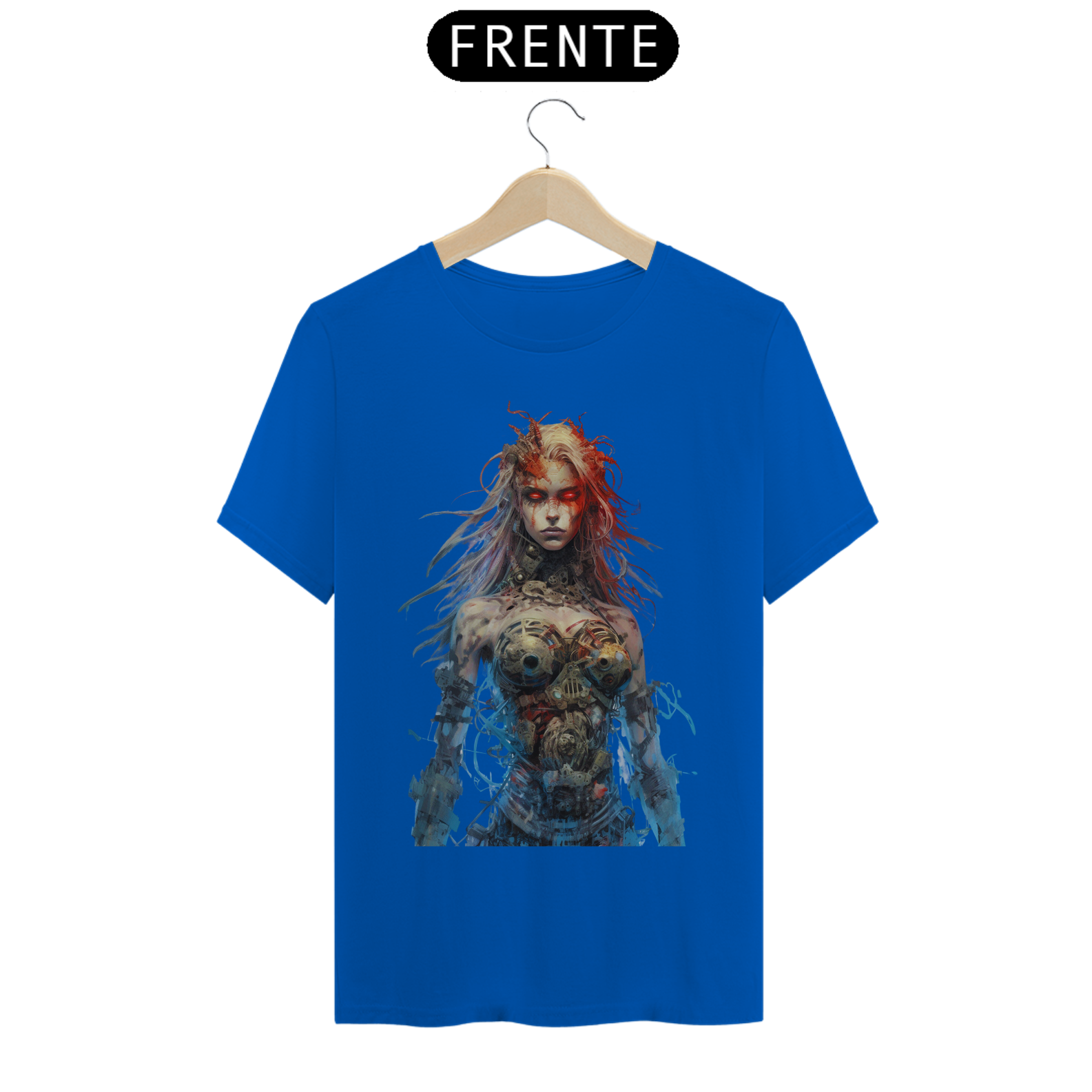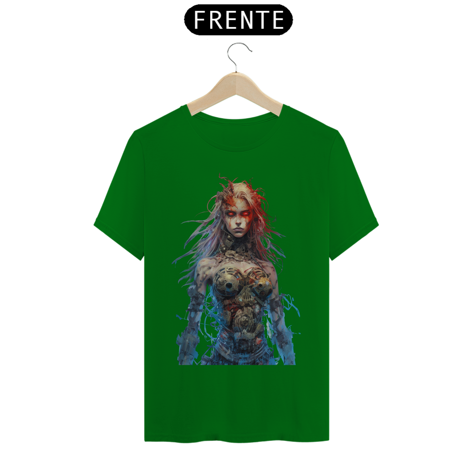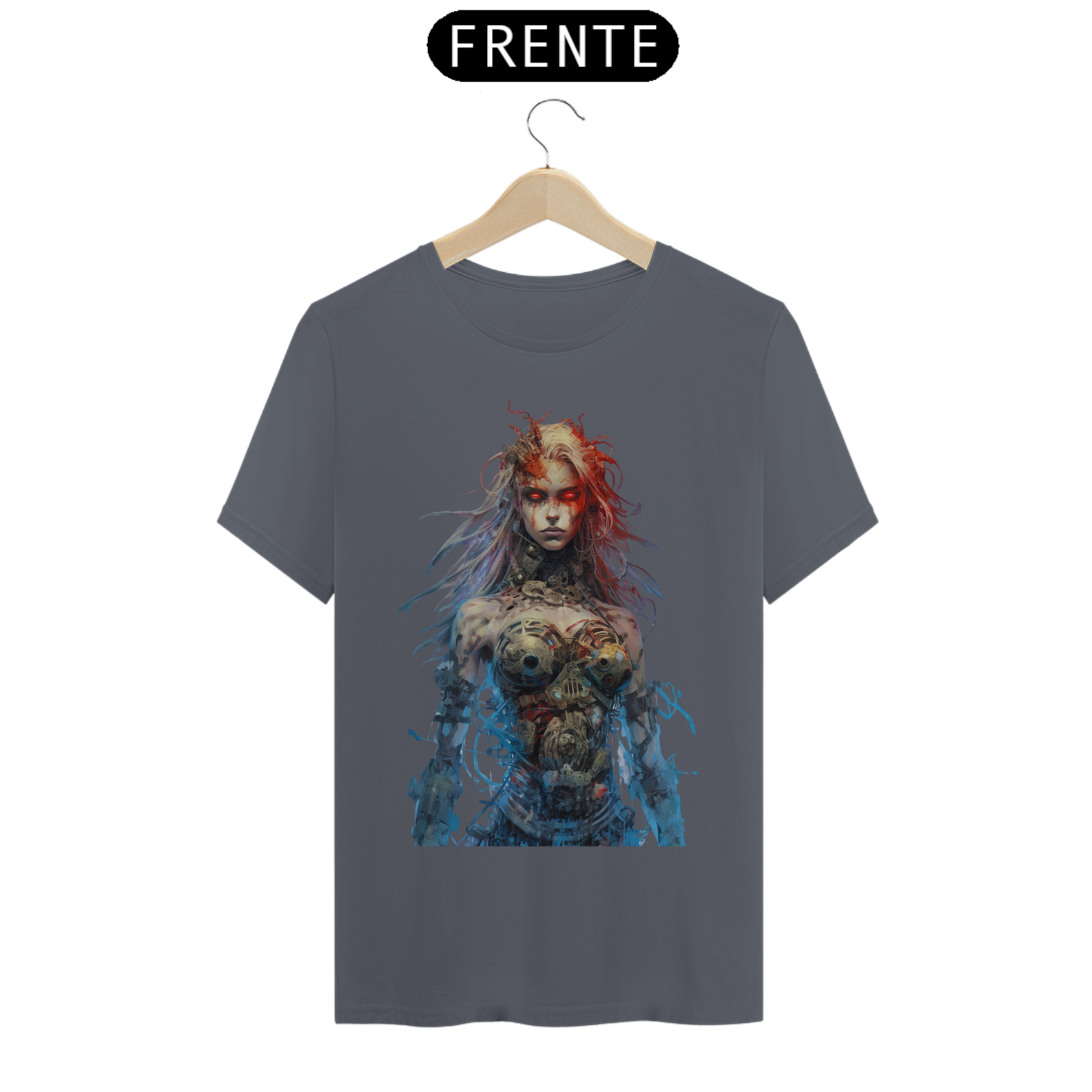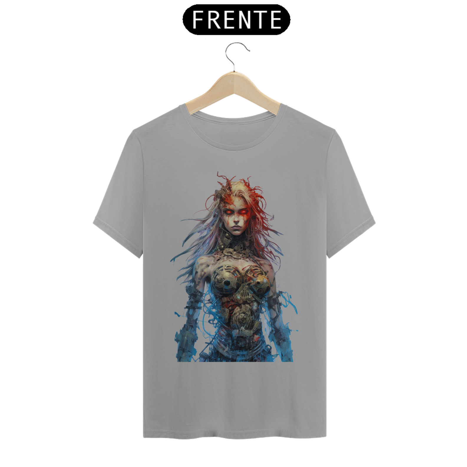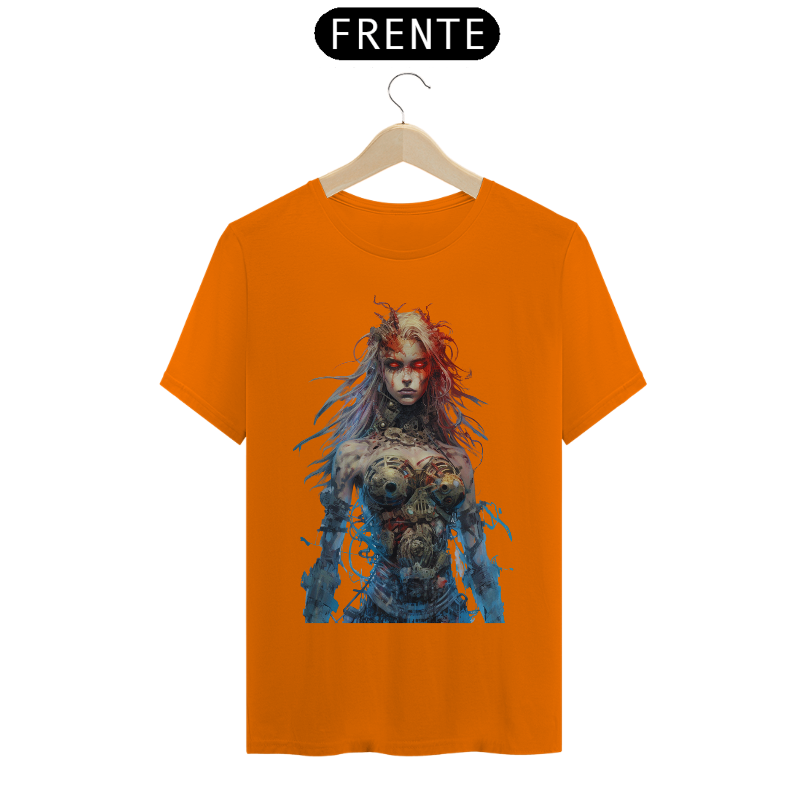 Nesta estampa intrigante, uma figura misteriosa emerge do mundo dos avanços tecnológicos. Uma mulher com partes cibernéticas se destaca, seus olhos brilhantes de um vermelho intenso refletem uma energia ardente. Fios soltos e conectores expostos em seu corpo cibernético adicionam um toque de caos e rebeldia à sua aparência. Ela personifica a fusão entre a tecnologia e a humanidade, transmitindo uma sensação de poder e determinação. Seu olhar penetrante revela uma mistura de mistério e ousadia, enquanto seu semblante transmite a força que ela incorpora. Essa estampa desperta a curiosidade e a imaginação, convidando os espectadores a explorar as fronteiras entre o homem e a máquina, entre a fragilidade e a inquebrável determinação.