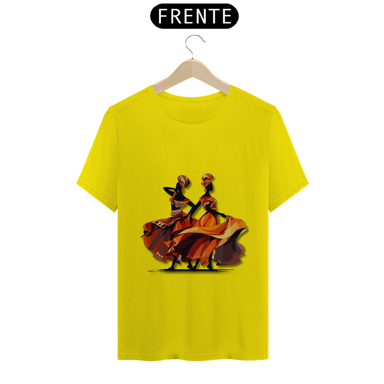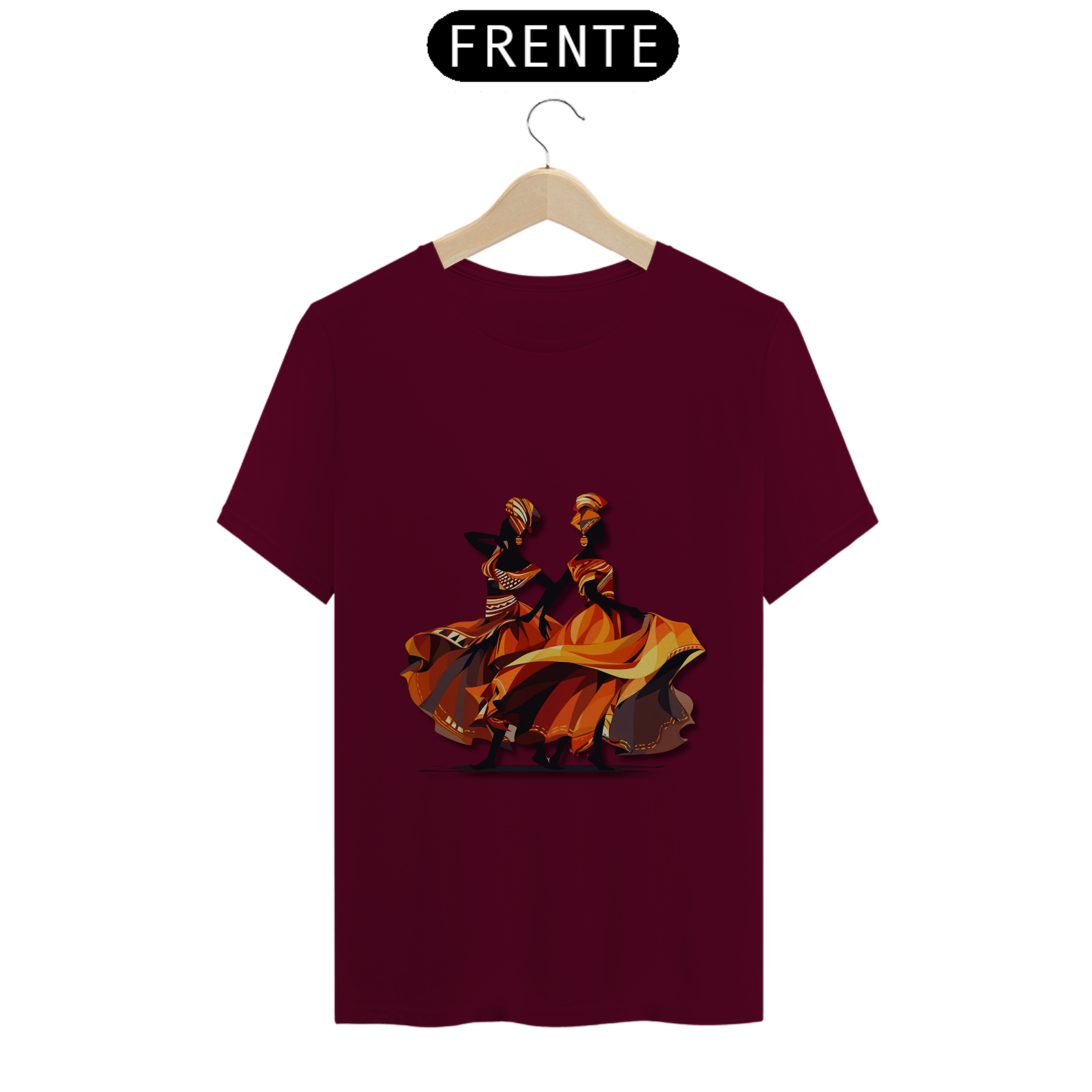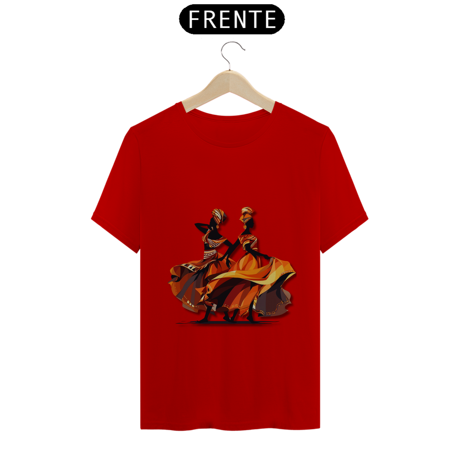 A estampa 'Dançarinas Africanas' traz uma ilustração de arte vetorial inspirada nos movimentos graciosos e vibrantes das danças africanas. Com uma combinação de cores que inclui tons de vermelho escuro e âmbar claro, laranja claro e cinza escuro, essa criação artística representa a energia e a expressividade da cultura africana. A estampa destaca o contraste ousado de chiaroscuro e a identidade simbólica presente nas danças tradicionais. Com uma estética caravaggesque e roupas elegantes, essa estampa é uma celebração da diversidade e da beleza da cultura africana. Vista-se com orgulho e deixe essas dançarinas africanas inspirarem sua própria dança pela vida.