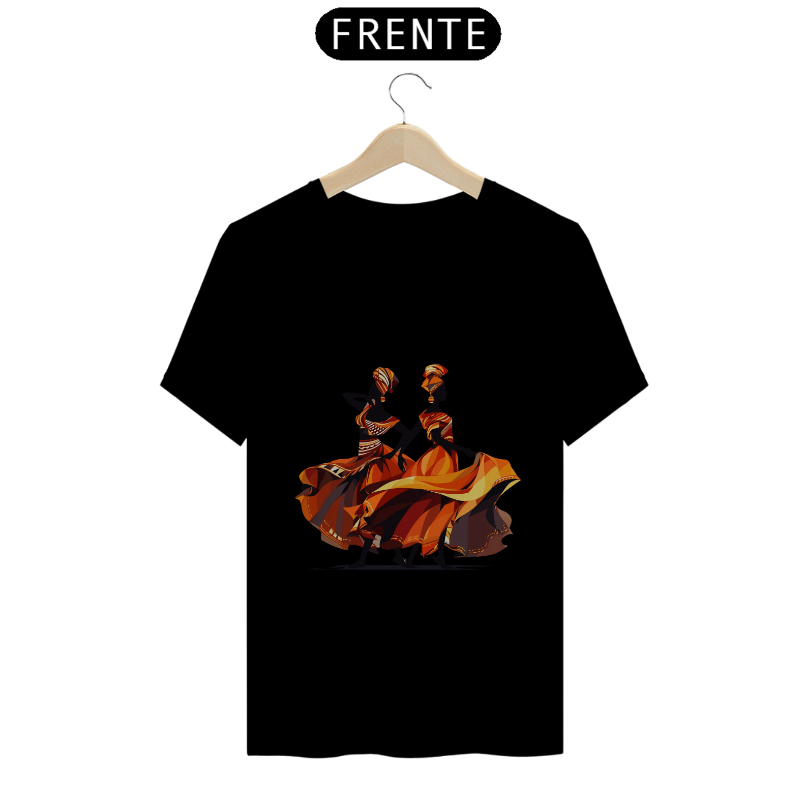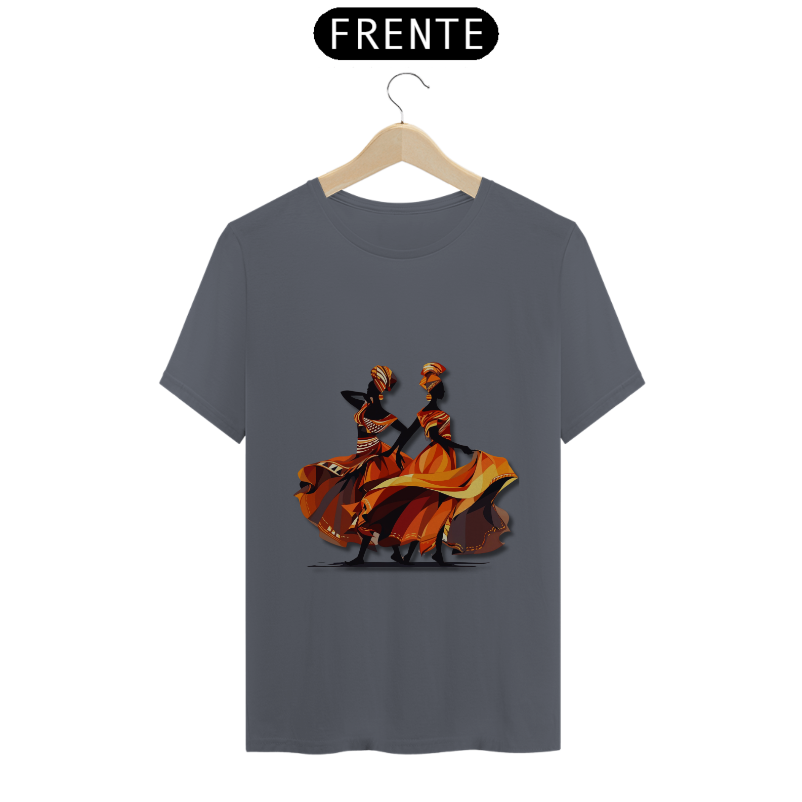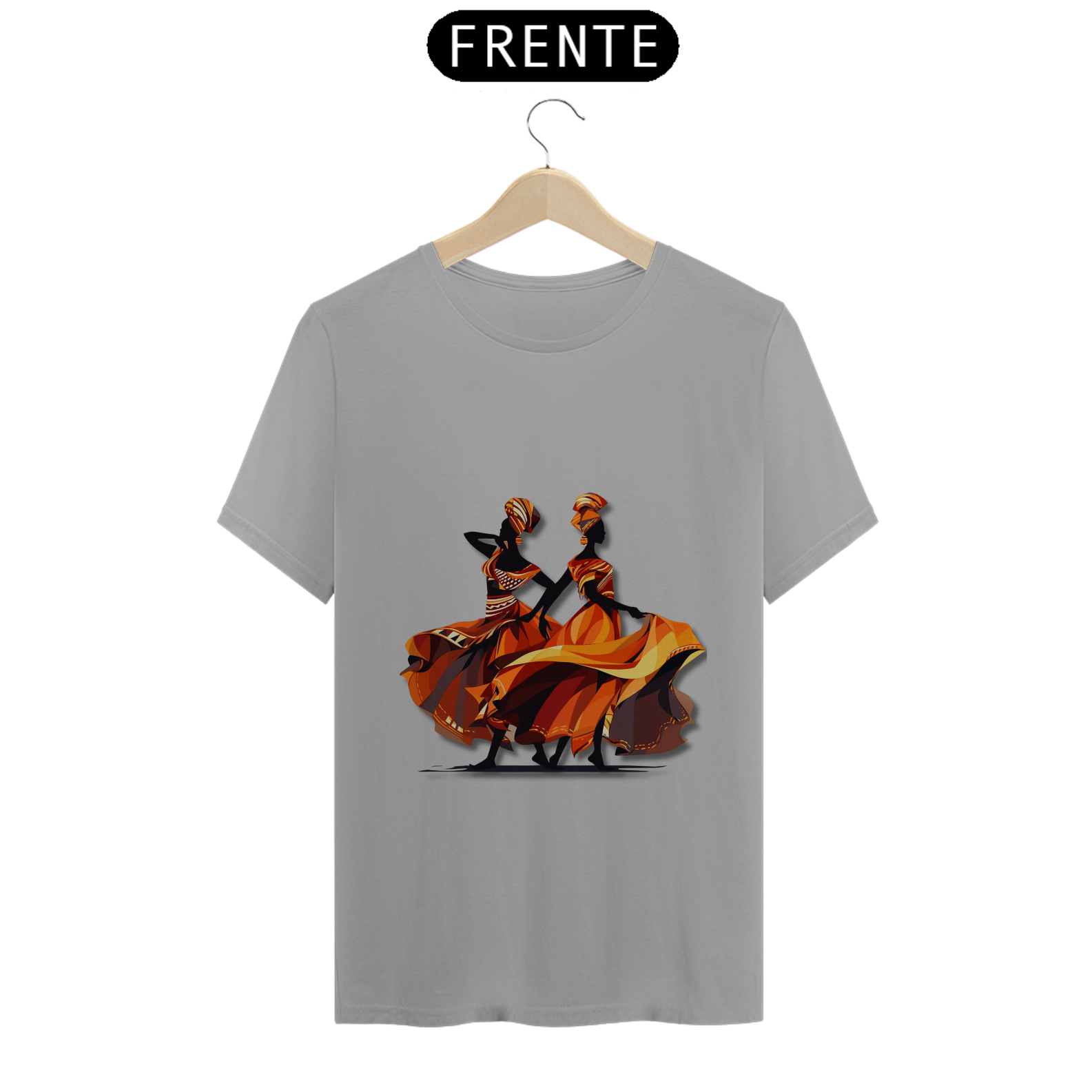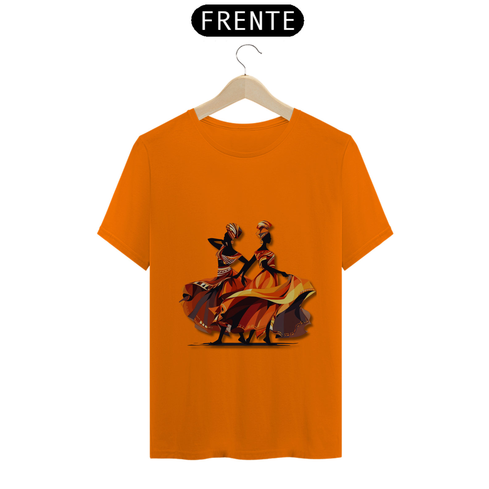 A estampa 'Dançarinas Africanas' traz uma ilustração de arte vetorial inspirada nos movimentos graciosos e vibrantes das danças africanas. Com uma combinação de cores que inclui tons de vermelho escuro e âmbar claro, laranja claro e cinza escuro, essa criação artística representa a energia e a expressividade da cultura africana. A estampa destaca o contraste ousado de chiaroscuro e a identidade simbólica presente nas danças tradicionais. Com uma estética caravaggesque e roupas elegantes, essa estampa é uma celebração da diversidade e da beleza da cultura africana. Vista-se com orgulho e deixe essas dançarinas africanas inspirarem sua própria dança pela vida.