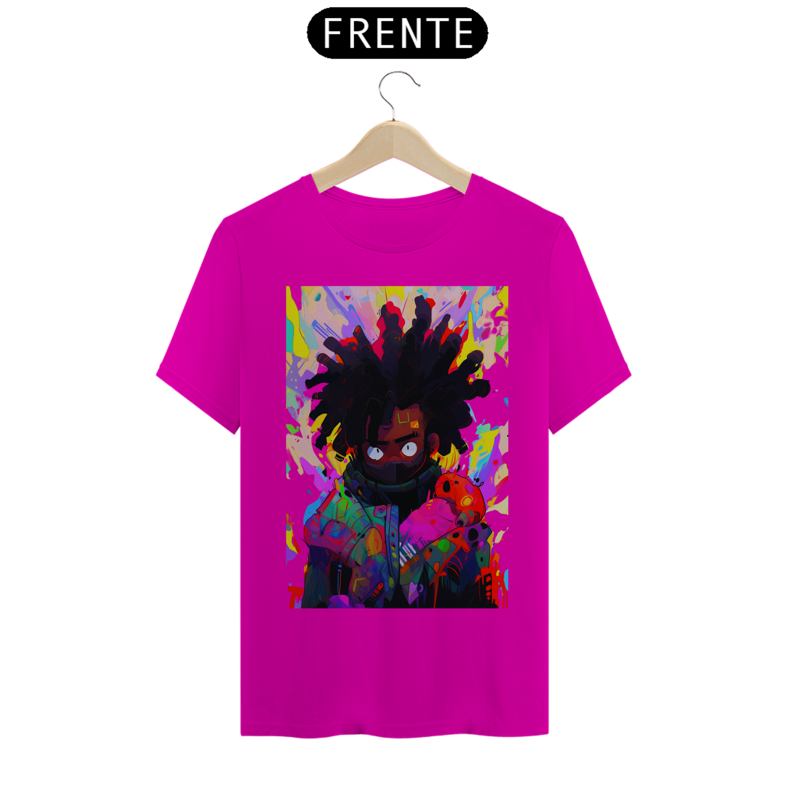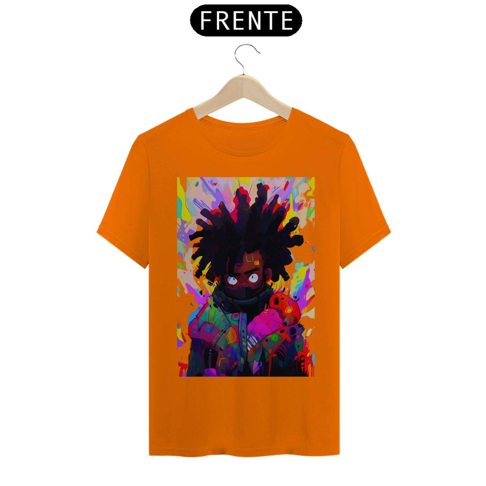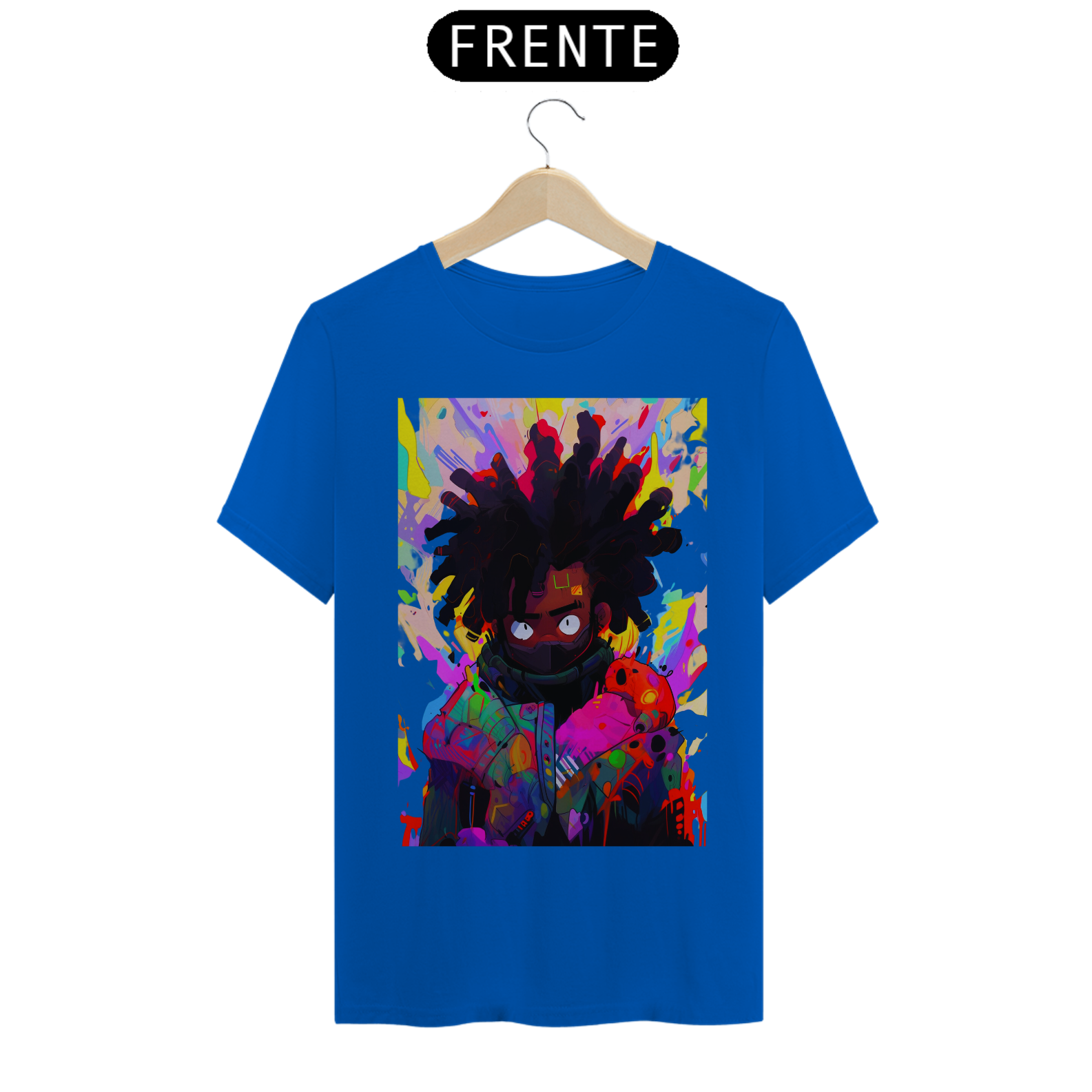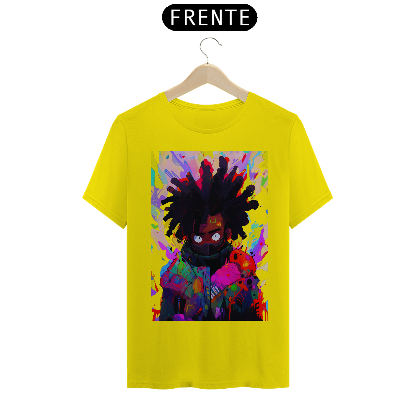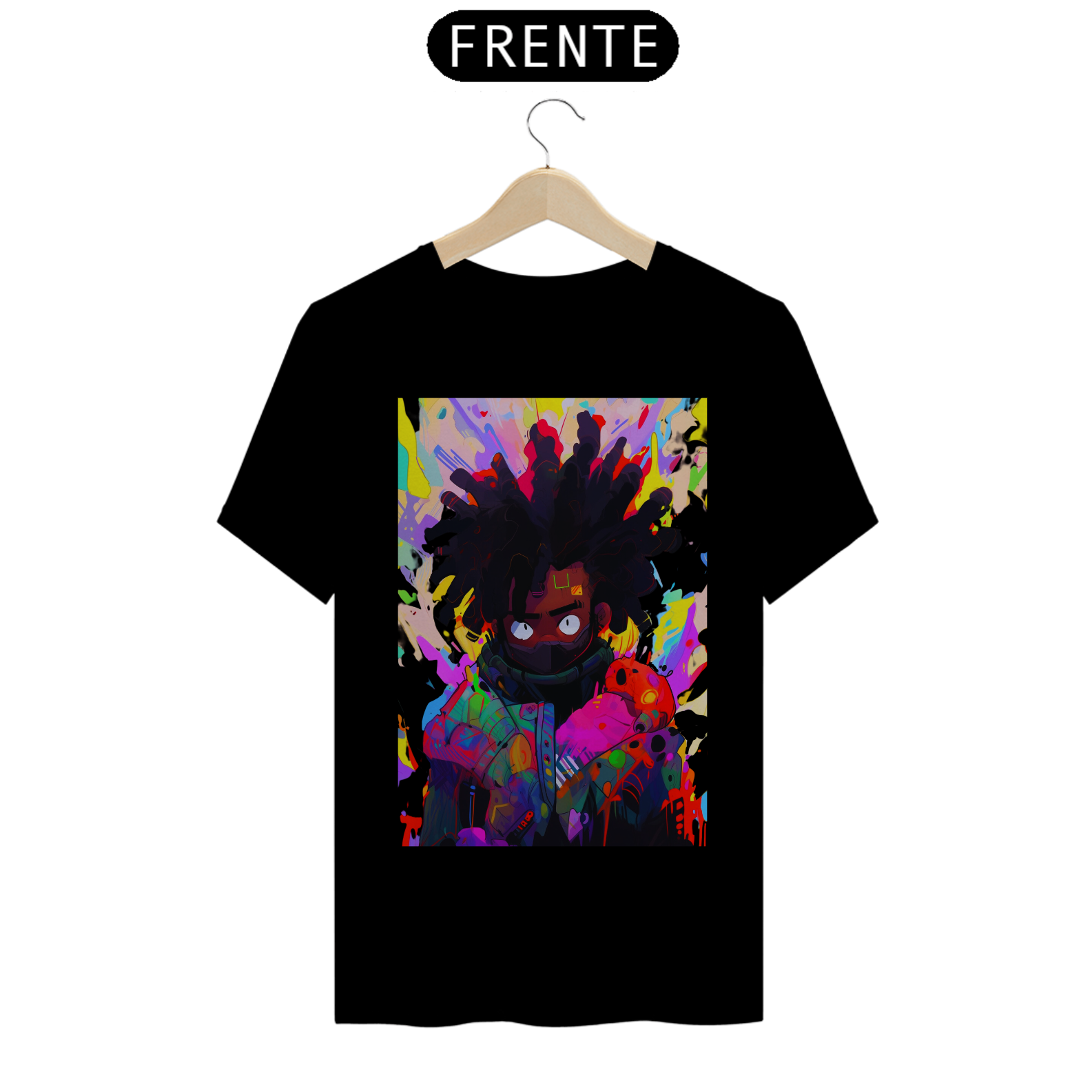 Acompanhe o movimento do pincel e se encante com a beleza desse retrato colorido e cheio de vida. Celebre a diversidade e a riqueza da arte afrofuturista, unida em uma estampa que é uma verdadeira obra de arte em movimento