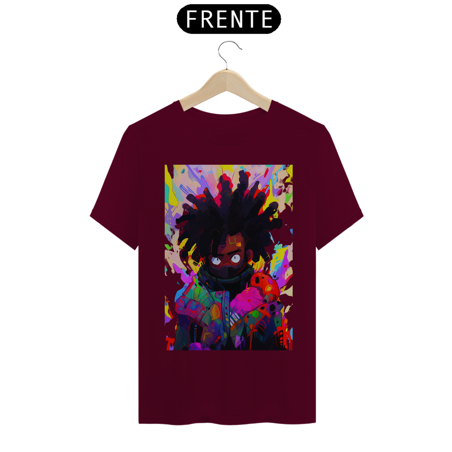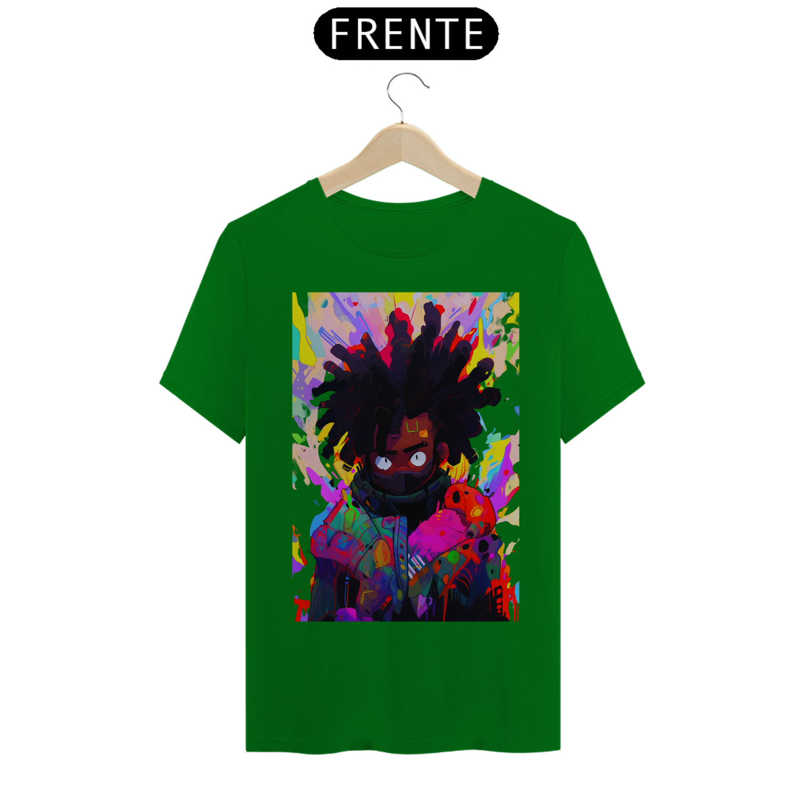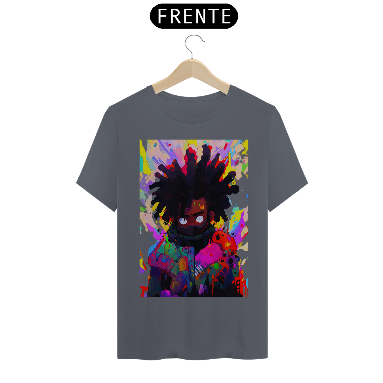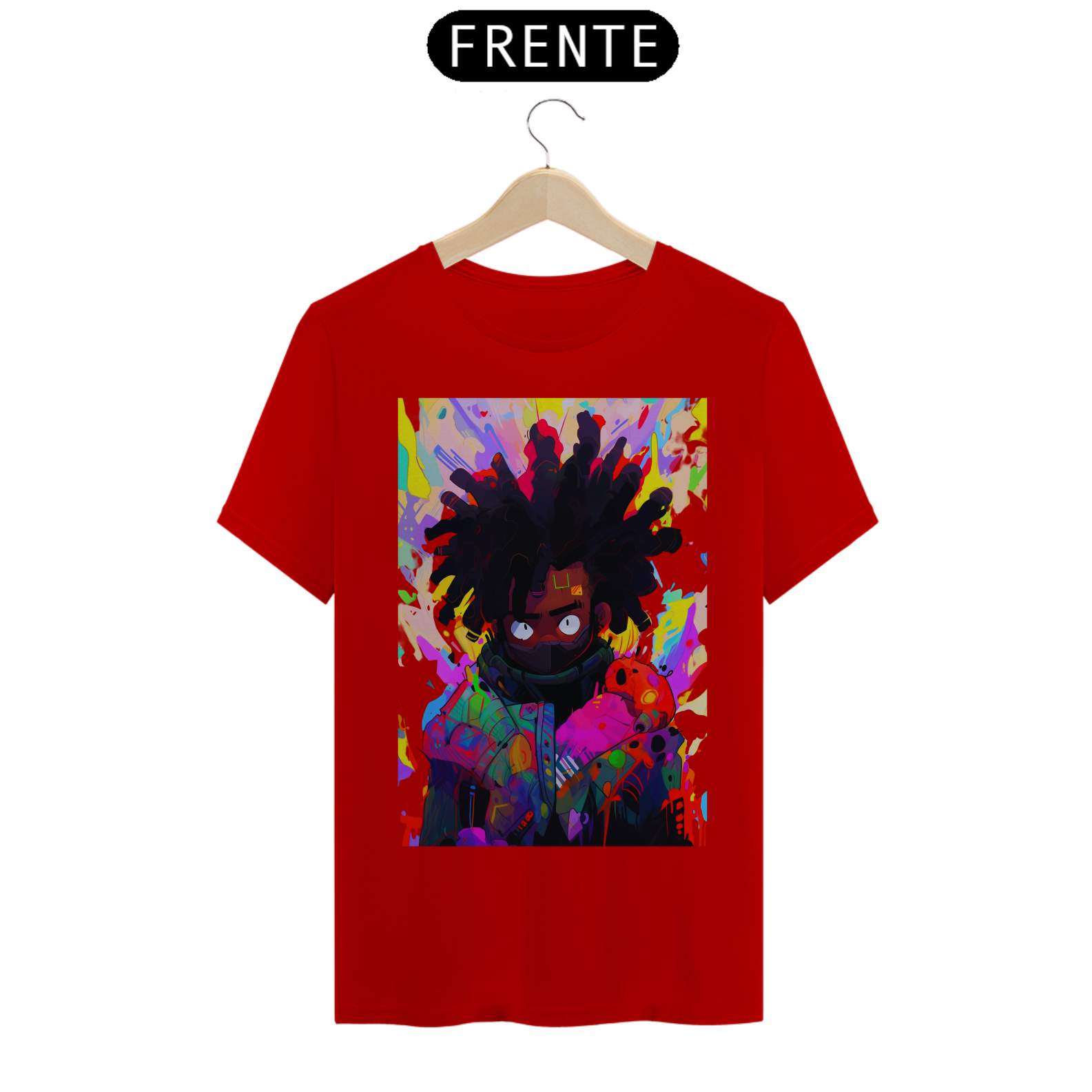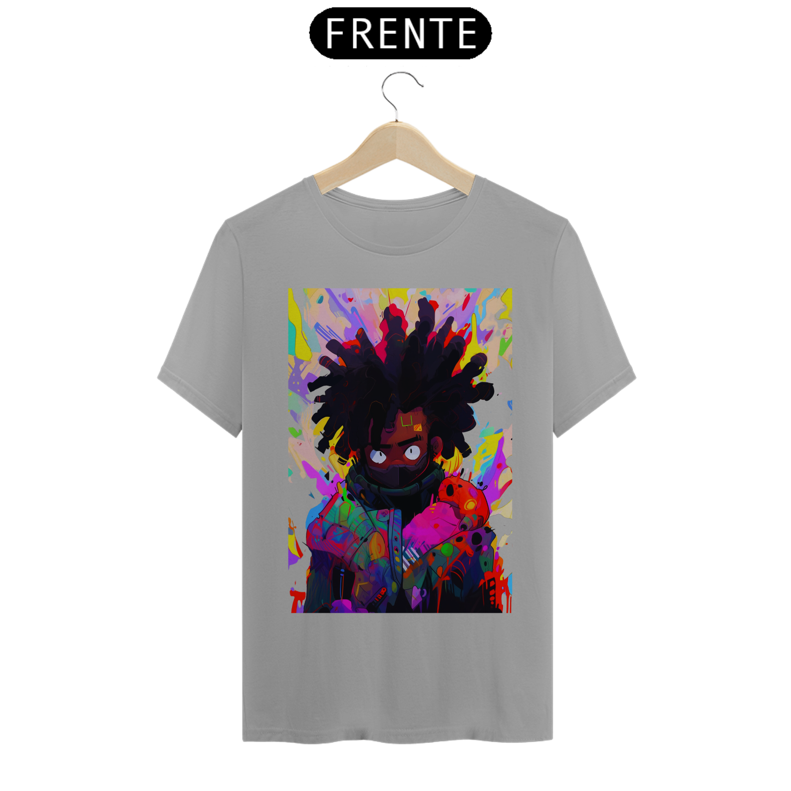 Acompanhe o movimento do pincel e se encante com a beleza desse retrato colorido e cheio de vida. Celebre a diversidade e a riqueza da arte afrofuturista, unida em uma estampa que é uma verdadeira obra de arte em movimento