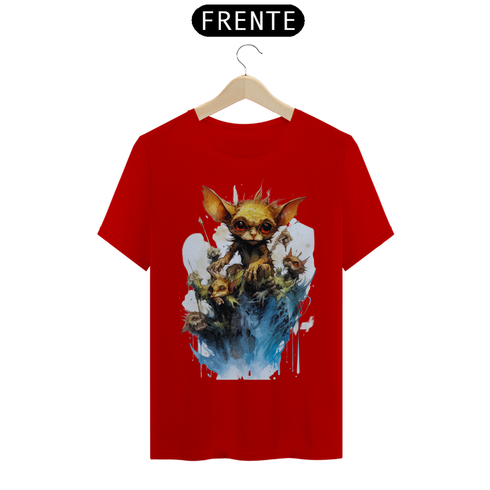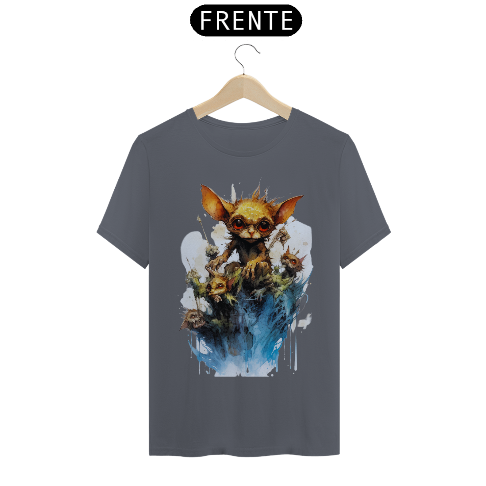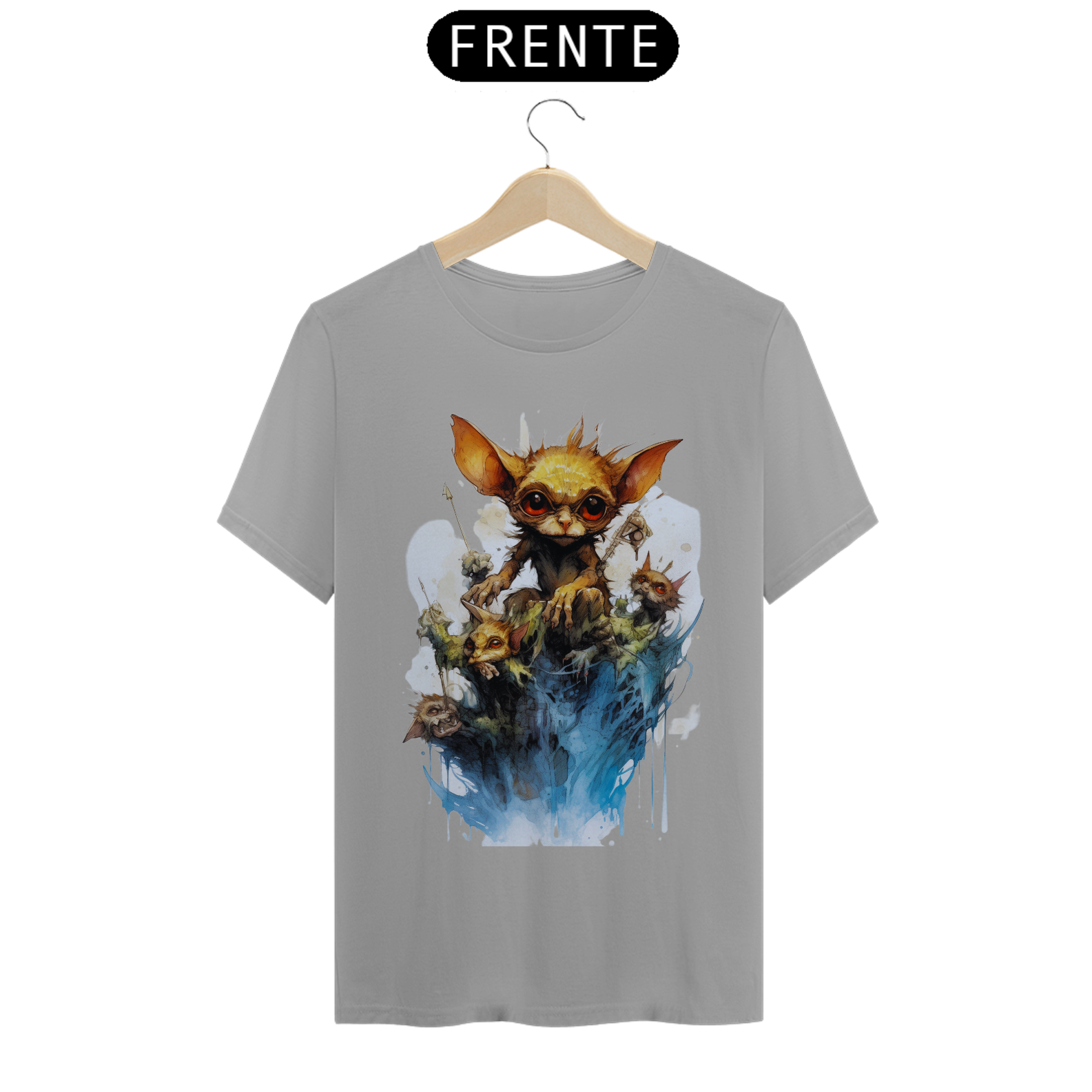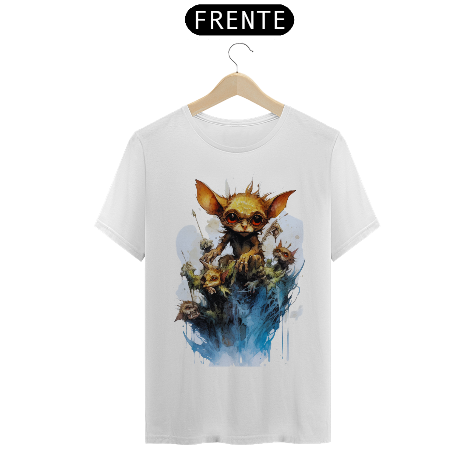 A arte detalhada e realista captura a essência do Gremlin, com seu olhar penetrante que parece atravessar a alma. Seu design marcante e intrigante faz com que esta camiseta seja perfeita para os amantes da street art e da estética sombria.