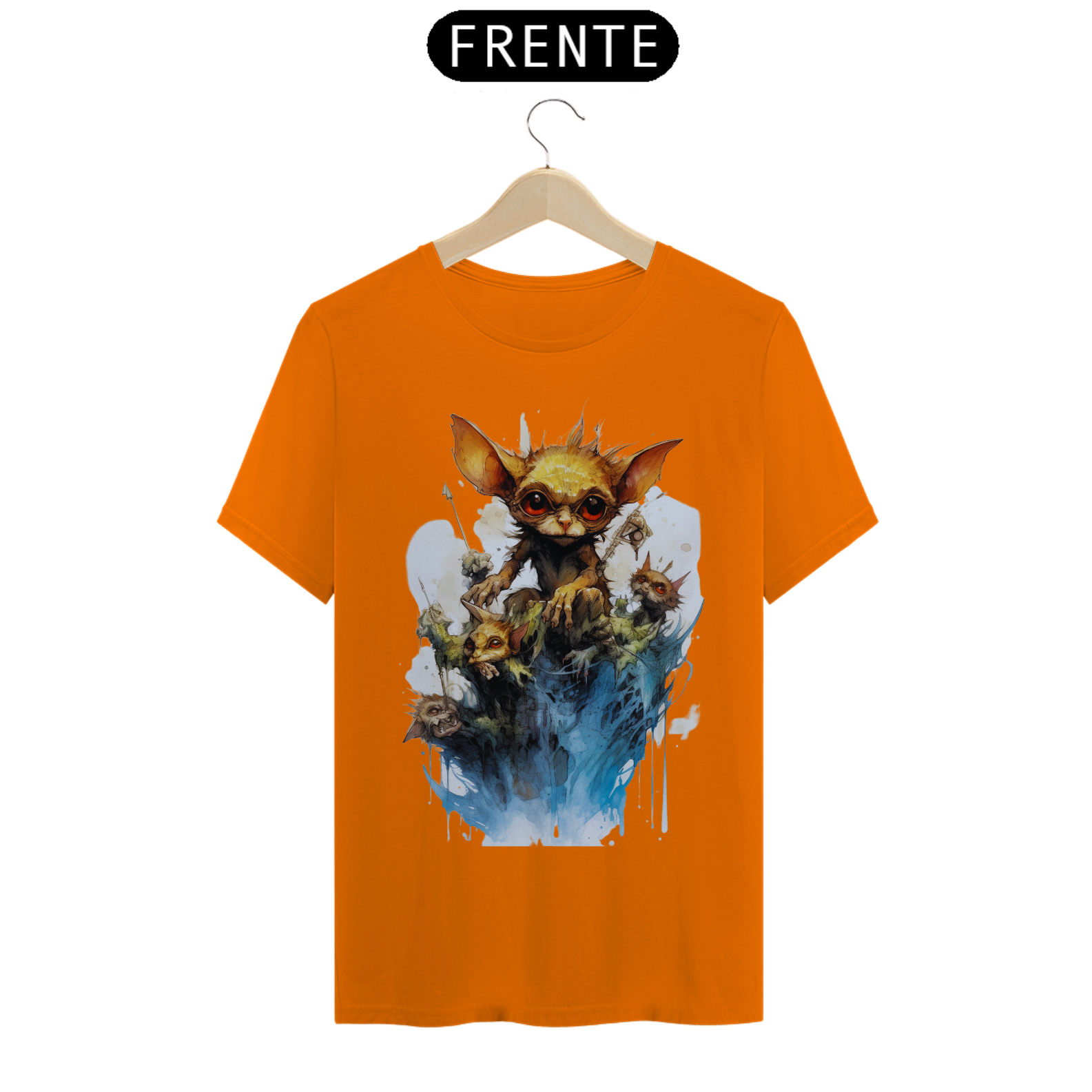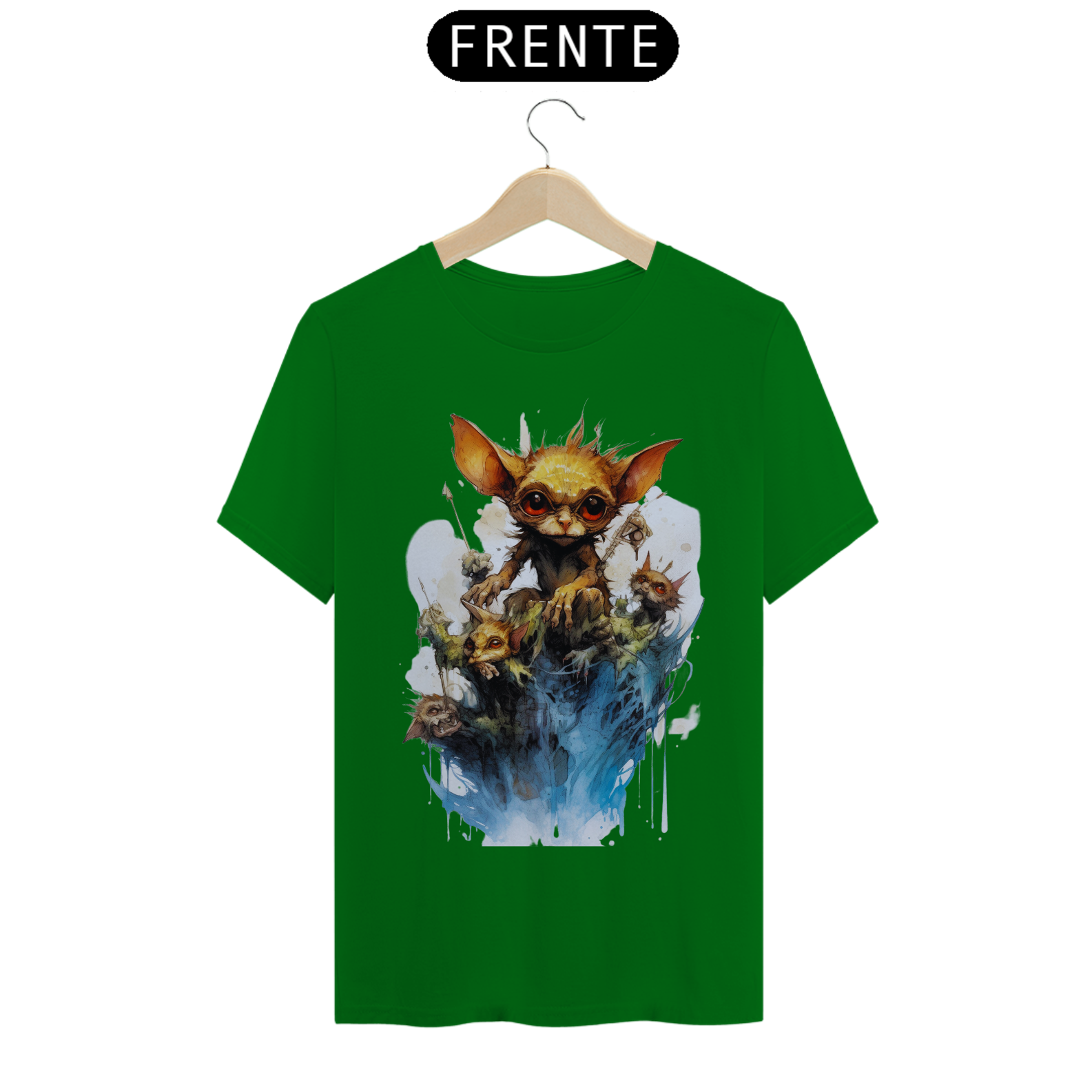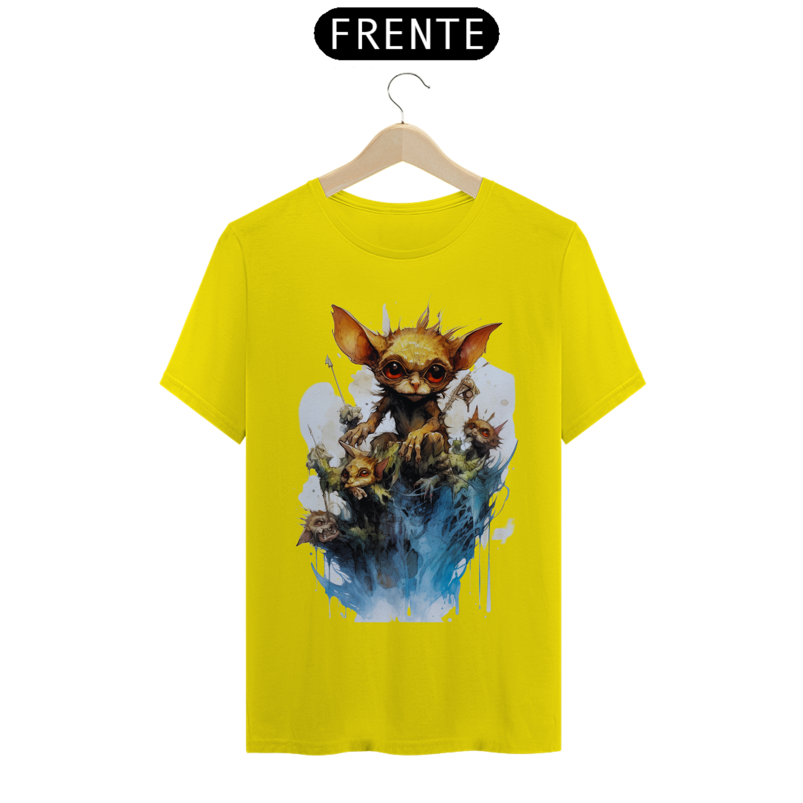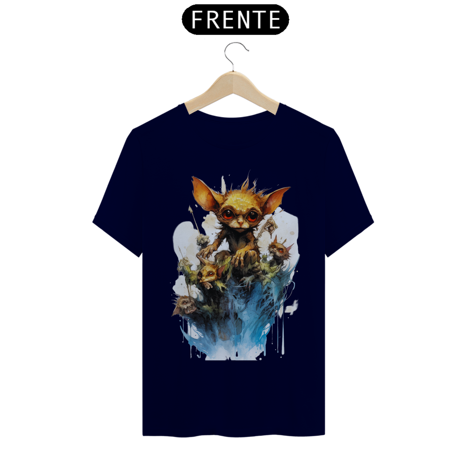 A arte detalhada e realista captura a essência do Gremlin, com seu olhar penetrante que parece atravessar a alma. Seu design marcante e intrigante faz com que esta camiseta seja perfeita para os amantes da street art e da estética sombria.