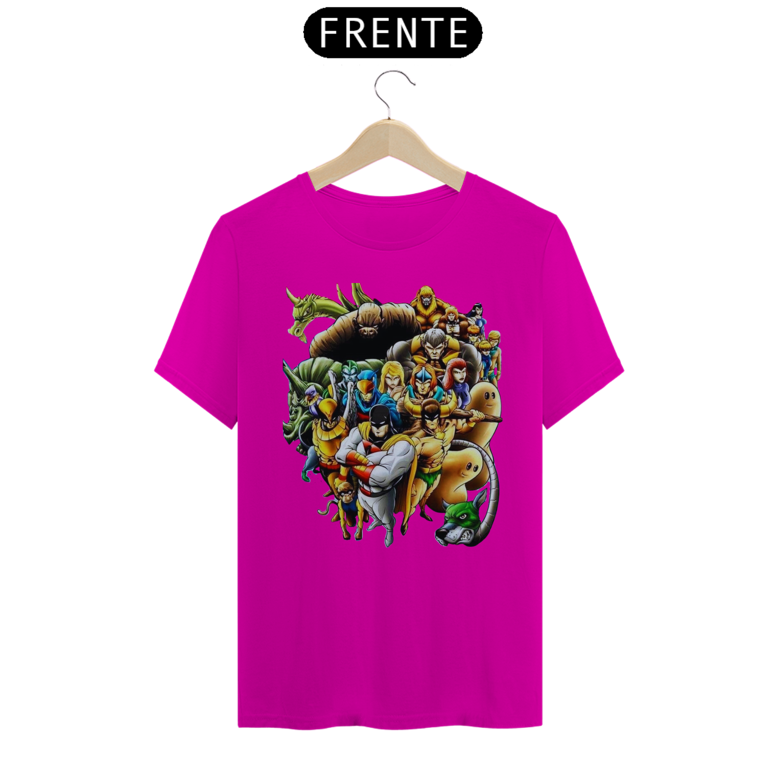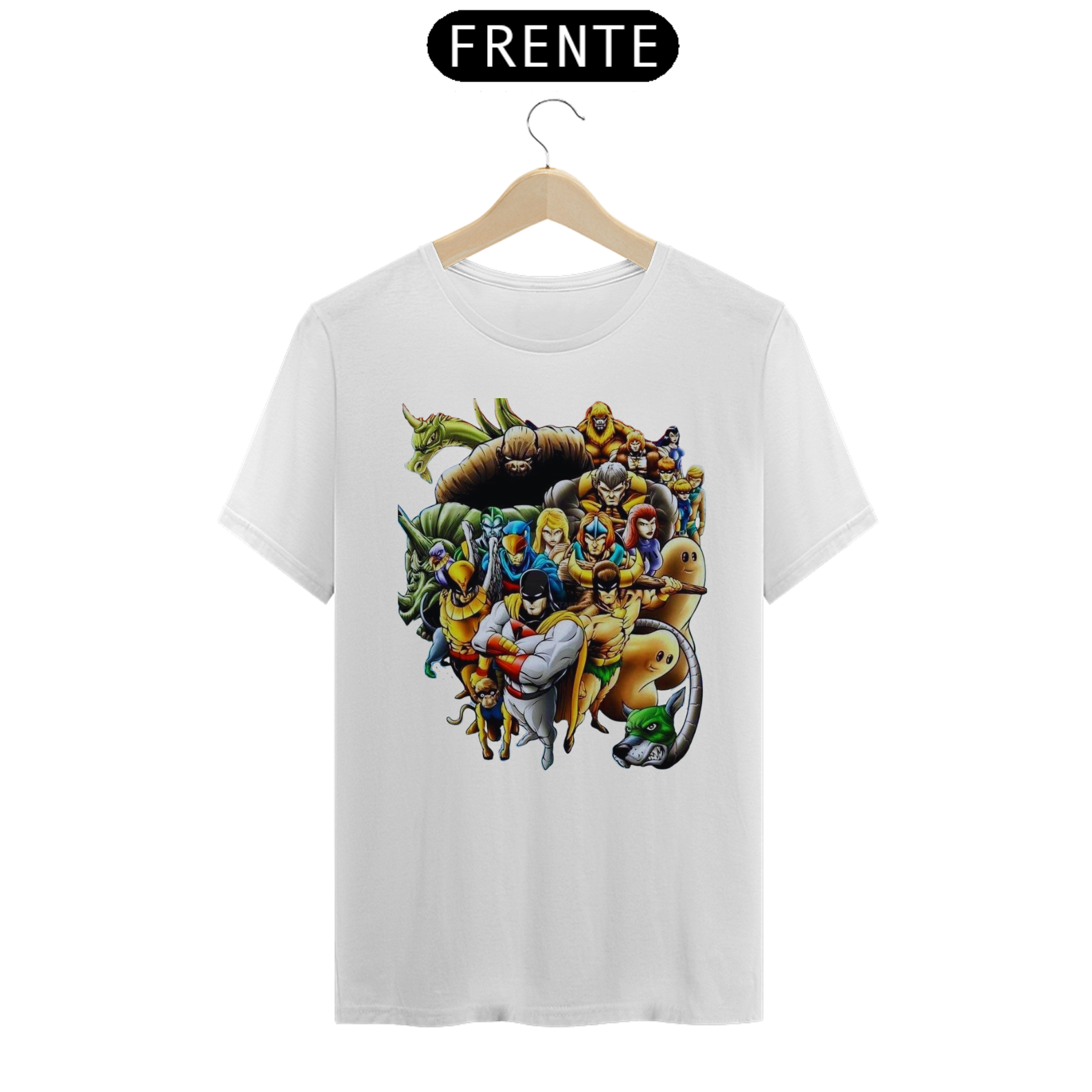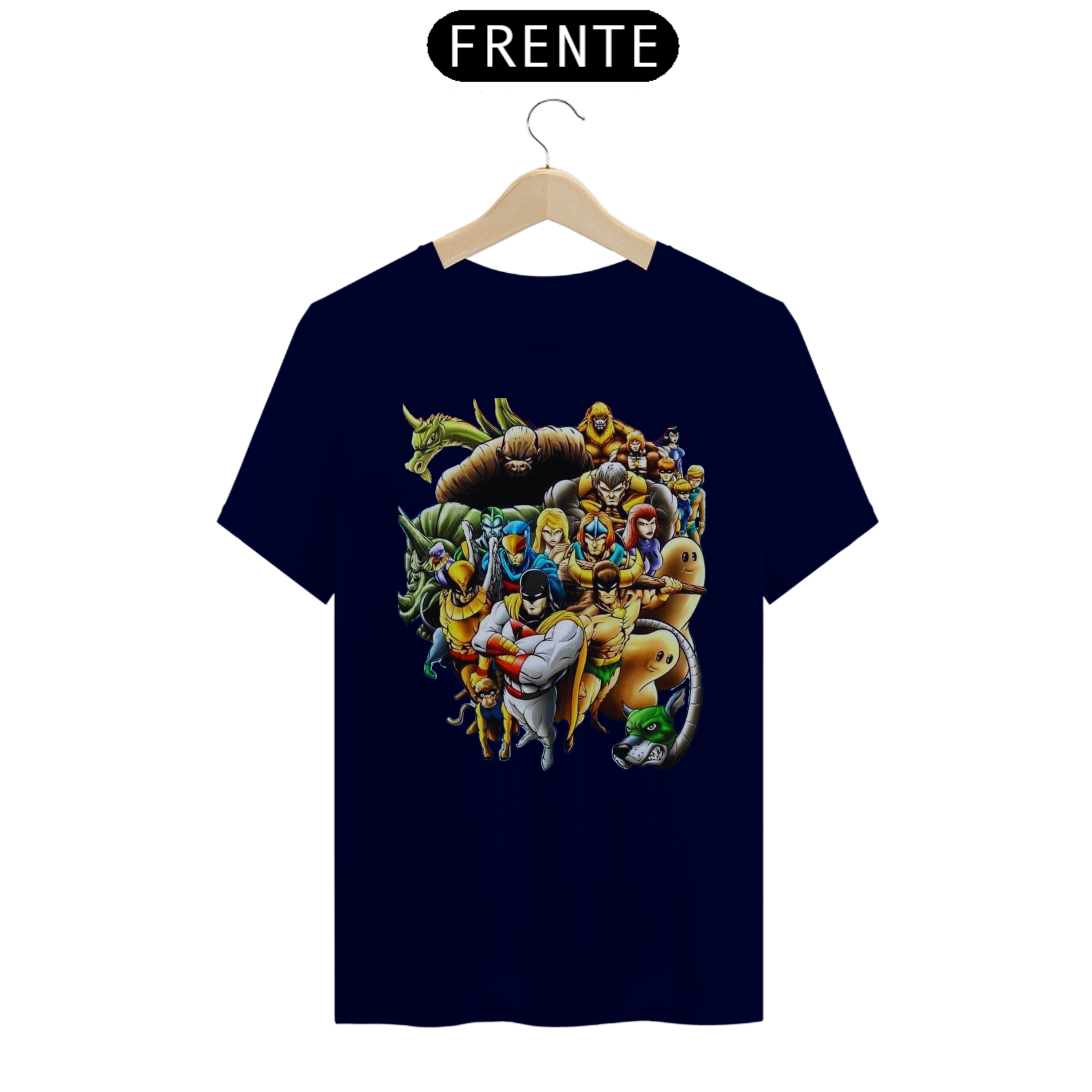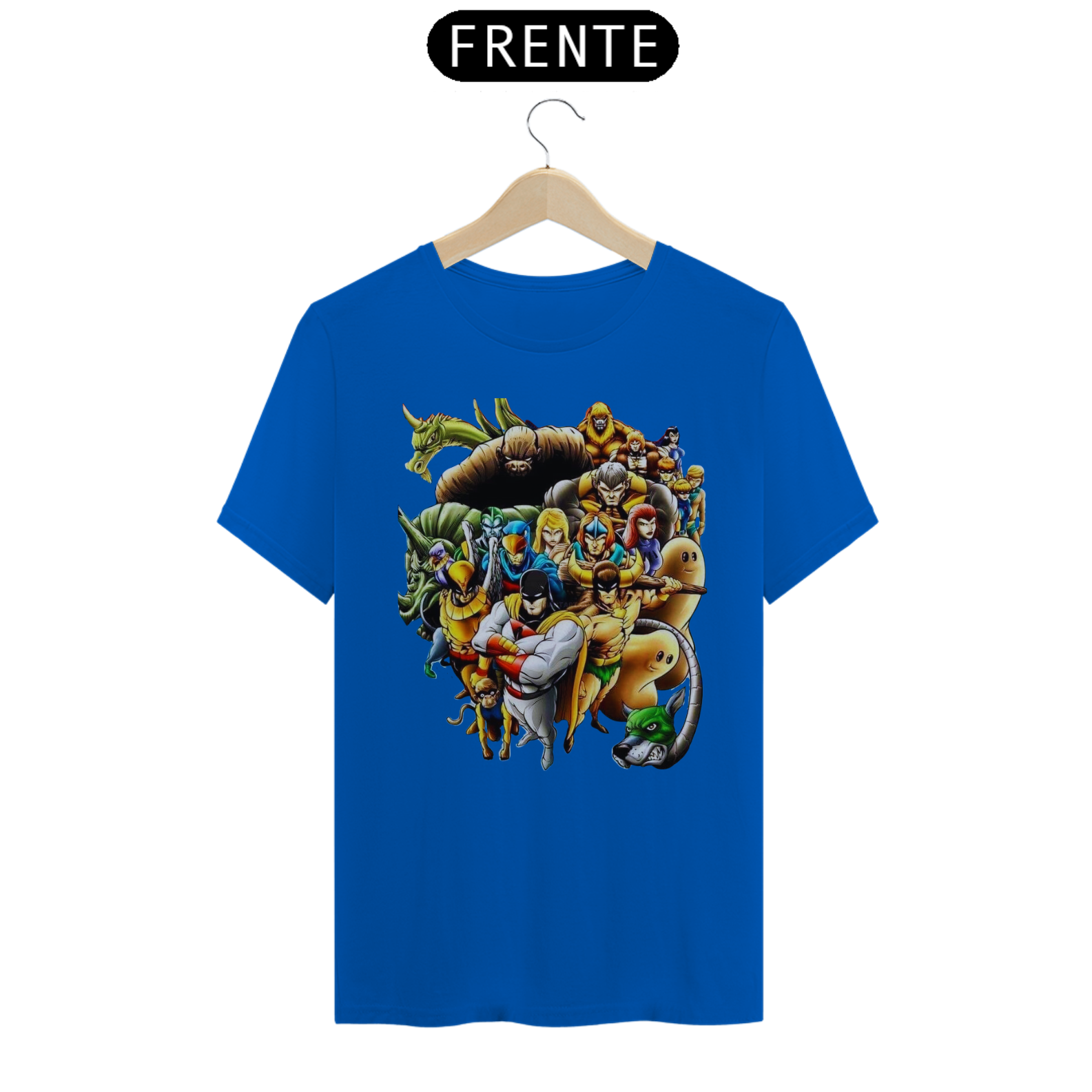 A estampa "A Liga dos Heróis Intergalácticos" reúne em uma única camiseta alguns dos personagens mais icônicos dos desenhos animados clássicos. Nessa arte épica, você encontrará Space Ghost, OS HERCULÓIDES, HOMEM PÁSSARO, Falcão Azul e Dinamite, o Bionicão, Galaxy Trio e Thunder, o Bárbaro, todos unidos em uma equipe poderosa e pronta para enfrentar desafios intergalácticos. Esses heróis lendários trazem consigo habilidades extraordinárias, valentia e uma determinação inabalável para proteger a justiça e combater o mal em todas as galáxias. Com cores vibrantes e detalhes incríveis, essa estampa é uma homenagem aos clássicos da animação e um convite para reviver aventuras emocionantes. Vista essa camiseta e junte-se à Liga dos Heróis Intergalácticos, mostrando seu amor pela nostalgia e pela bravura dos personagens que marcaram gerações.