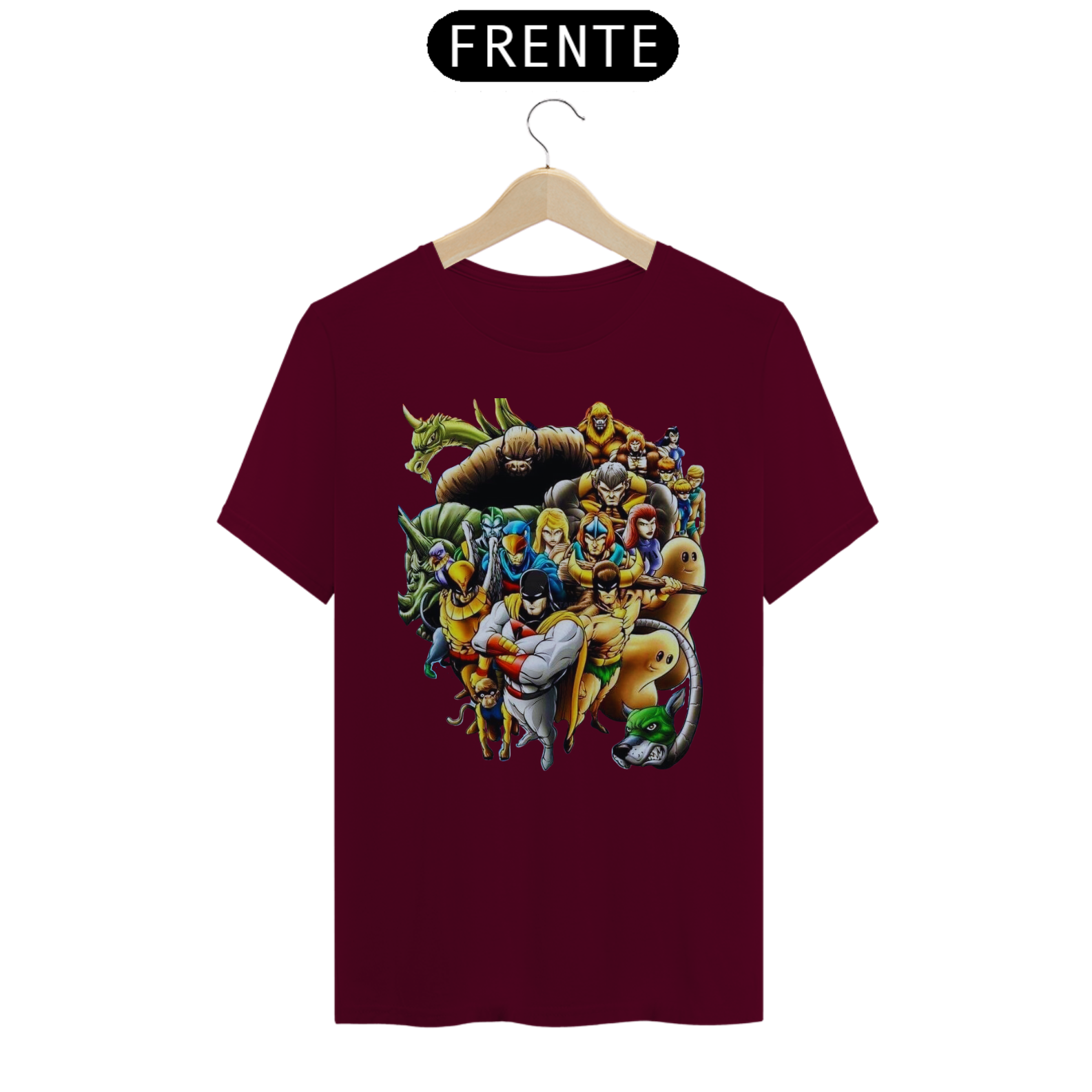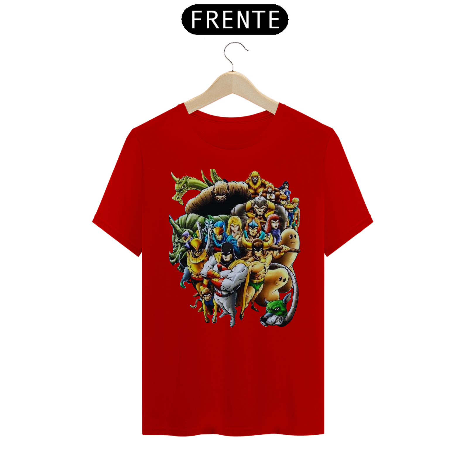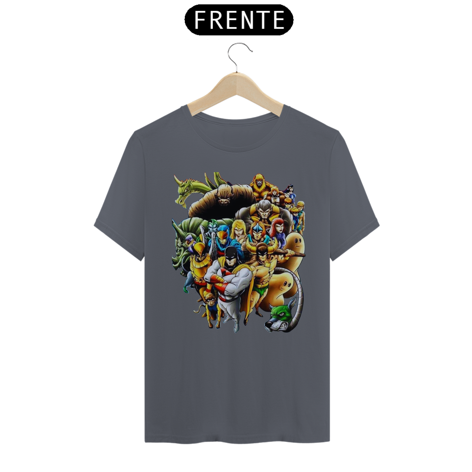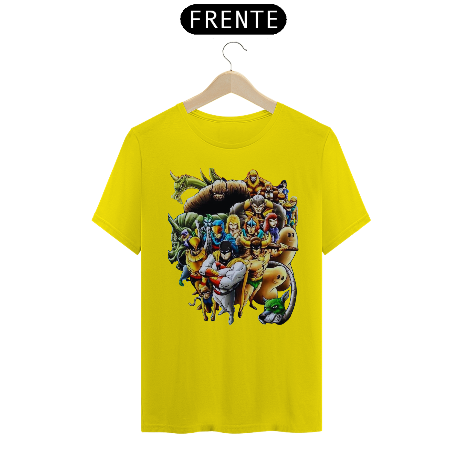 A estampa "A Liga dos Heróis Intergalácticos" reúne em uma única camiseta alguns dos personagens mais icônicos dos desenhos animados clássicos. Nessa arte épica, você encontrará Space Ghost, OS HERCULÓIDES, HOMEM PÁSSARO, Falcão Azul e Dinamite, o Bionicão, Galaxy Trio e Thunder, o Bárbaro, todos unidos em uma equipe poderosa e pronta para enfrentar desafios intergalácticos. Esses heróis lendários trazem consigo habilidades extraordinárias, valentia e uma determinação inabalável para proteger a justiça e combater o mal em todas as galáxias. Com cores vibrantes e detalhes incríveis, essa estampa é uma homenagem aos clássicos da animação e um convite para reviver aventuras emocionantes. Vista essa camiseta e junte-se à Liga dos Heróis Intergalácticos, mostrando seu amor pela nostalgia e pela bravura dos personagens que marcaram gerações.