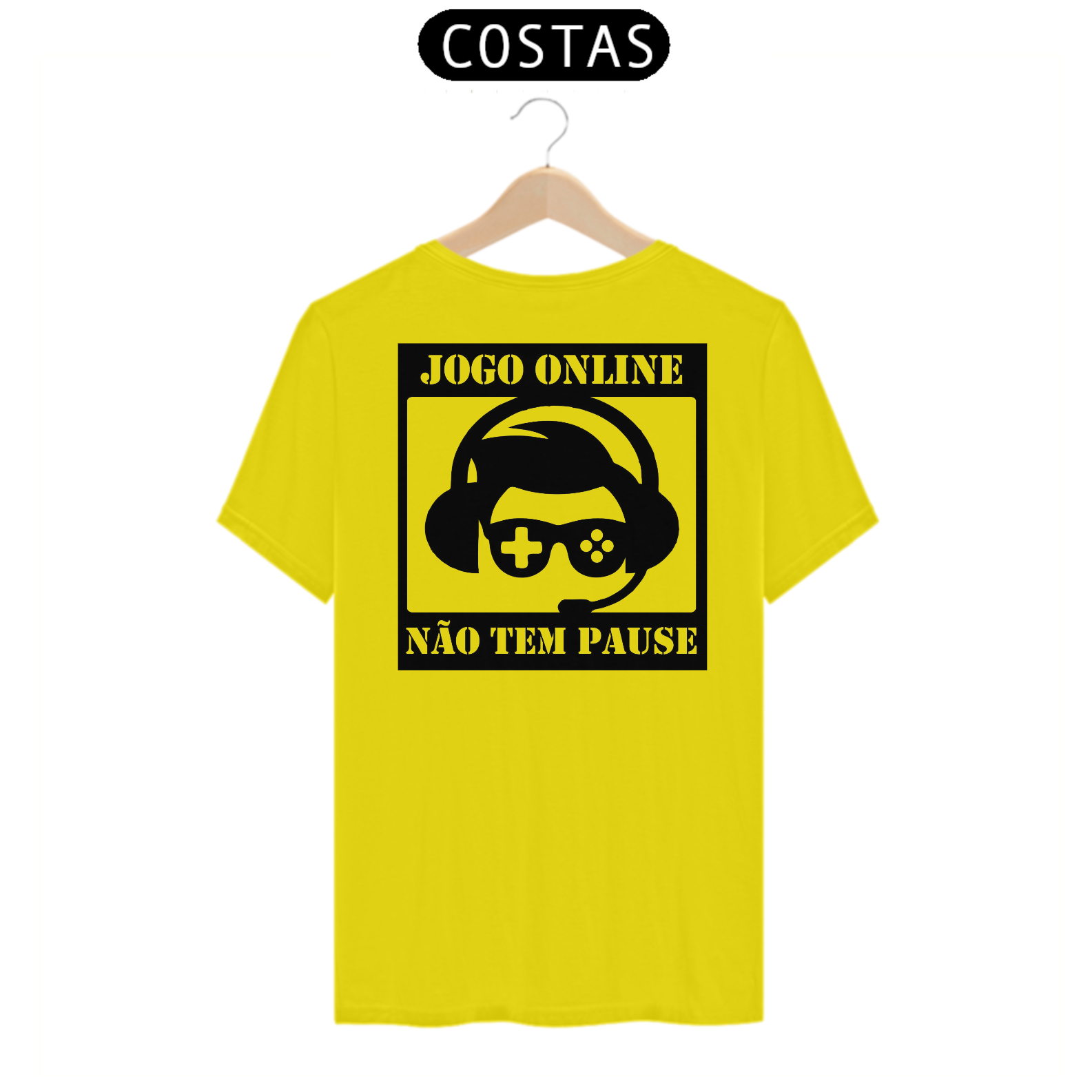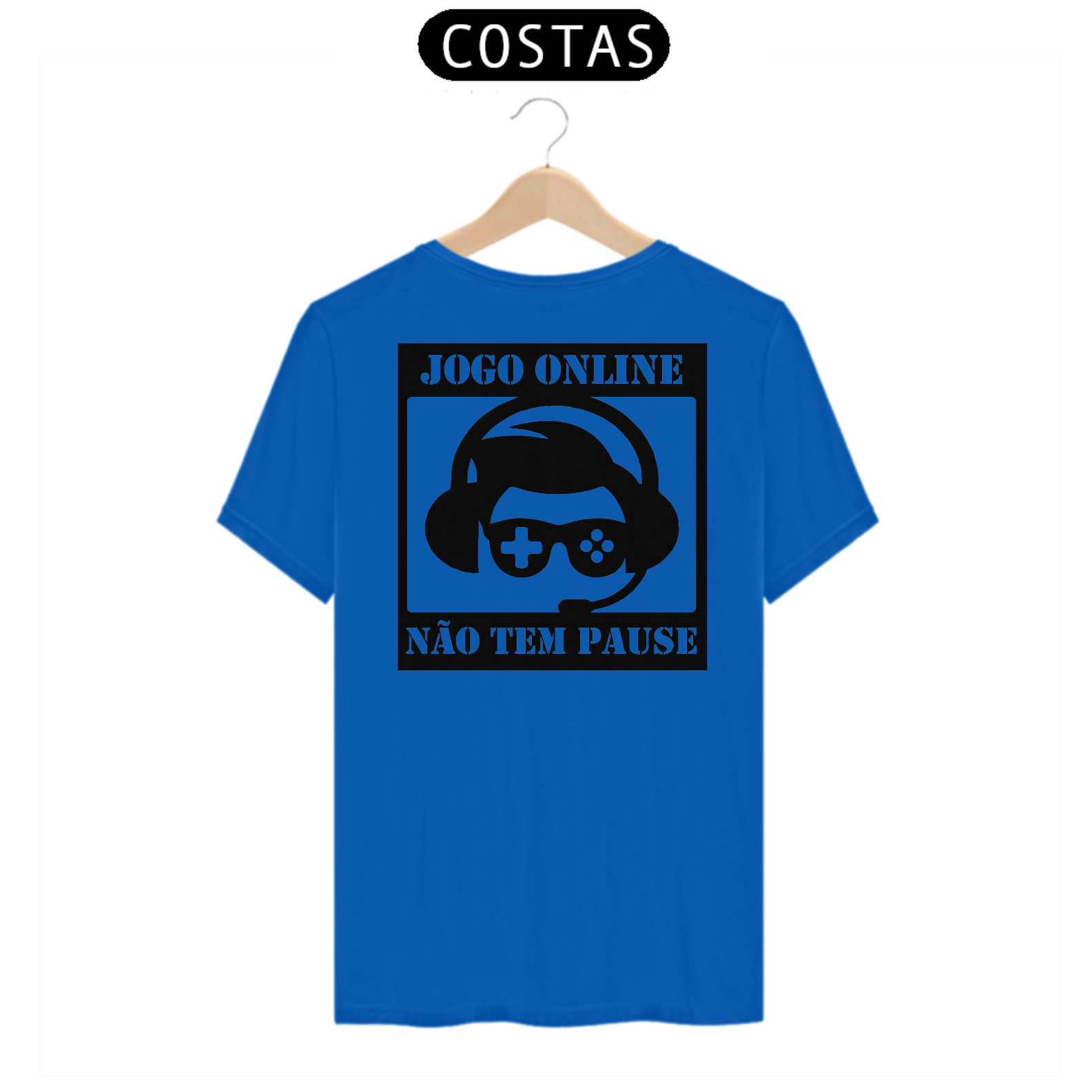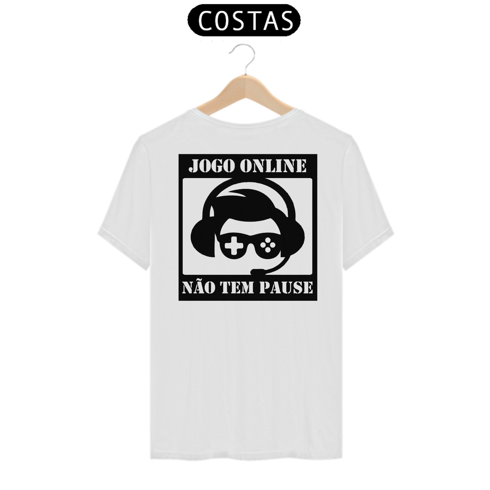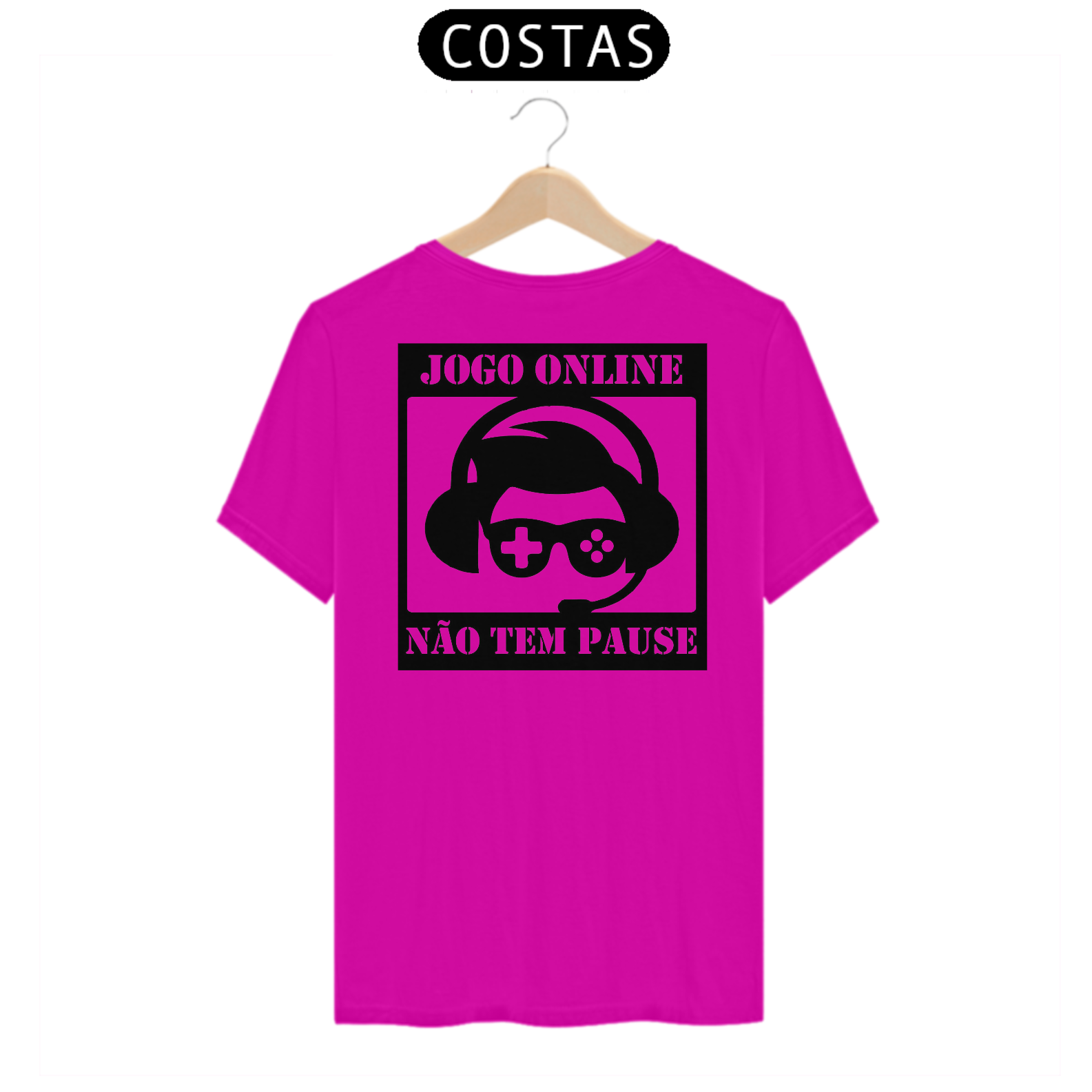 Descrição: "Você está no auge da batalha, pronto para enfrentar inimigos temíveis e salvar o mundo virtual, quando de repente... 'Mãe, você pode pausar esse jogo e ajudar a dobrar a roupa?' 'Querido, já está na hora do jantar!' 'Querido, você vai passar a noite toda nesse jogo novamente?' Ah, as alegrias de ser um jogador apaixonado! Com a nossa camiseta 'Pause? O que é isso?', você pode transmitir a mensagem divertida e irônica para mães, avós e esposas: jogos online não têm pausa! Essa camiseta é o lembrete perfeito de que, quando você está mergulhado em aventuras digitais, o mundo real pode esperar. Afinal, quem precisa de pausa quando se está ocupado salvando mundos, conquistando castelos e derrotando dragões? Divirta-se e deixe claro que, para um verdadeiro jogador, pausar é uma palavra desconhecida!"