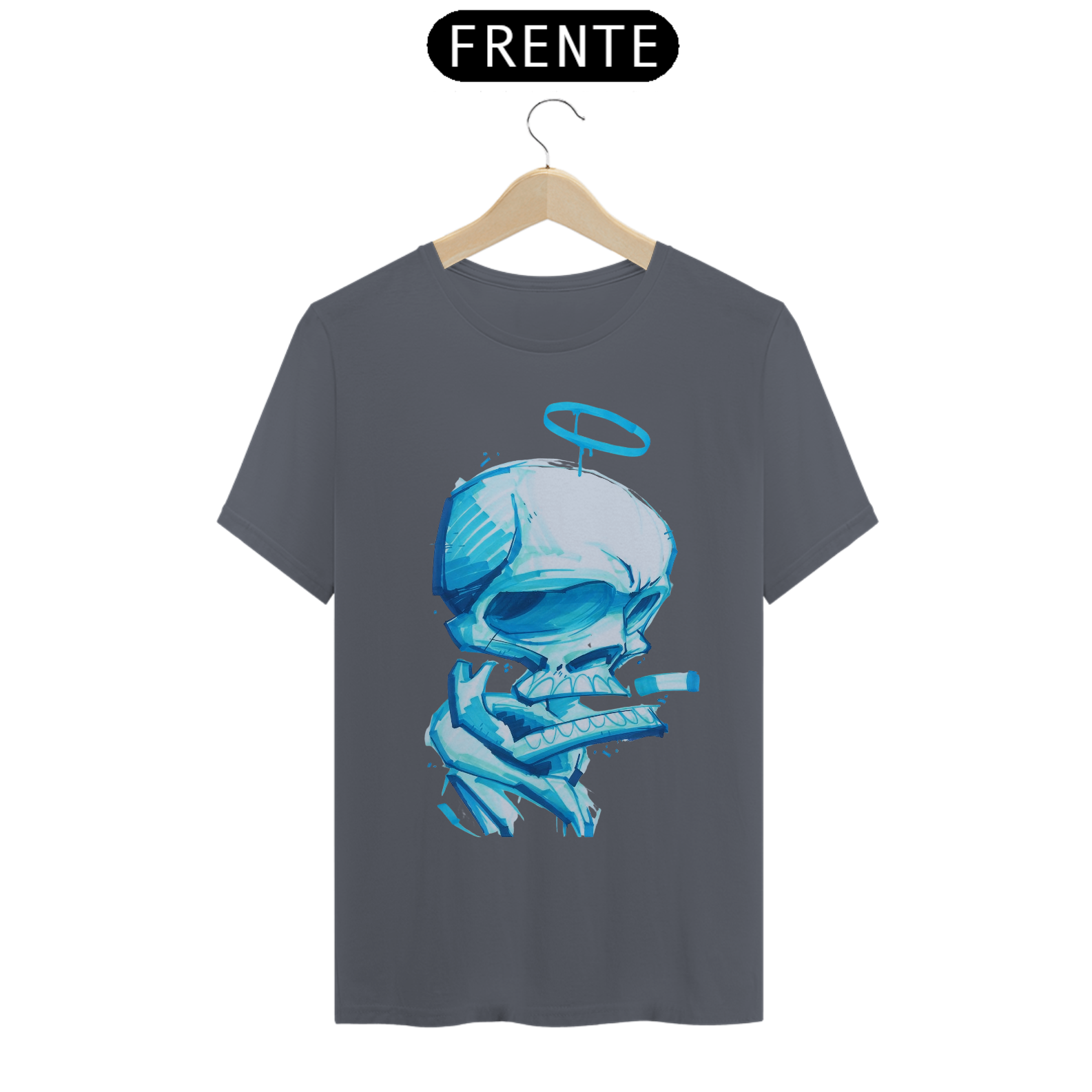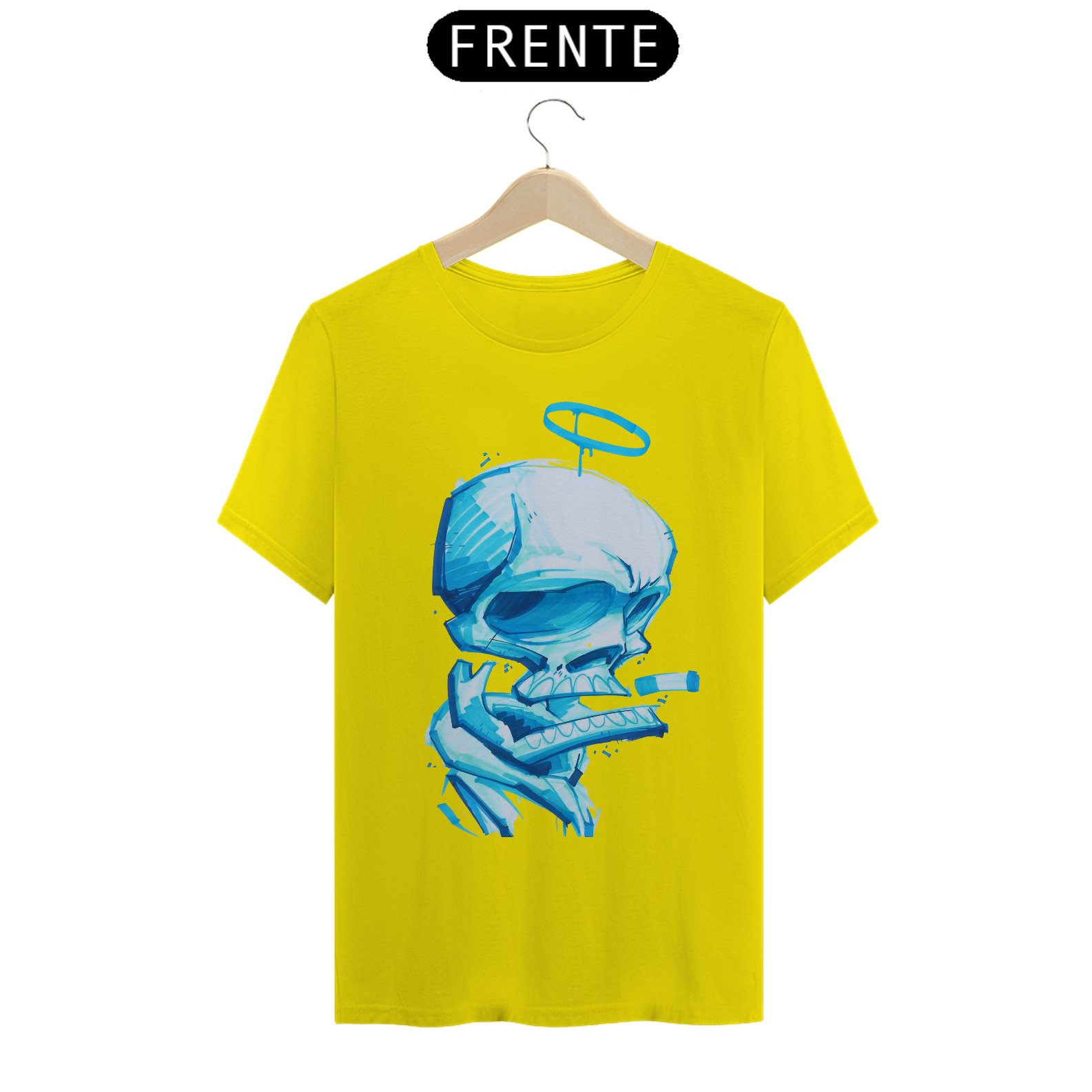 Nossa estampa 'Crânio Enigmático Fumante: Mistérios em Azul' é uma jornada pelo desconhecido desenhada com canetinha azul. Este crânio detalhadamente traçado exala um ar de mistério, enquanto solta espirais de fumaça em um padrão hipnotizante. A escolha do azul intenso e envolvente representa o enigma da vida e da morte, enquanto a auréola sutilmente se destaca, lembrando-nos da passagem do tempo. Permita-se explorar essa obra de arte única, onde a morte e a criação se entrelaçam em traços desenhados à mão."