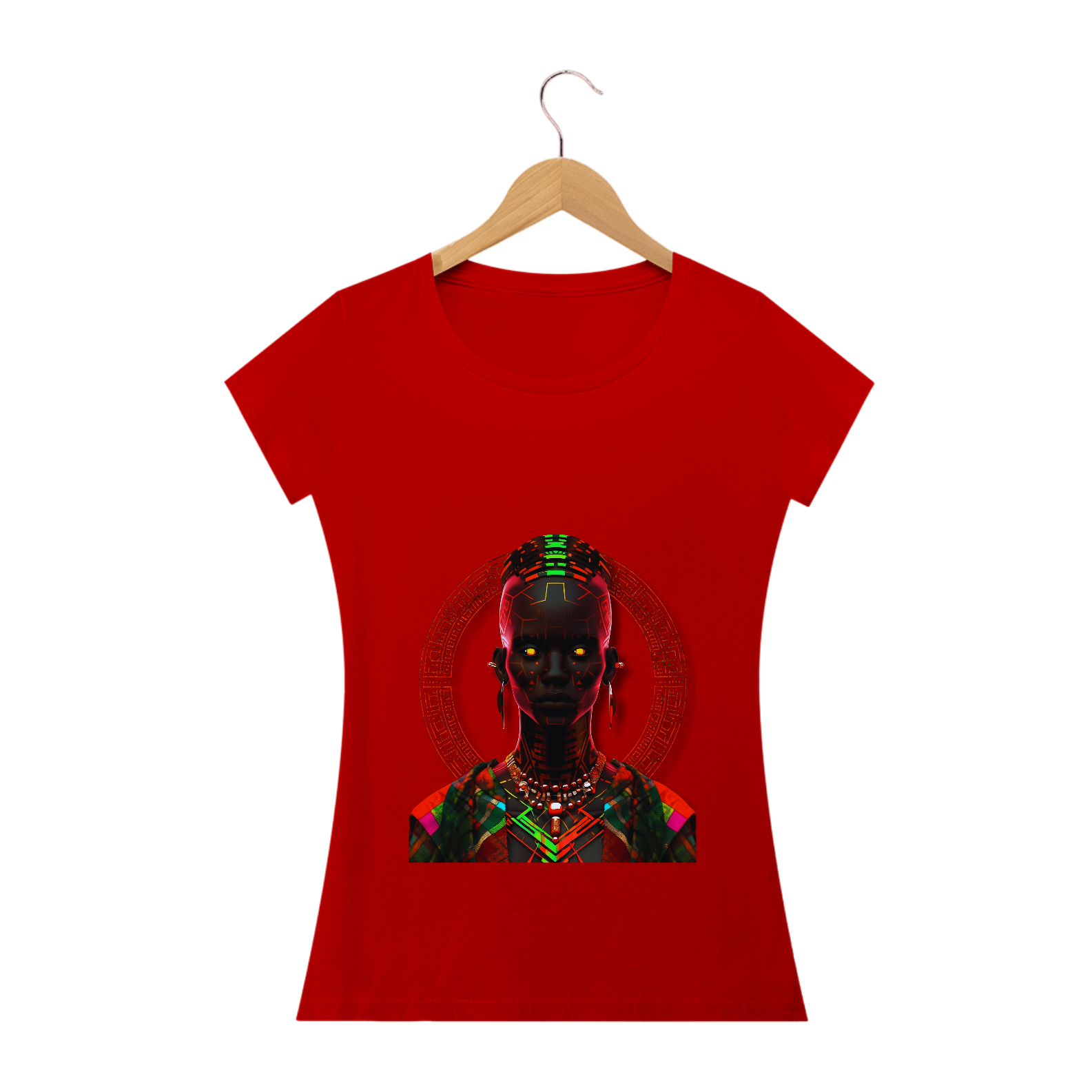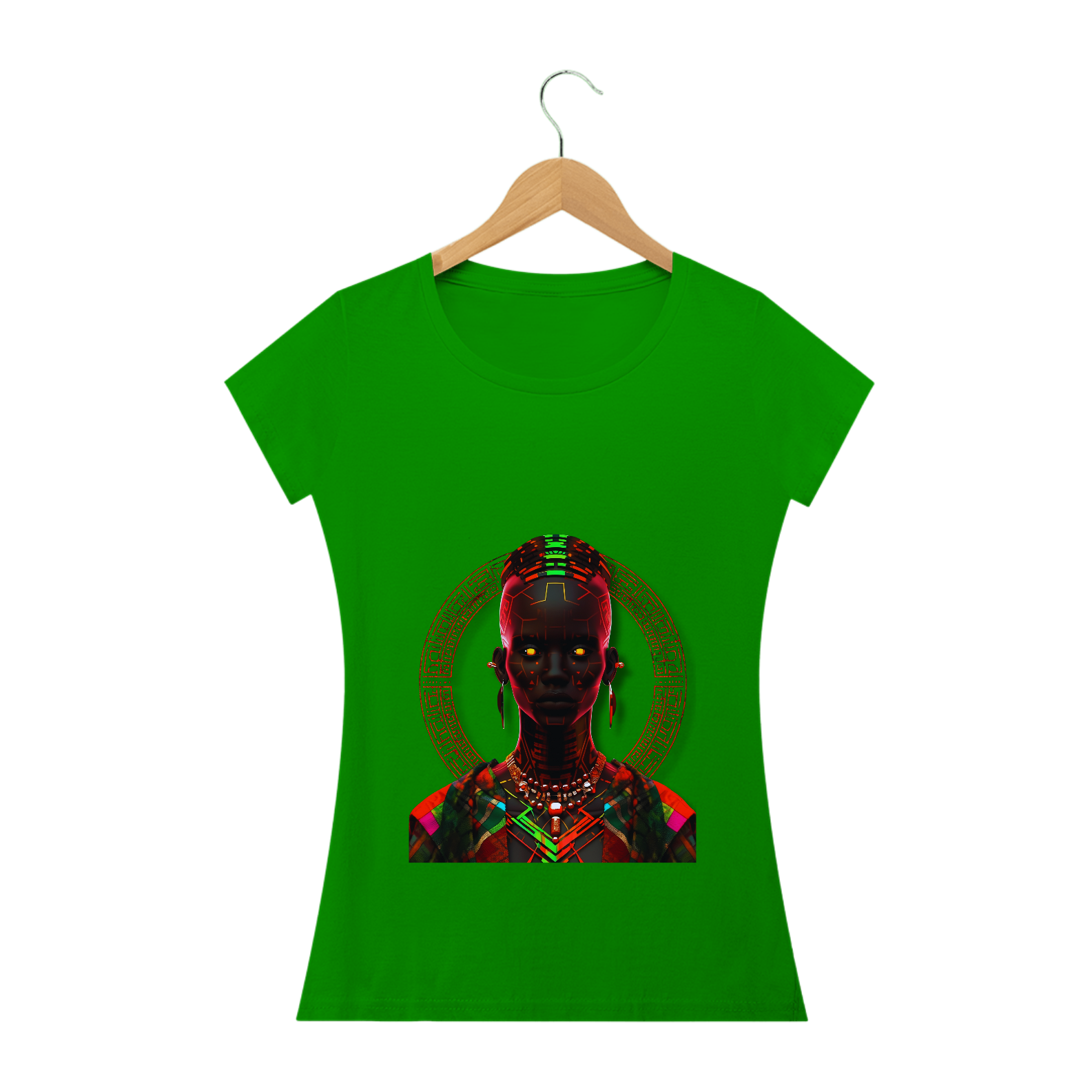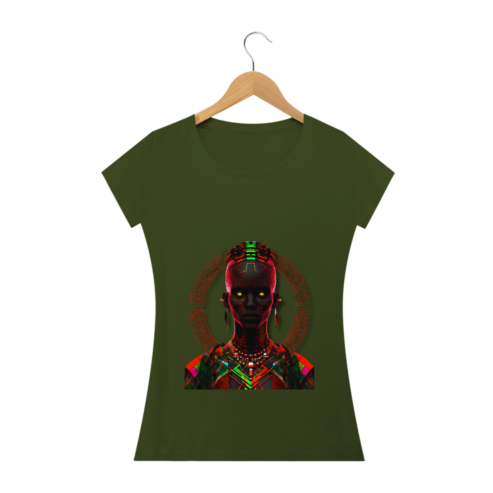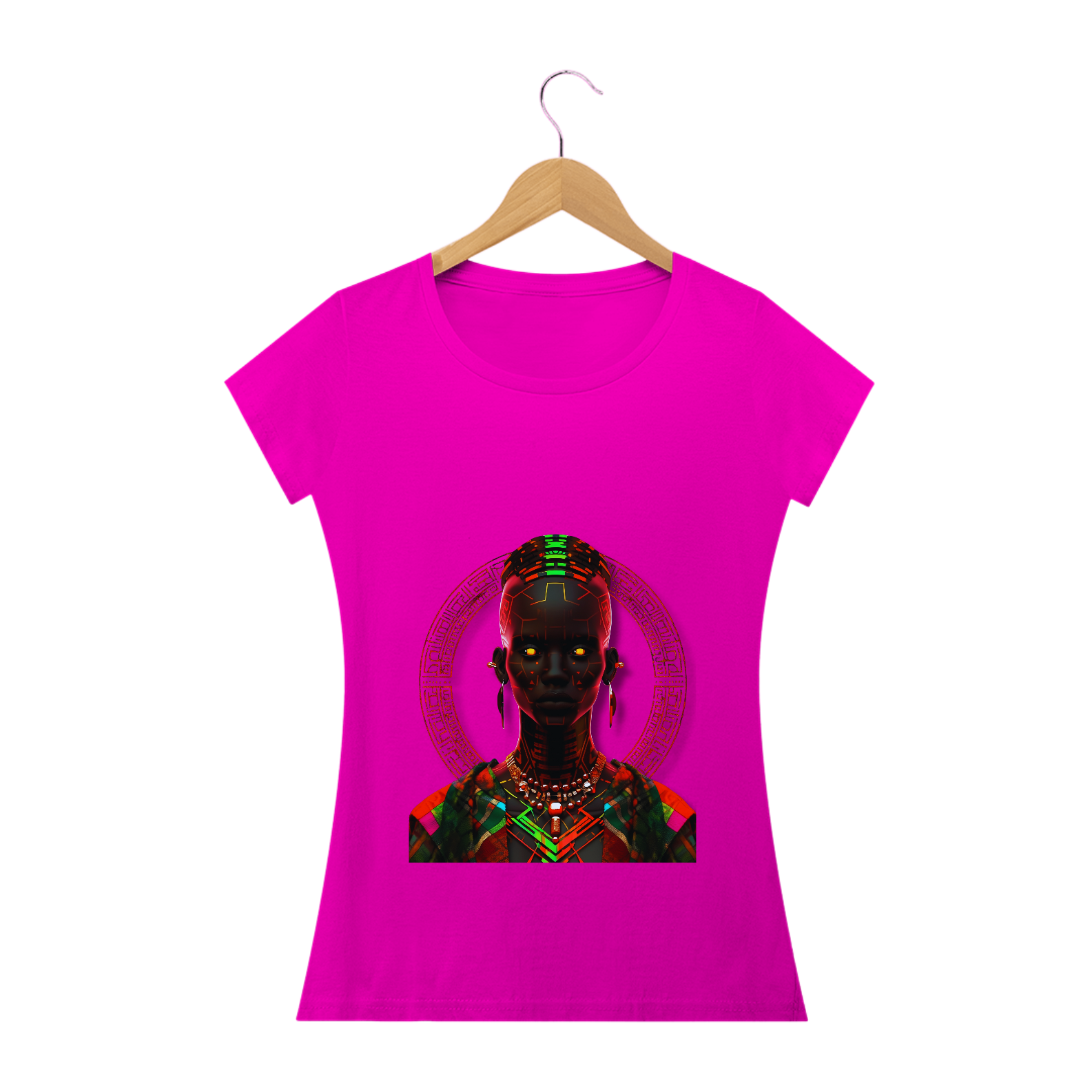 Esta estampa traz consigo a radiante beleza da cultura africana em um estilo único e vibrante. Inspirada na figura de uma mulher africana, ela combina padrões de neon luminosos, trajes detalhados e um jogo de contrastes entre luz e sombra. Remetendo ao rico legado do Império Kushan e à arte do vitral, esta estampa proporciona uma experiência visual cativante. Cada detalhe meticulosamente trabalhado resulta em uma imagem em alta definição que transmite a essência da tradição africana de forma sofisticada e contemporânea. Vista essa camiseta e deixe as luzes africanas brilharem em você.