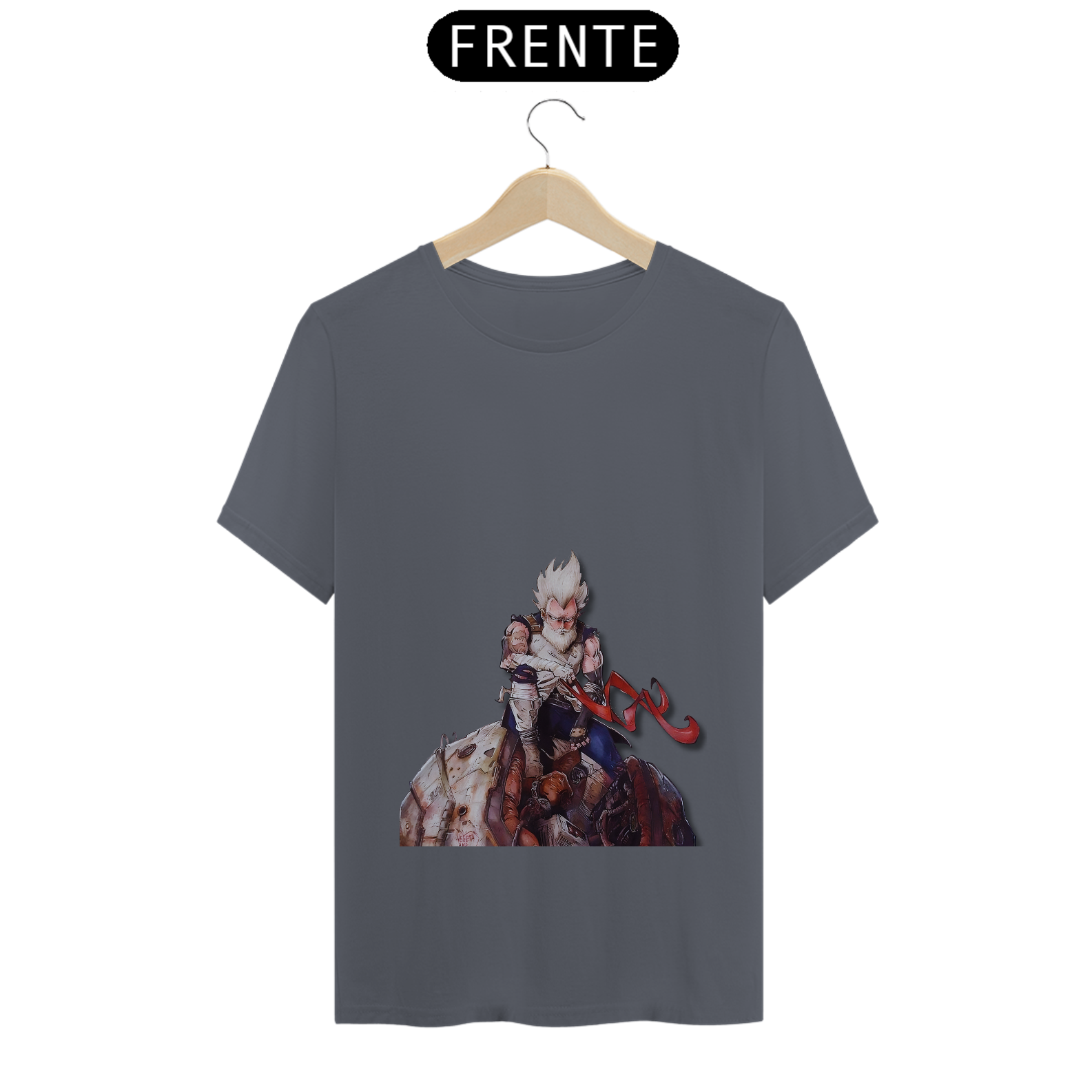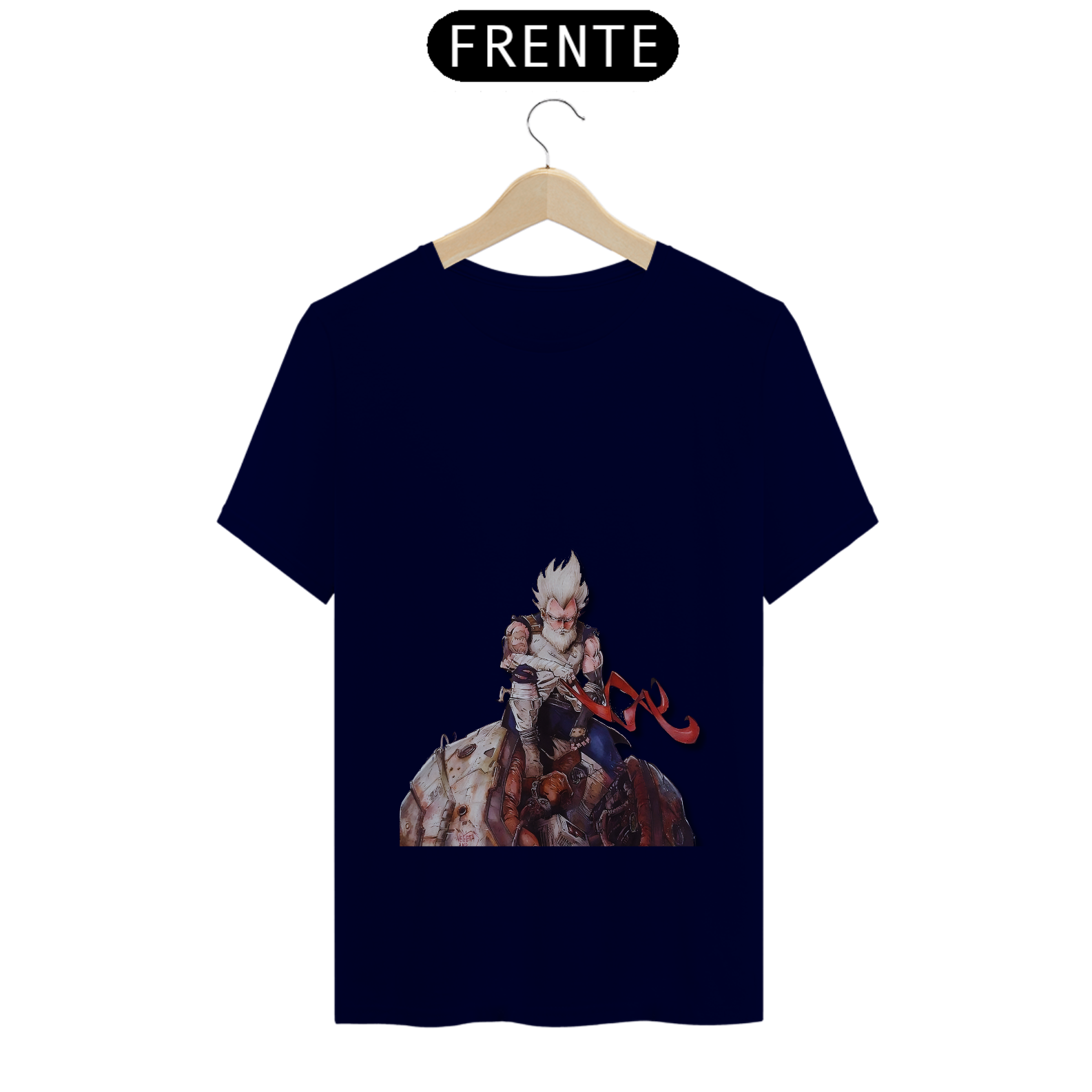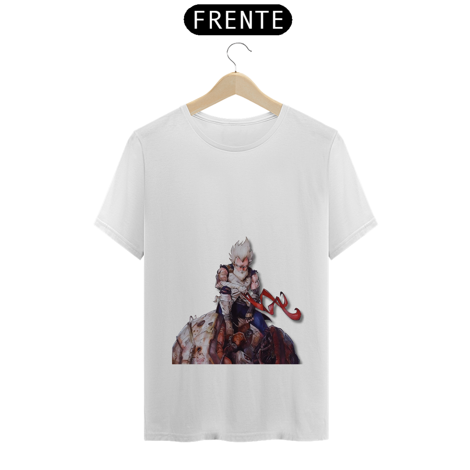 Relembre a jornada épica de Vegeta com esta estampa nostálgica. O príncipe dos Saiyajins, agora velho e sábio, sentado nos destroços de sua nave que o trouxe à Terra. Uma homenagem ao lendário guerreiro que superou desafios e se tornou um herói no universo de Dragon Ball. Mostre seu amor por Vegeta com estilo e emoção!"