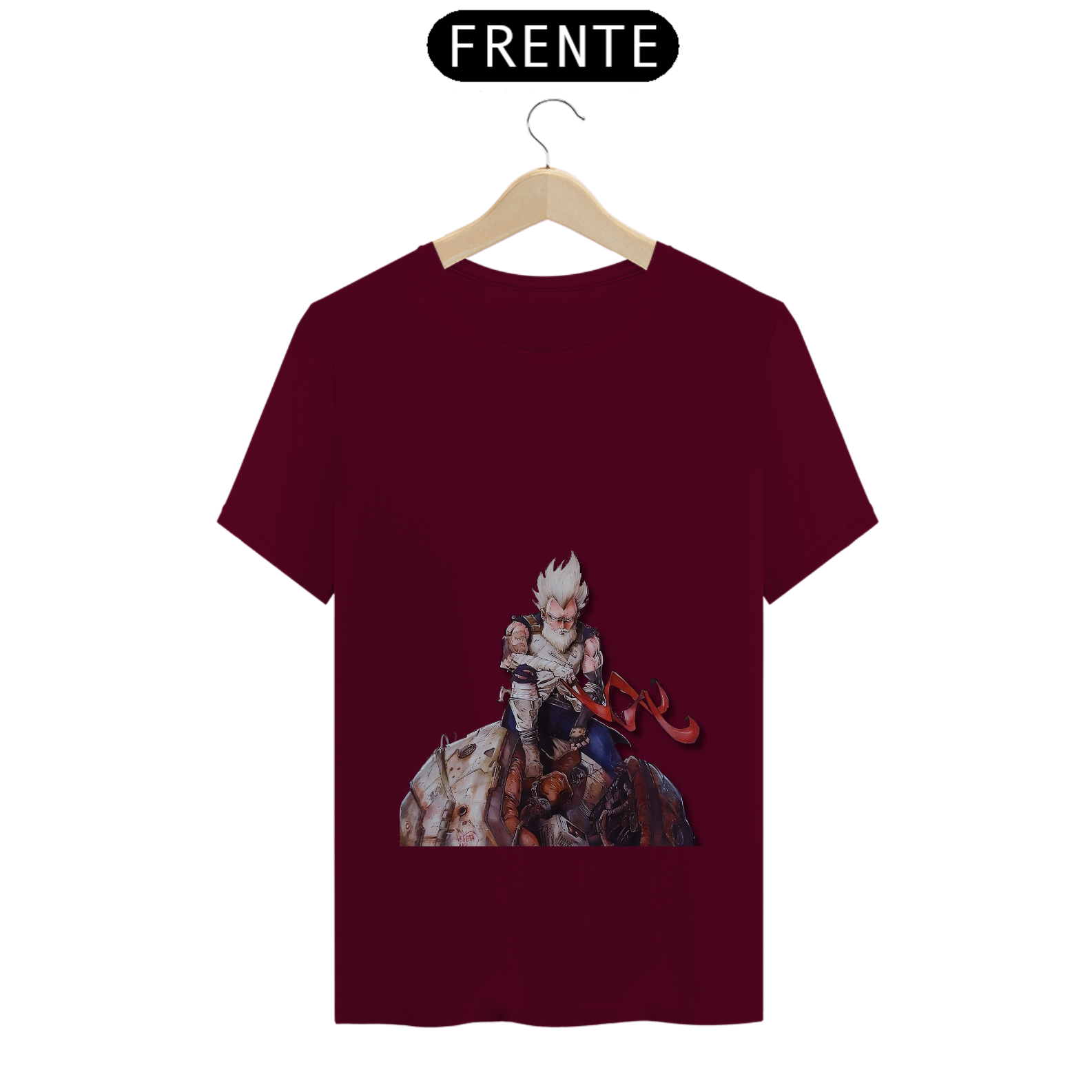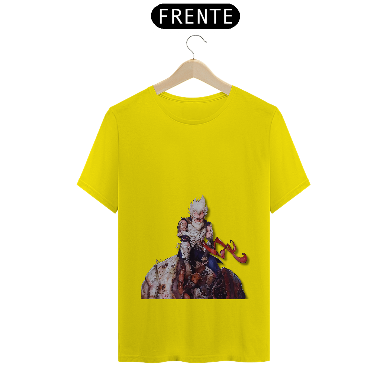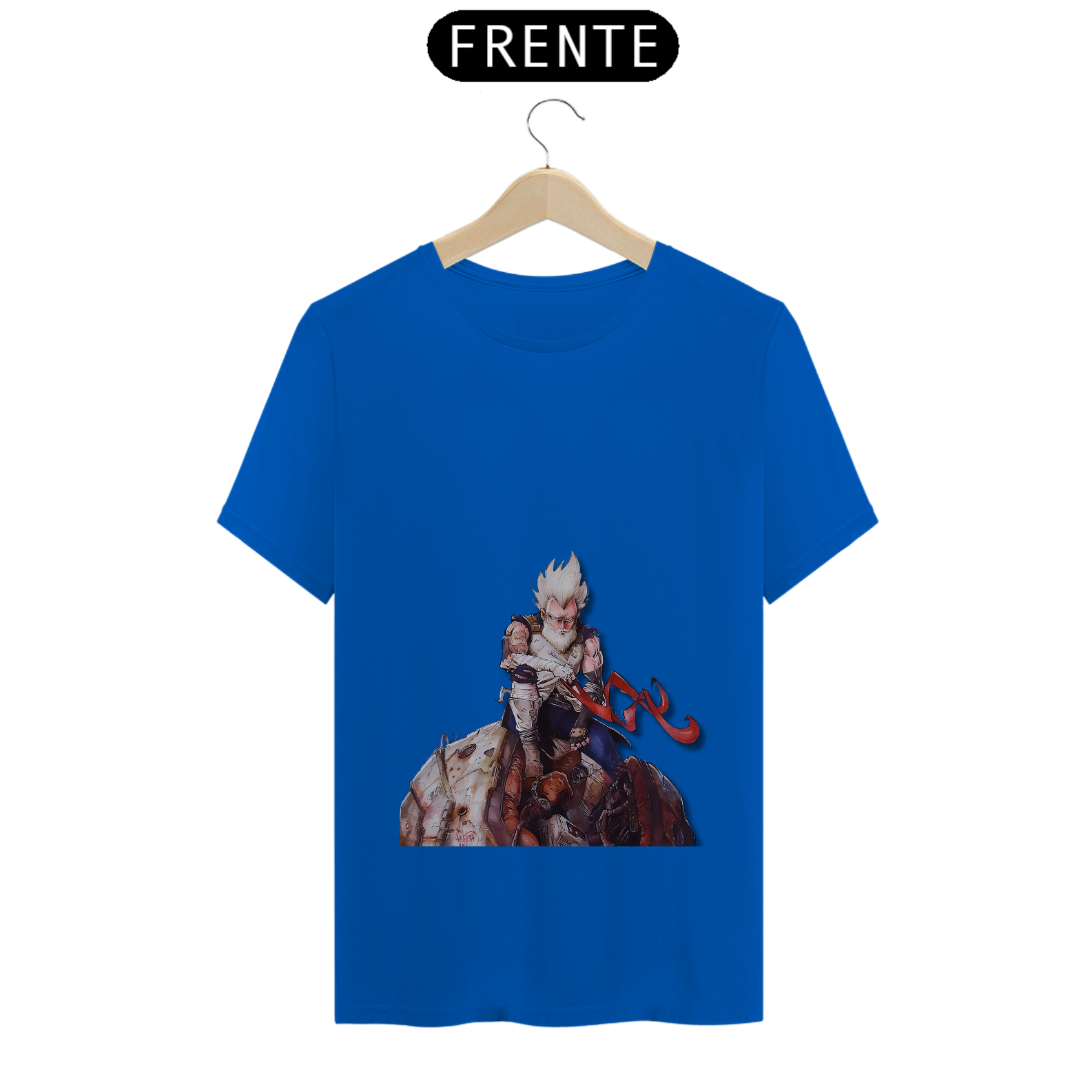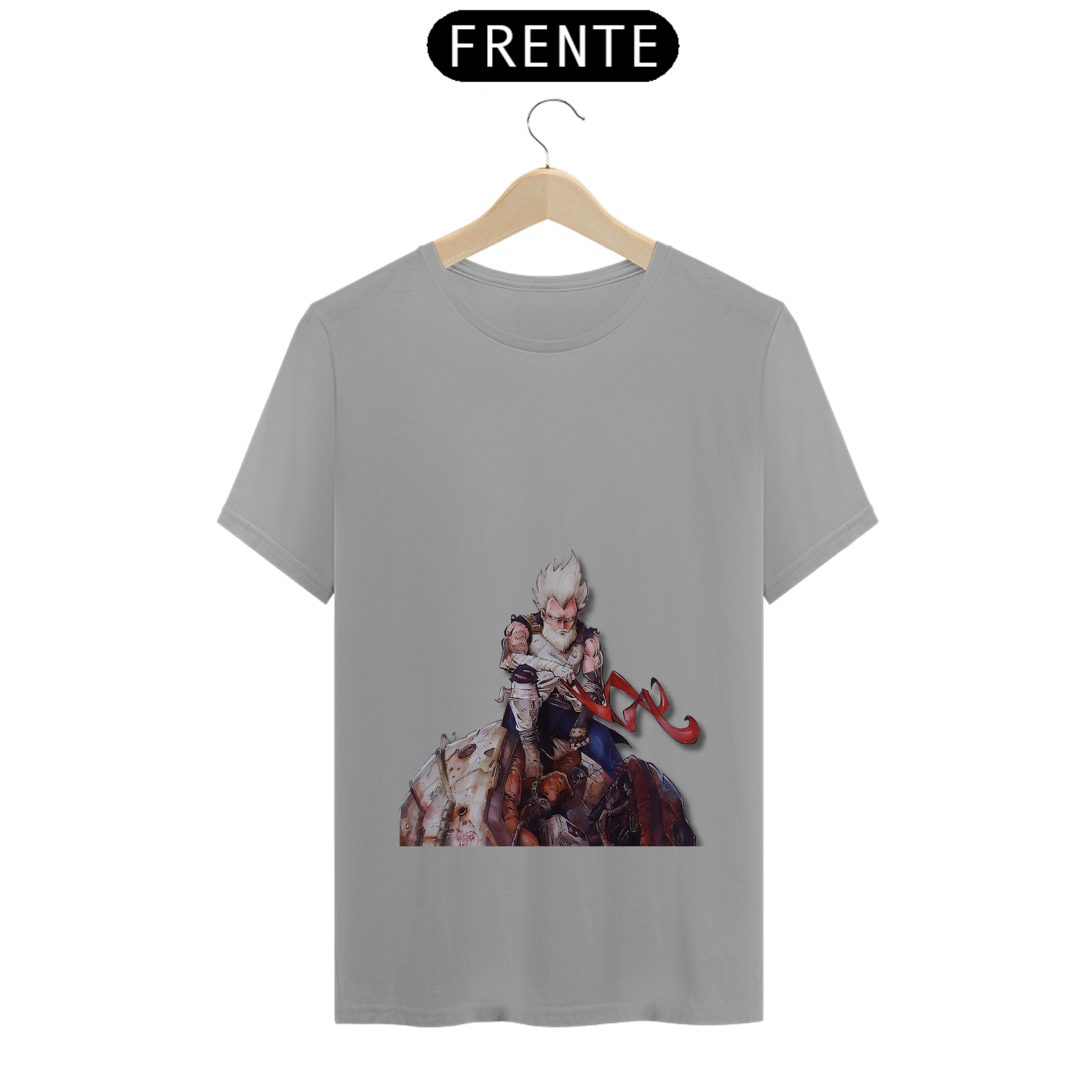 Relembre a jornada épica de Vegeta com esta estampa nostálgica. O príncipe dos Saiyajins, agora velho e sábio, sentado nos destroços de sua nave que o trouxe à Terra. Uma homenagem ao lendário guerreiro que superou desafios e se tornou um herói no universo de Dragon Ball. Mostre seu amor por Vegeta com estilo e emoção!"