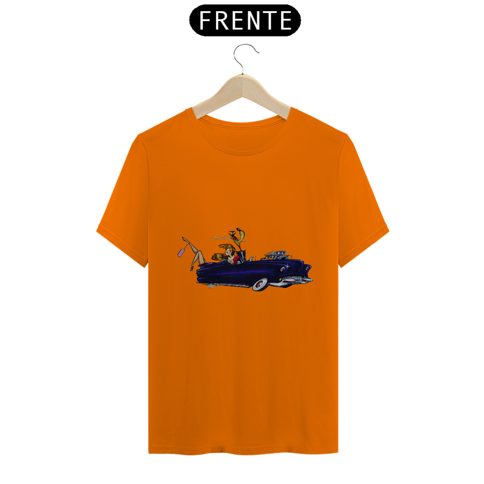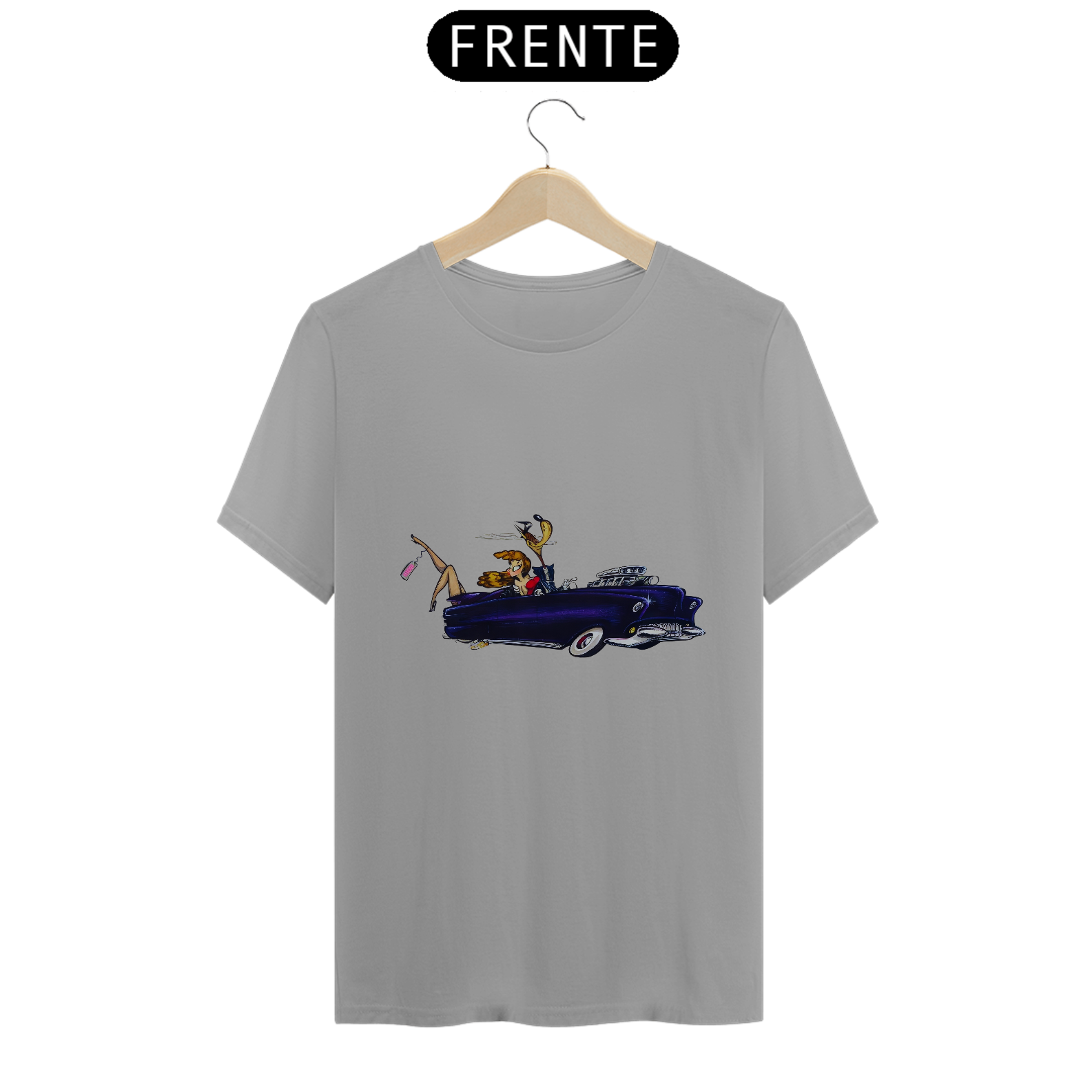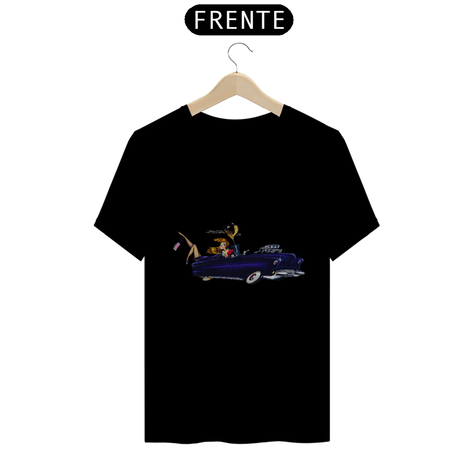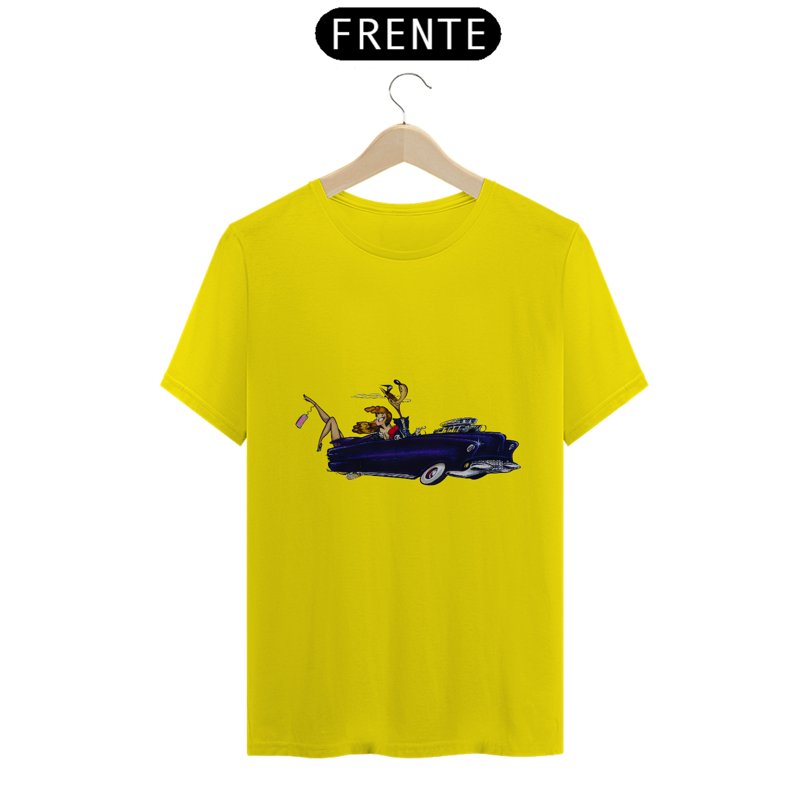 Entre no mundo da extravagância dos anos 70 com esta estampa ousada e cheia de estilo. O lobo mau, todo vestido de terno e charme, desfila pelas ruas com seu carrão cintilante, acompanhado de uma loira deslumbrante. Mas o que realmente rouba a cena é a loira que, virando a cabeça, vislumbra pernas espetaculares saindo do porta-malas, com uma etiqueta "Vendida". Uma mistura de luxo, ousadia e uma pitada de malícia, esta estampa é uma celebração do espírito livre dos anos 70. É uma história que só pode ser contada pela moda!