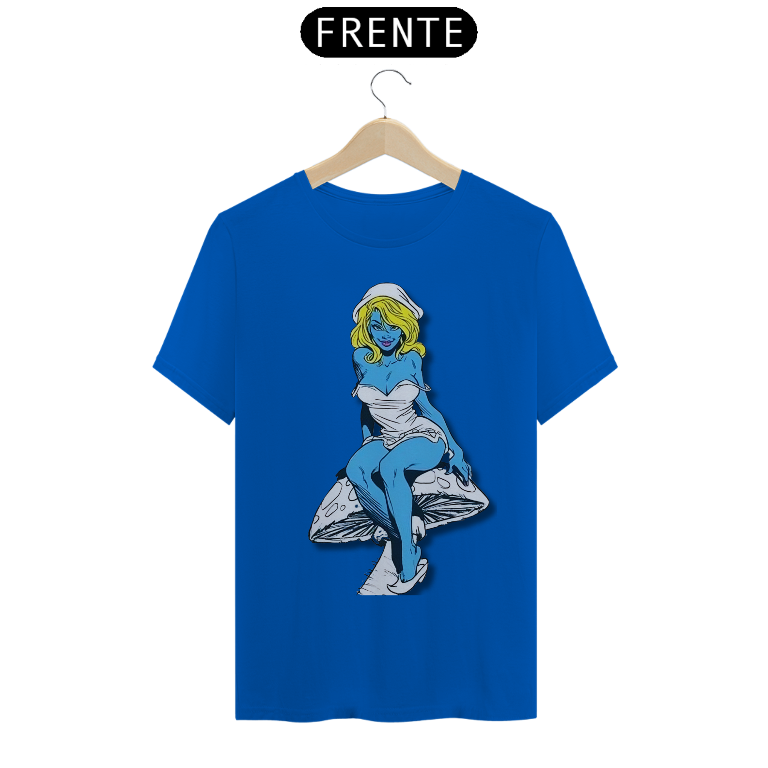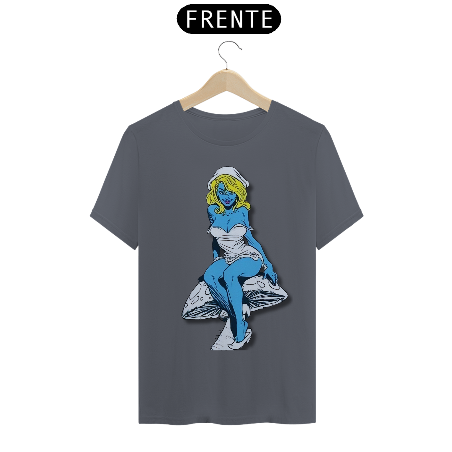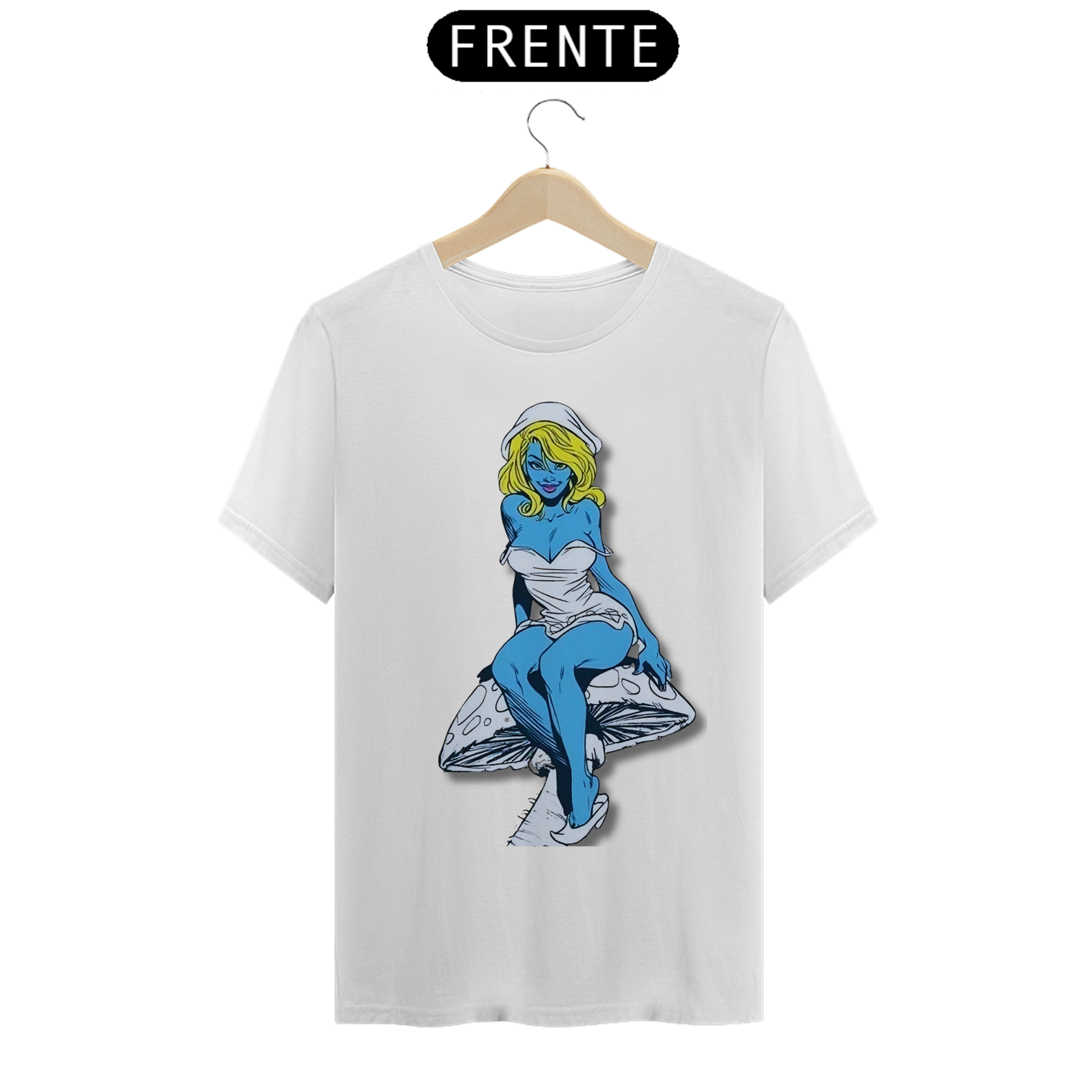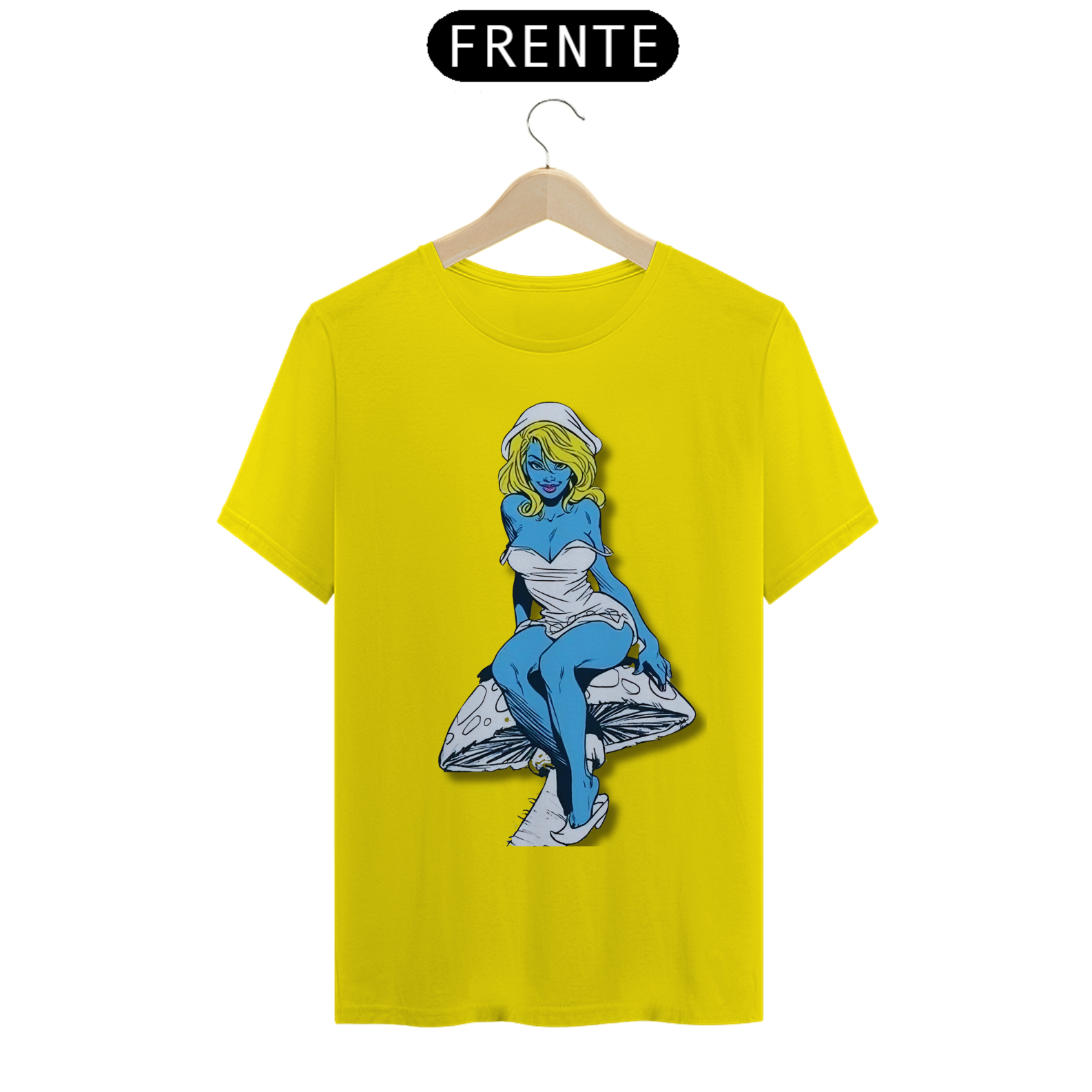 Nesta estampa de tirar o fôlego, a Smurfette se destaca como uma verdadeira mulherão, com um corpo cheio de atitude e curvas, perfeitamente desenhado em lápis de grafite. Sentada com elegância sobre um cogumelo, ela exibe toda a sua beleza e carisma. O cogumelo, cuidadosamente criado em arte de grafite, traz um toque especial à composição, destacando-se em tons de azul e amarelo, combinando com a paleta clássica dos Smurfs. Uma verdadeira obra de arte que celebra a feminilidade e o talento artístico.