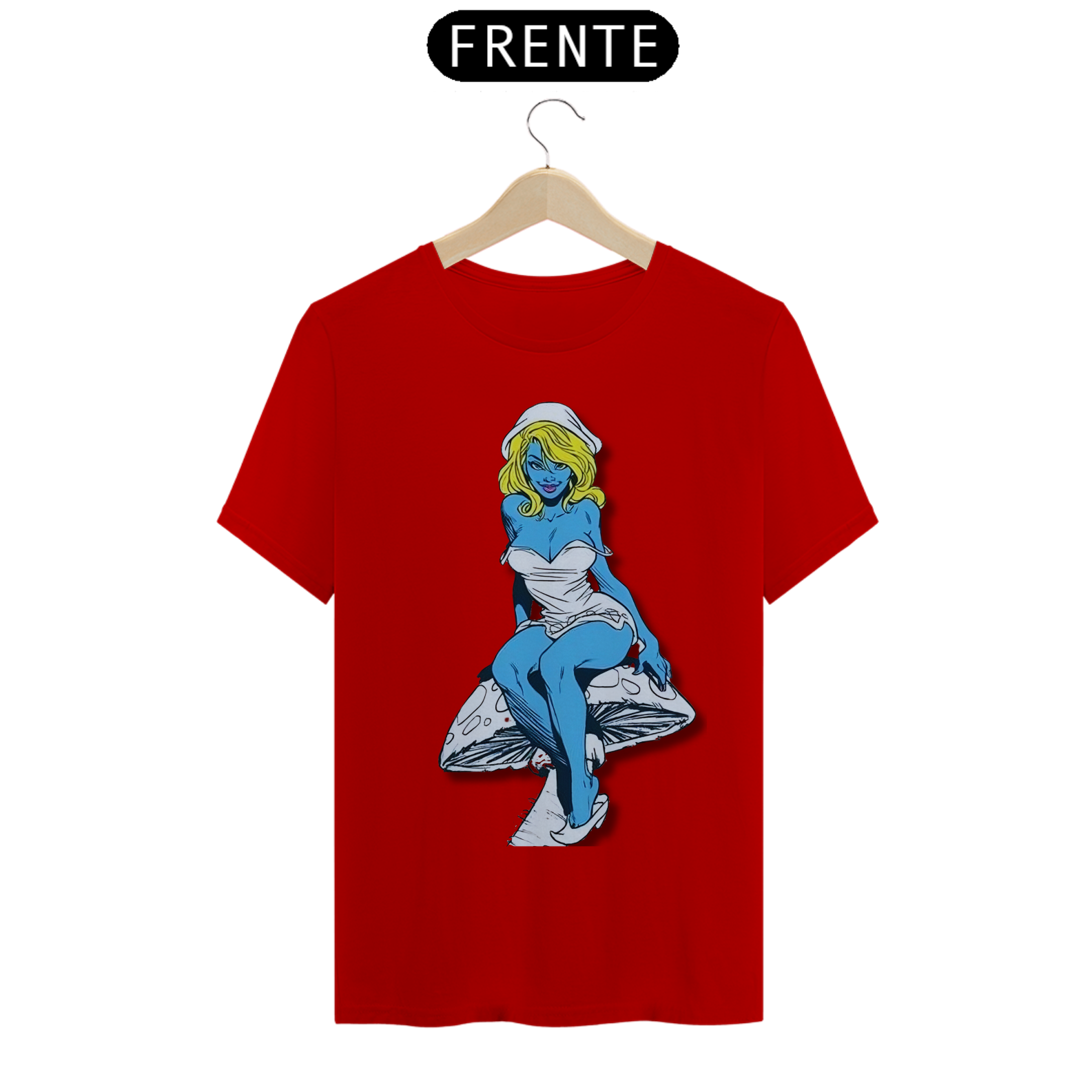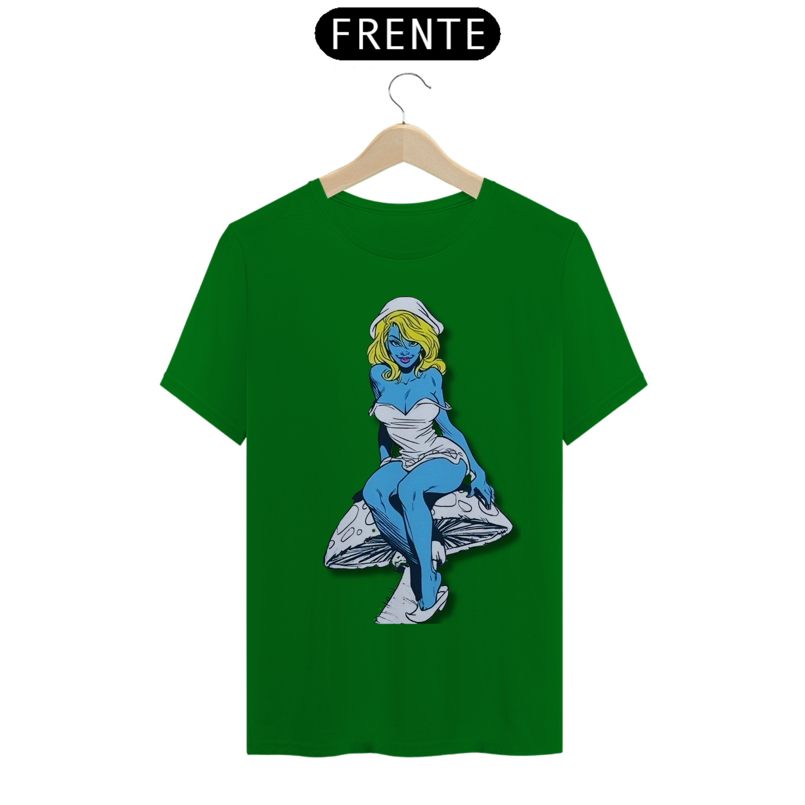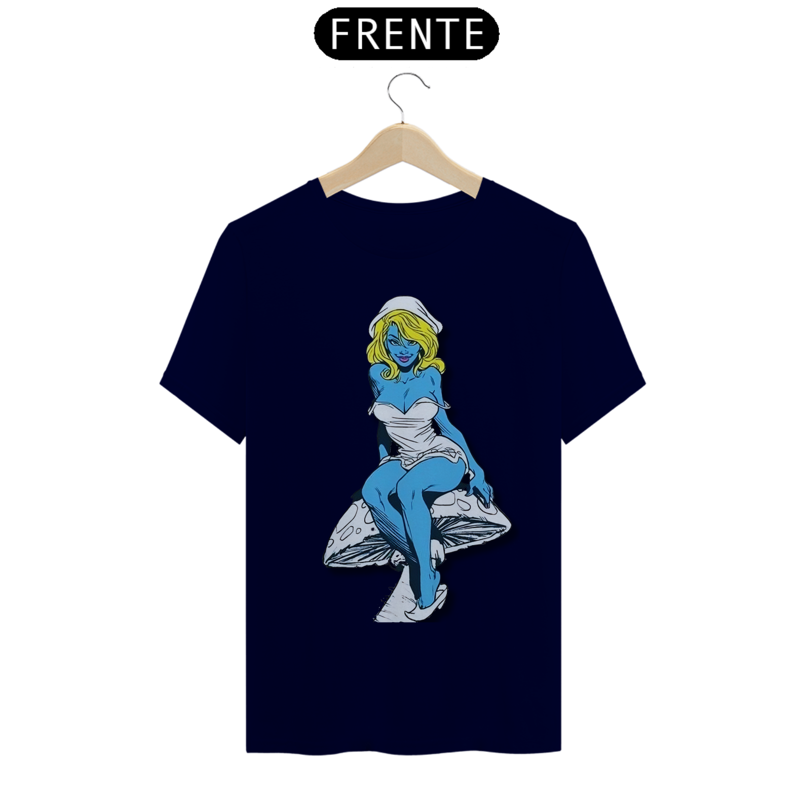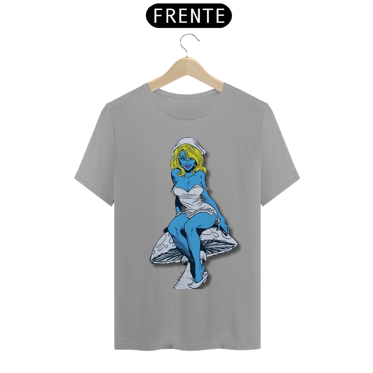 Nesta estampa de tirar o fôlego, a Smurfette se destaca como uma verdadeira mulherão, com um corpo cheio de atitude e curvas, perfeitamente desenhado em lápis de grafite. Sentada com elegância sobre um cogumelo, ela exibe toda a sua beleza e carisma. O cogumelo, cuidadosamente criado em arte de grafite, traz um toque especial à composição, destacando-se em tons de azul e amarelo, combinando com a paleta clássica dos Smurfs. Uma verdadeira obra de arte que celebra a feminilidade e o talento artístico.
