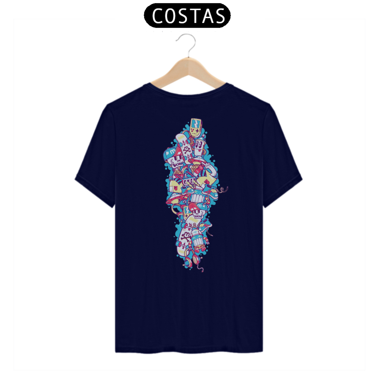 Prepare-se para uma explosão de criatividade com a nossa estampa de camiseta "Street Art Cósmica: Mistura Fantástica". Nesse desenho vibrante, reunimos vários elementos cartunescos que se fundem em uma imagem divertida e cativante. Uma caveira sorridente, um skate, um disco voador, fones de ouvido e óculos se misturam em um festival de cores e formas. Essa estampa é um convite para celebrar a diversidade e a liberdade artística encontradas nas ruas. Vista essa camiseta e mergulhe na energia da "Street Art Cósmica: Mistura Fantástica". Deixe que essa imagem inspiradora reflita seu amor pela expressão individual e pela fusão de estilos e influências. Celebre a criatividade ilimitada e a conexão cósmica entre todas as formas de arte em uma estampa cheia de alegria e vivacidade.