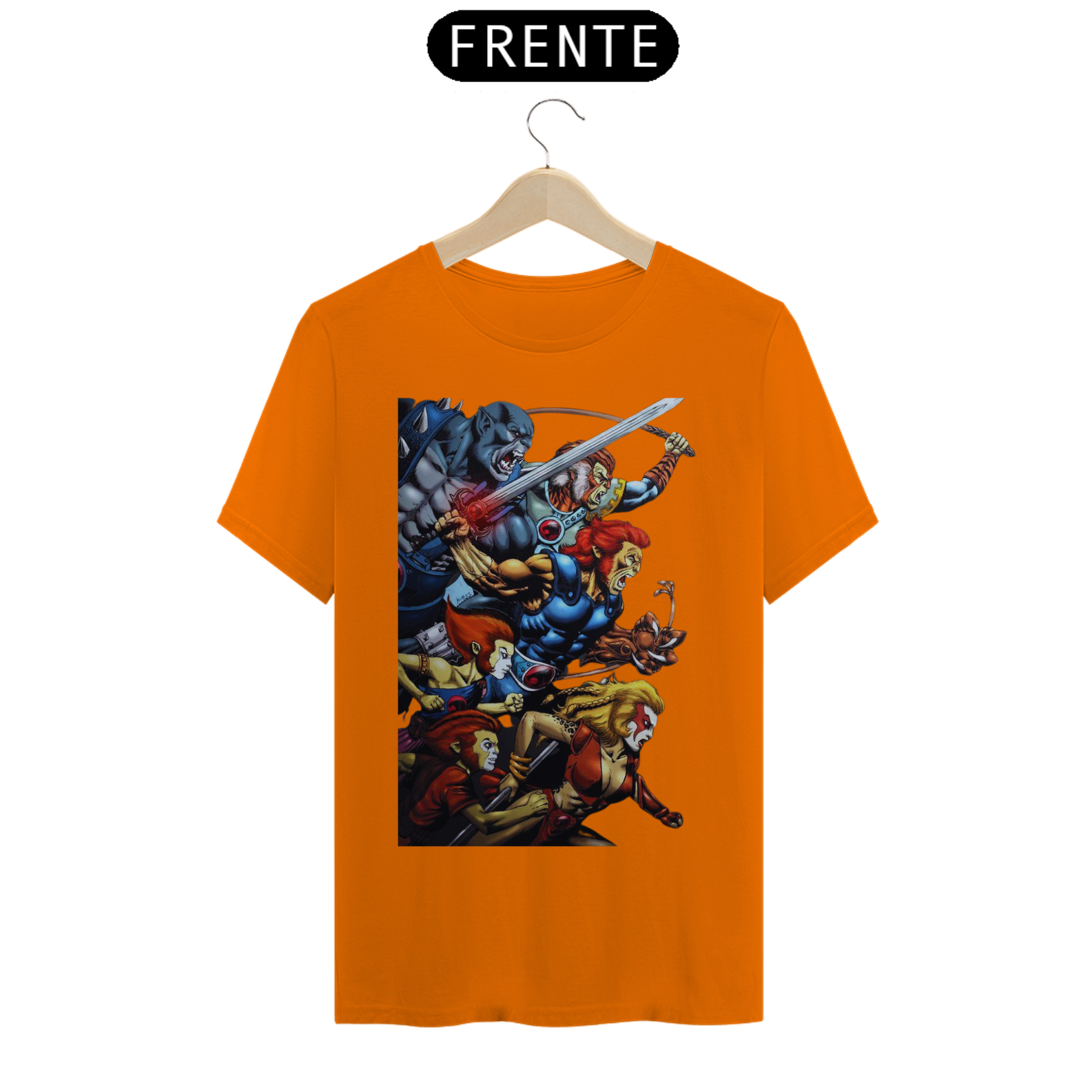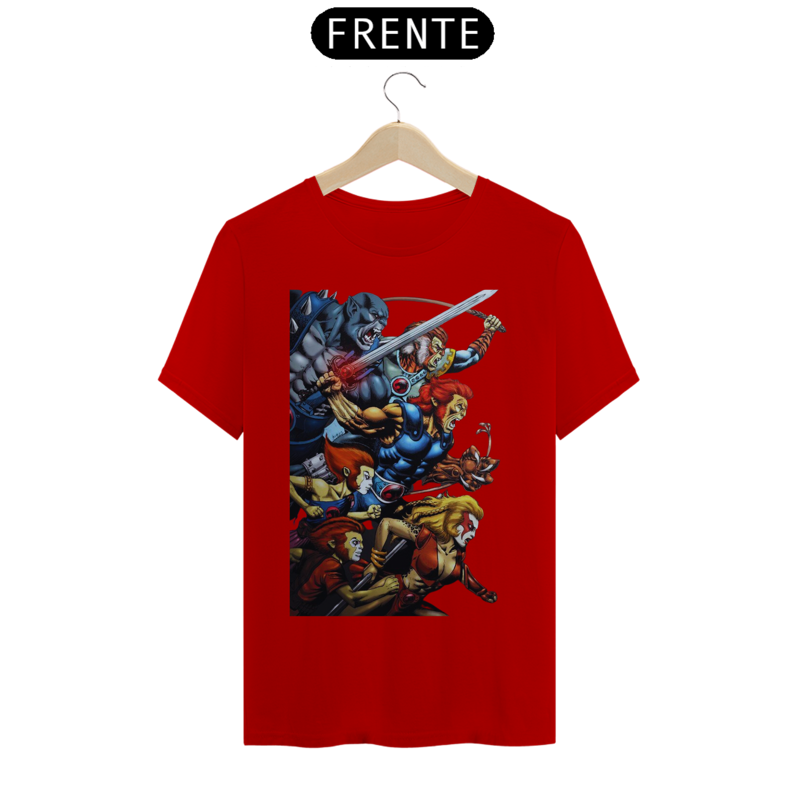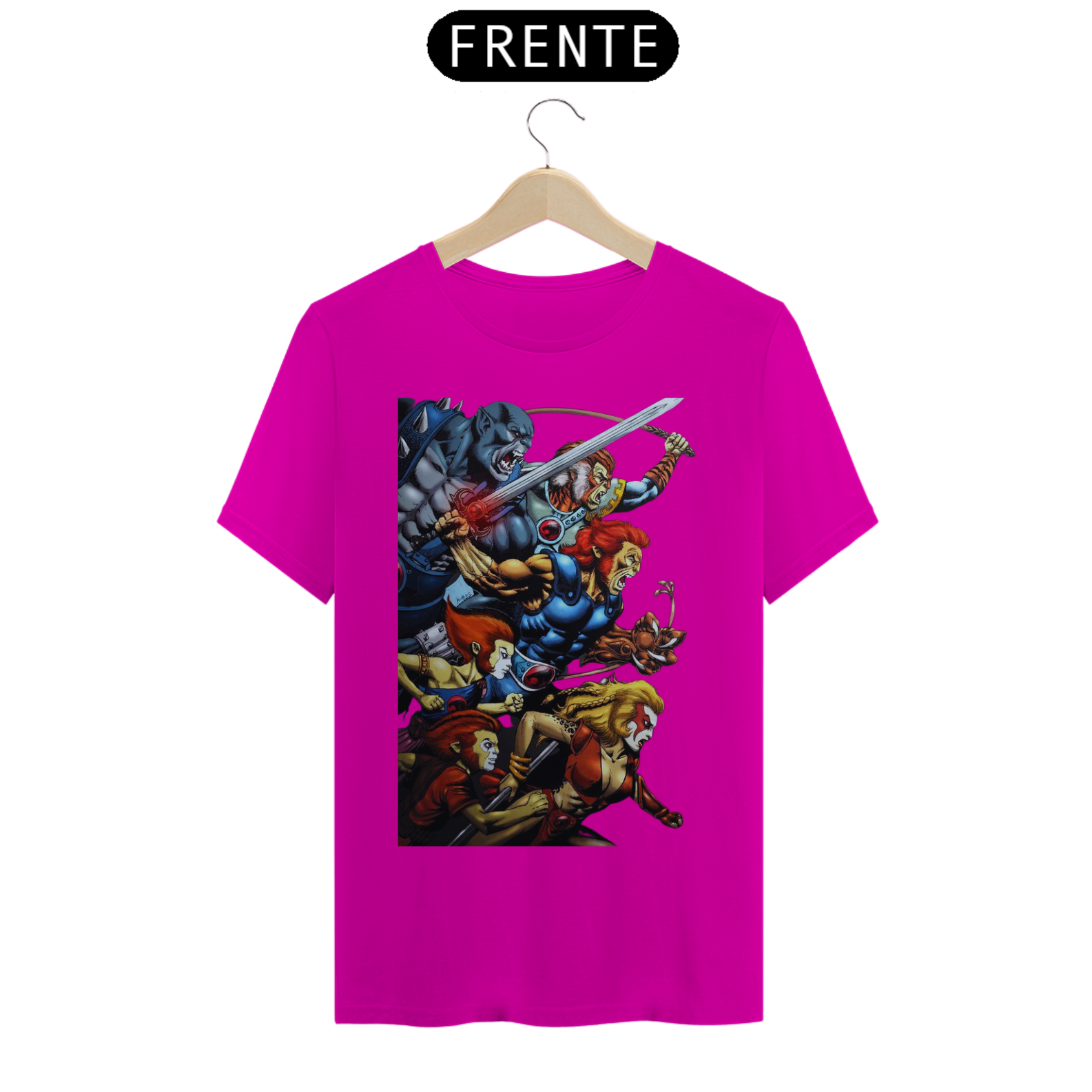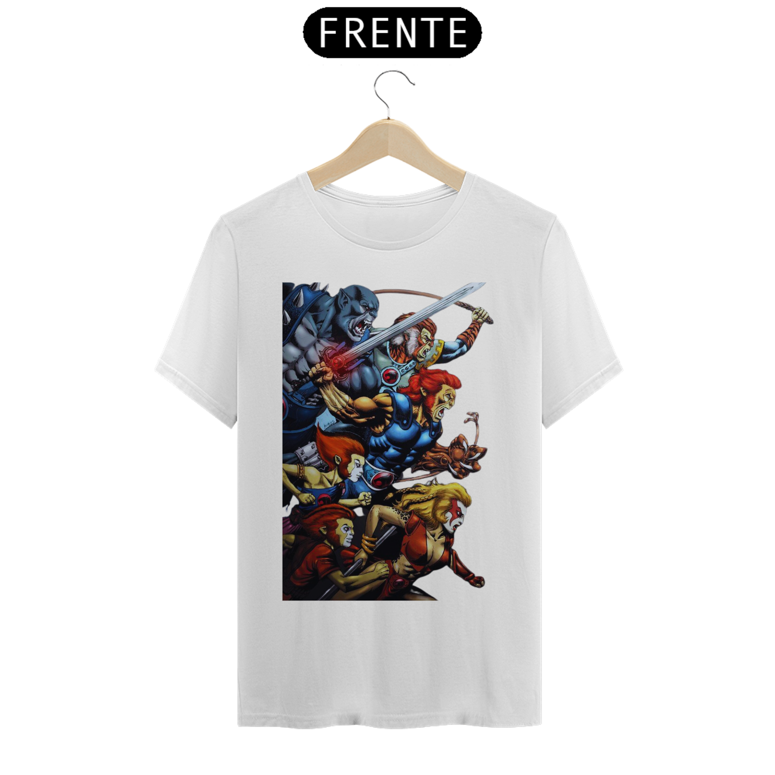 A estampa "Rugido de Guerreiros" traz toda a empolgação e determinação dos Thundercats enquanto se preparam para a batalha. Nessa arte vibrante, vemos Lion-O, Panthro, Tygra, Cheetara e os demais membros do grupo em uma pose heroica, prontos para enfrentar qualquer desafio que se apresente. Suas armas reluzentes e expressões determinadas transmitem a coragem e a força dos Thundercats. A energia em seus olhos reflete a vontade de proteger Thundera e lutar pela justiça. A estampa "Rugido de Guerreiros" é uma homenagem aos fãs dessa icônica série animada, trazendo à tona memórias de aventuras épicas e valores como lealdade, coragem e trabalho em equipe. Vista essa camiseta e una-se aos Thundercats em sua jornada emocionante rumo à vitória.