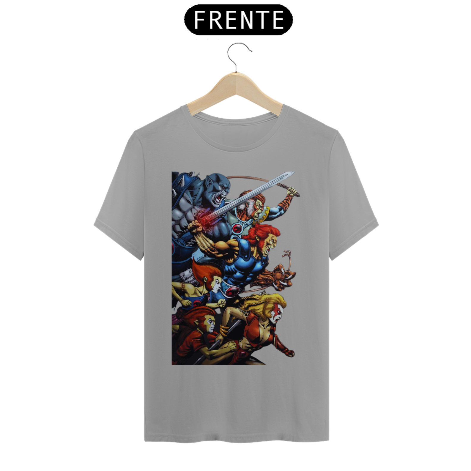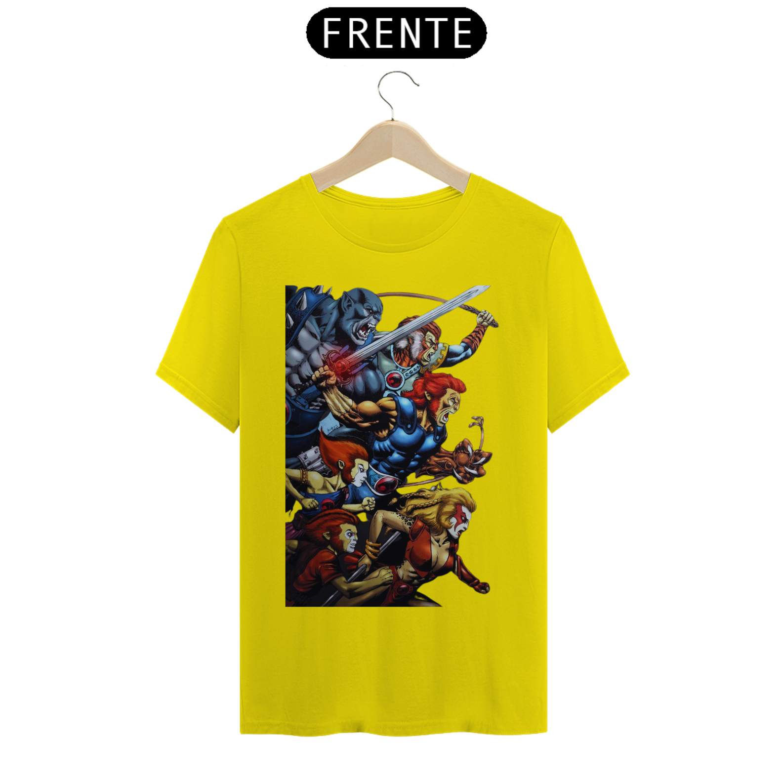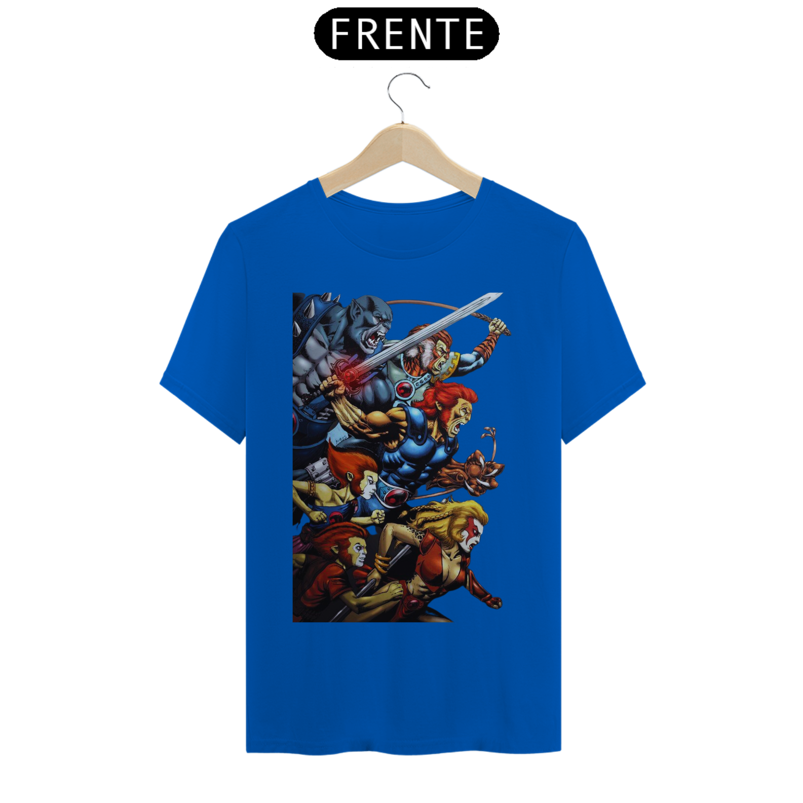 A estampa "Rugido de Guerreiros" traz toda a empolgação e determinação dos Thundercats enquanto se preparam para a batalha. Nessa arte vibrante, vemos Lion-O, Panthro, Tygra, Cheetara e os demais membros do grupo em uma pose heroica, prontos para enfrentar qualquer desafio que se apresente. Suas armas reluzentes e expressões determinadas transmitem a coragem e a força dos Thundercats. A energia em seus olhos reflete a vontade de proteger Thundera e lutar pela justiça. A estampa "Rugido de Guerreiros" é uma homenagem aos fãs dessa icônica série animada, trazendo à tona memórias de aventuras épicas e valores como lealdade, coragem e trabalho em equipe. Vista essa camiseta e una-se aos Thundercats em sua jornada emocionante rumo à vitória.
