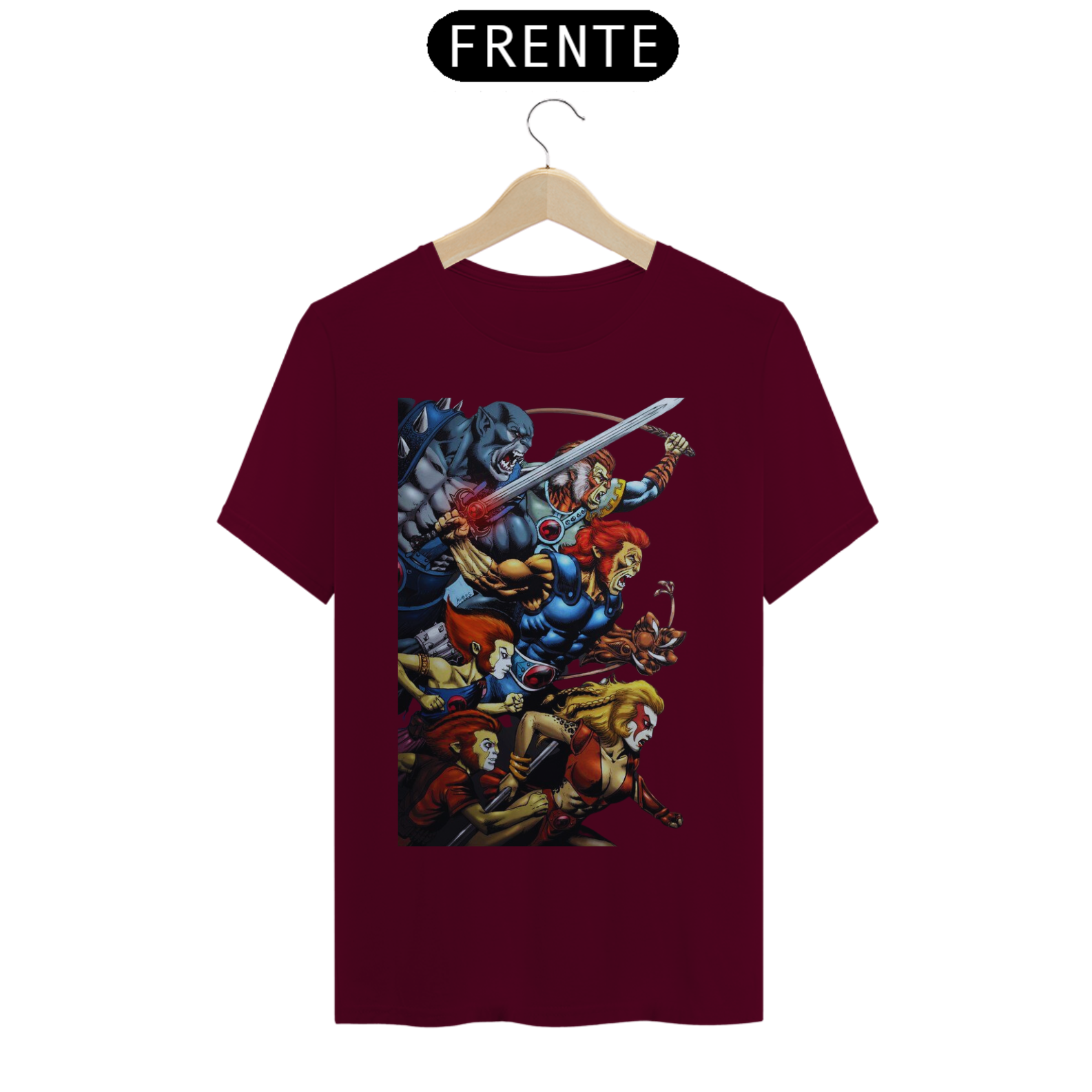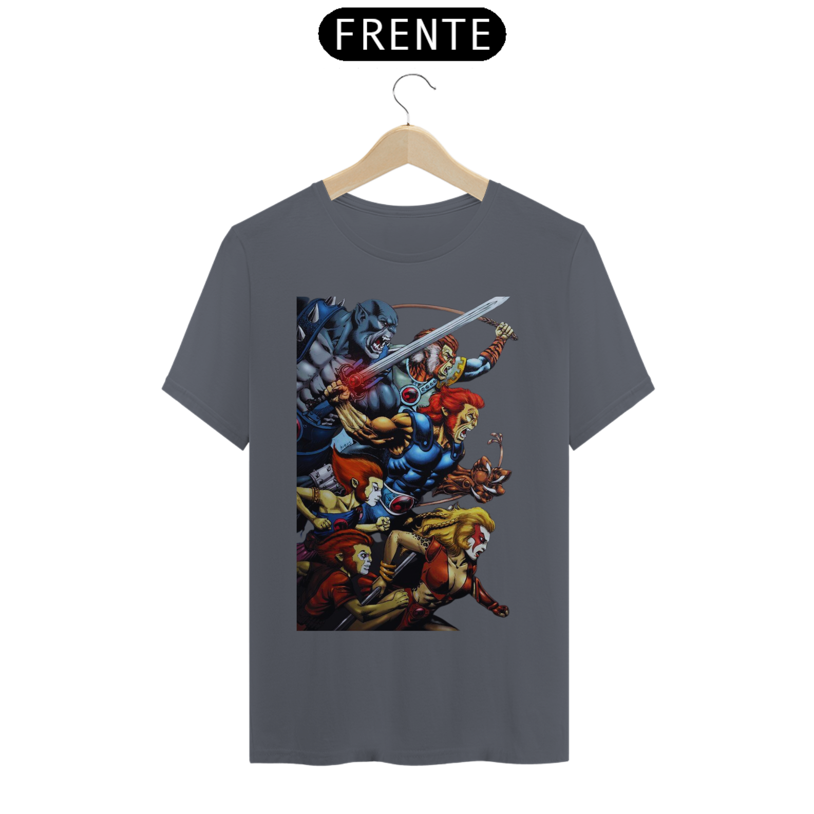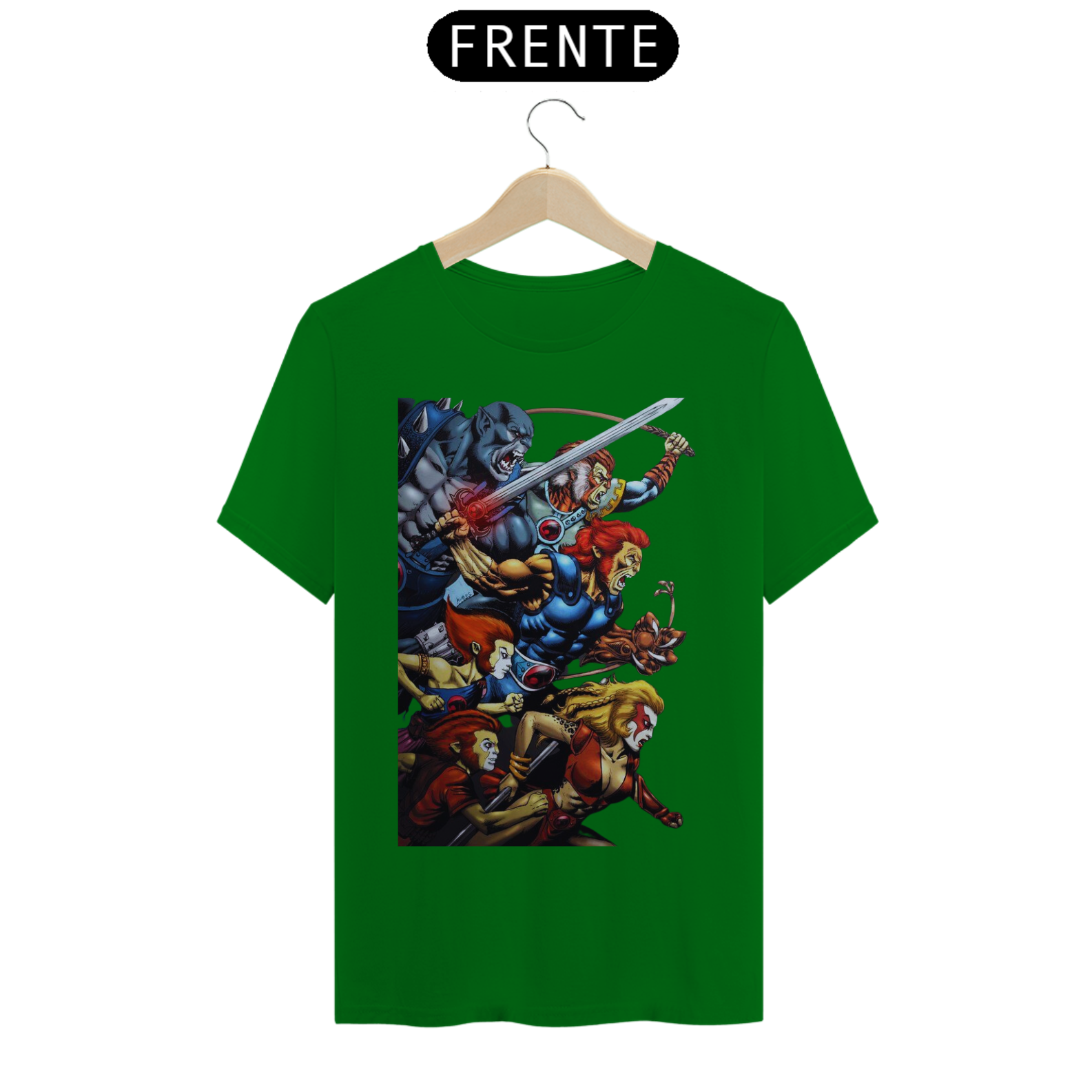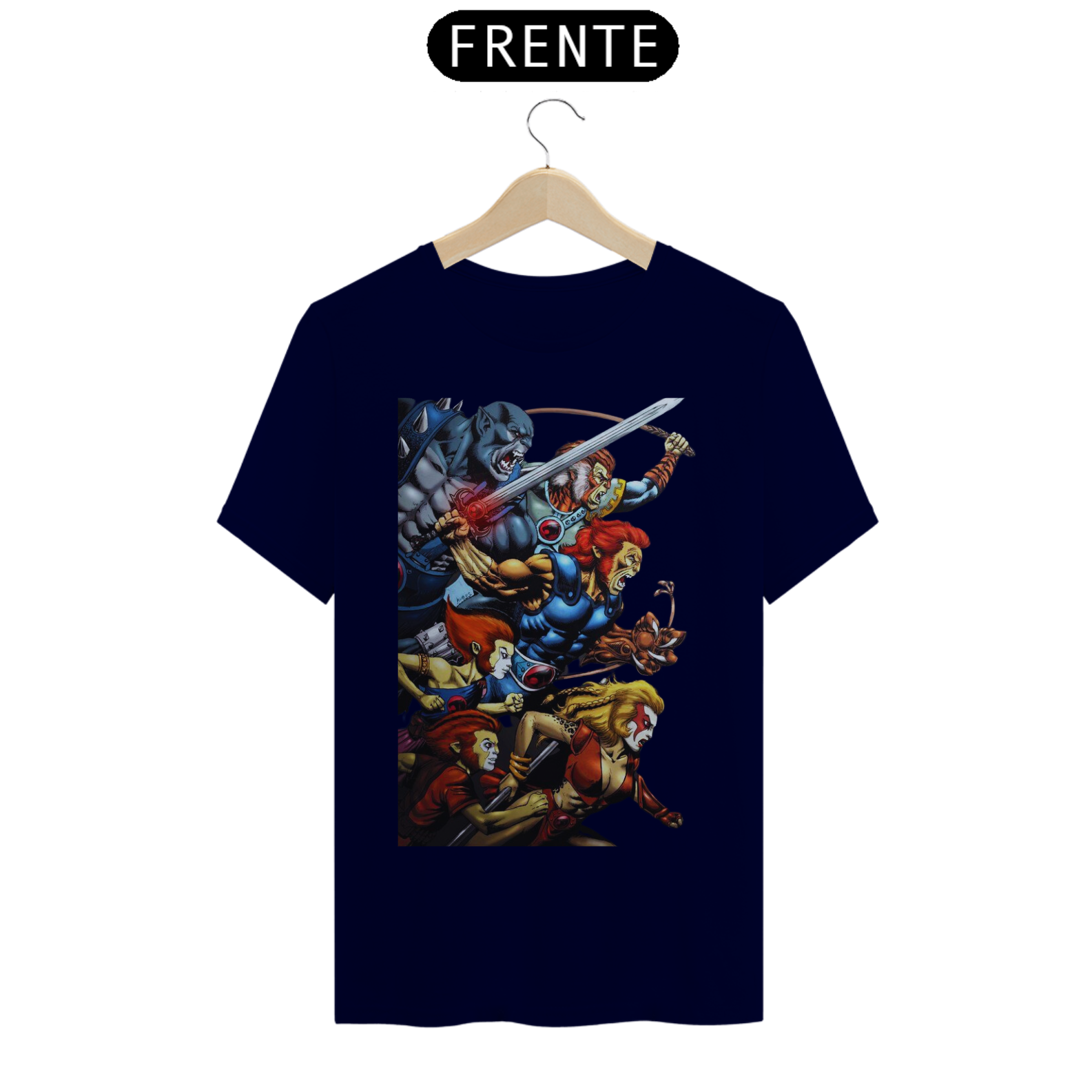 A estampa "Rugido de Guerreiros" traz toda a empolgação e determinação dos Thundercats enquanto se preparam para a batalha. Nessa arte vibrante, vemos Lion-O, Panthro, Tygra, Cheetara e os demais membros do grupo em uma pose heroica, prontos para enfrentar qualquer desafio que se apresente. Suas armas reluzentes e expressões determinadas transmitem a coragem e a força dos Thundercats. A energia em seus olhos reflete a vontade de proteger Thundera e lutar pela justiça. A estampa "Rugido de Guerreiros" é uma homenagem aos fãs dessa icônica série animada, trazendo à tona memórias de aventuras épicas e valores como lealdade, coragem e trabalho em equipe. Vista essa camiseta e una-se aos Thundercats em sua jornada emocionante rumo à vitória.