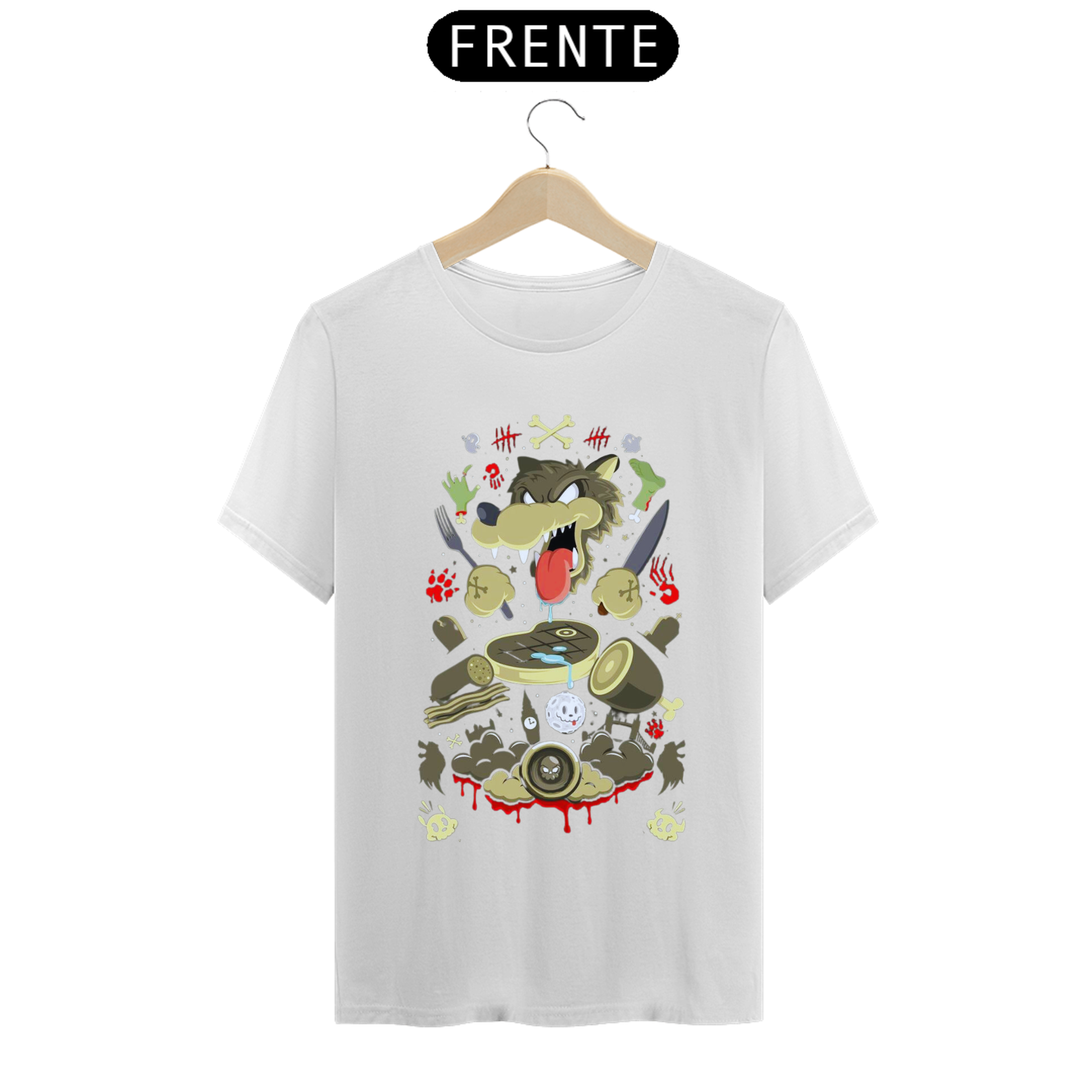 Deixe-se levar pelo mundo animado dos anos 40 com nossa estampa de camiseta "Fome Insaciável". Nessa criação cativante, um lobo cartoon ganha vida com sua personalidade audaciosa e faminta. Com olhos arregalados e uma expressão astuta, o lobo segura um grafo e uma faca, prontos para devorar sua refeição. Ao seu redor, vários pedaços de carne suculenta são exibidos, despertando o apetite de qualquer um. As cores vibrantes e os traços cartunescos resgatam a nostalgia dos desenhos animados clássicos da época. Vista essa camiseta e deixe que o lobo faminto desperte seu lado divertido e audaz. Com "Fome Insaciável", você se tornará o centro das atenções com um toque retrô e um toque de humor animado.