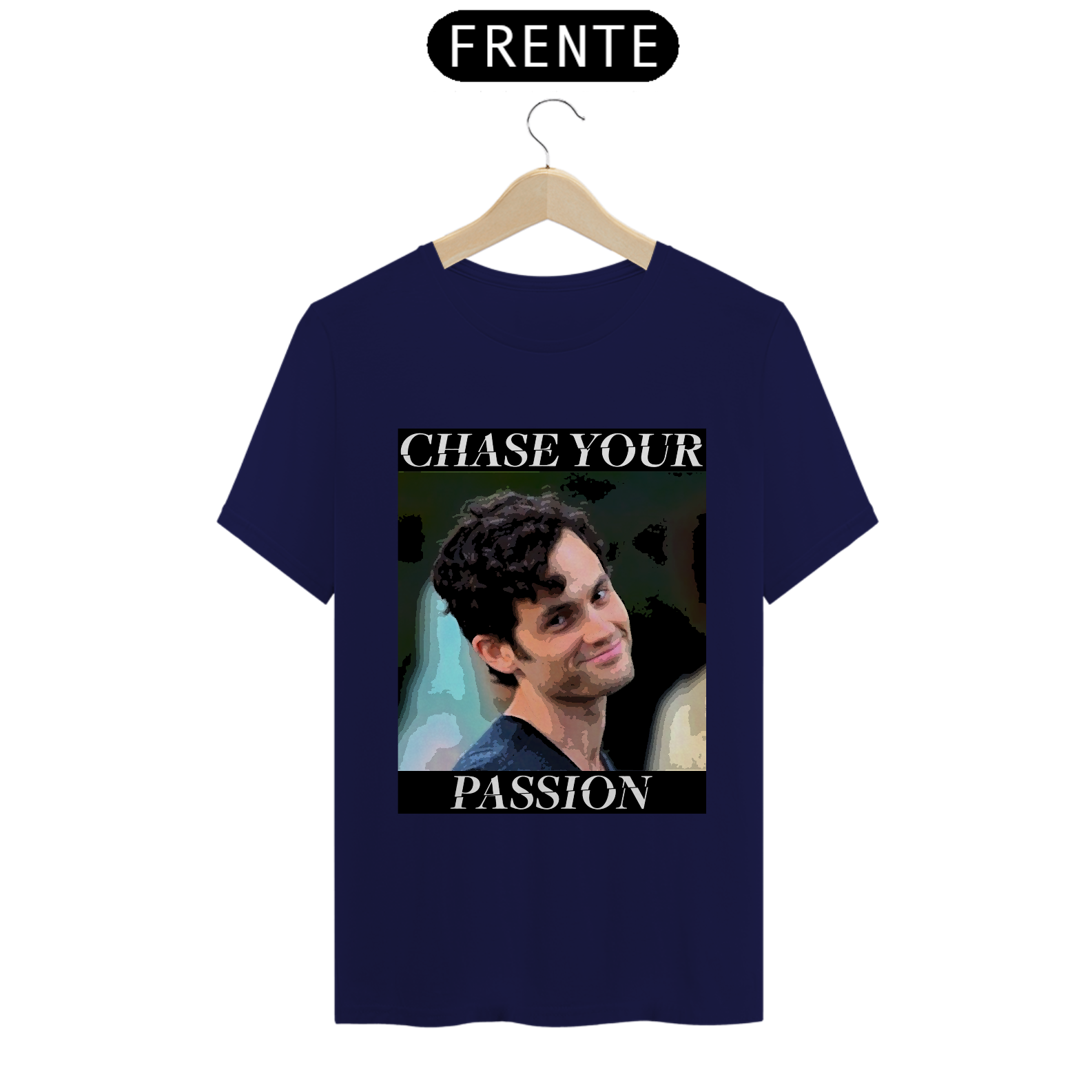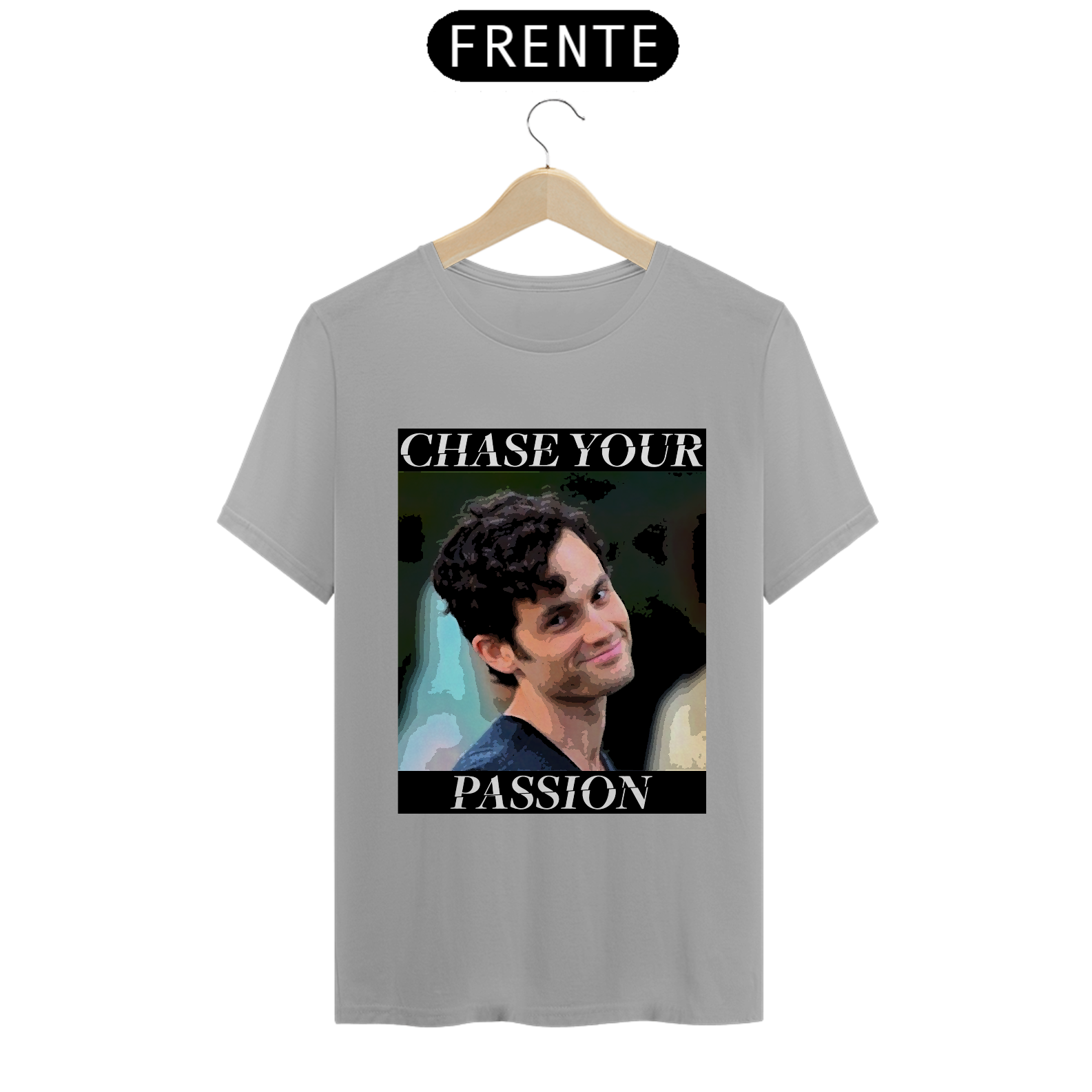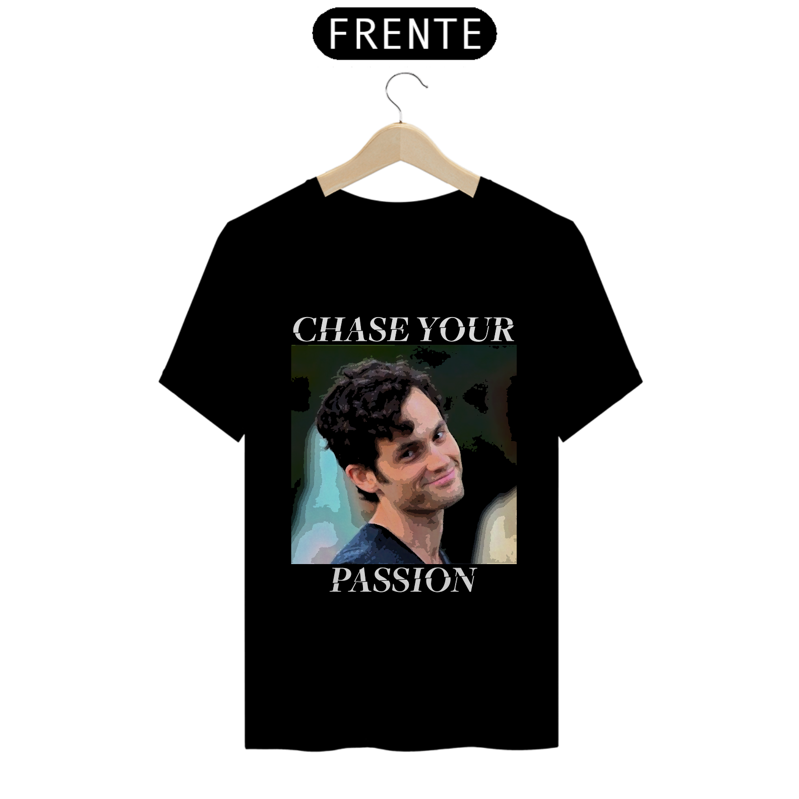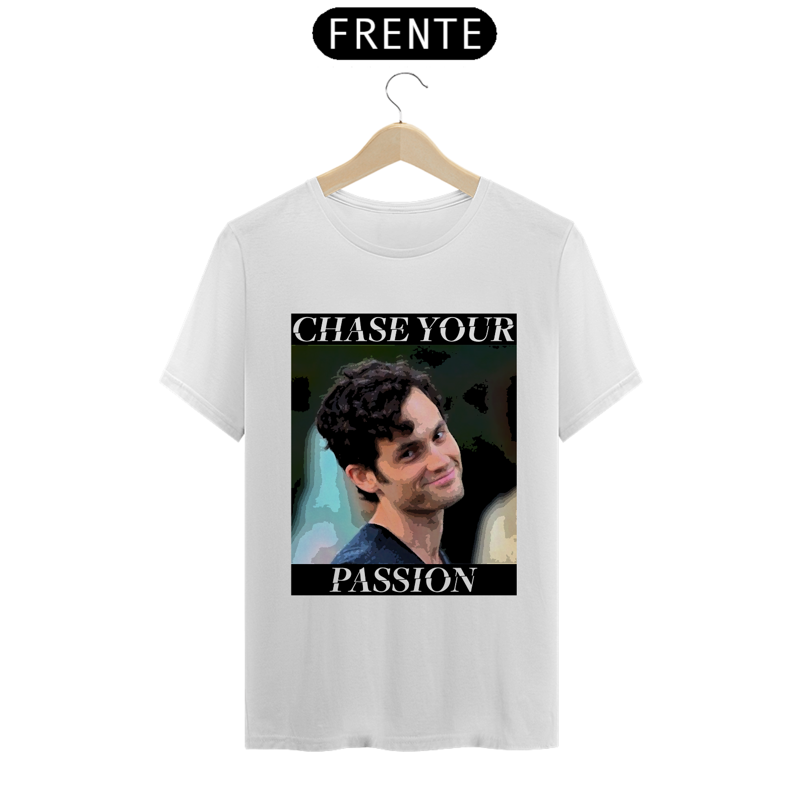 Irreverente e intrigante, a camiseta 'Chase Your Passion' apresenta Joe Goldberg da série You. Uma ironia sutil sobre a perseguição da paixão, lembrando que nem todas as buscas são tão inofensivas quanto parecem.