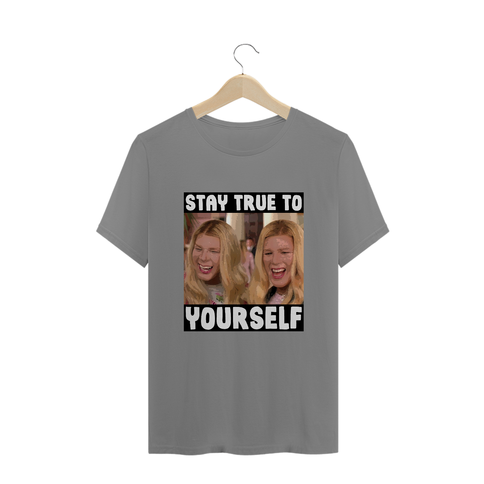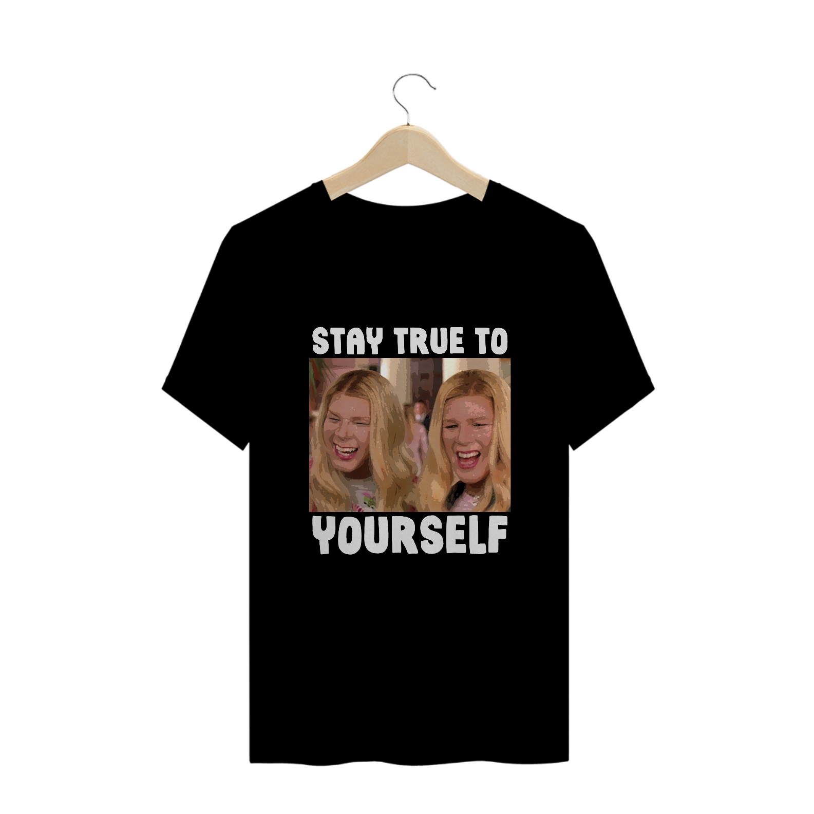 Com a camiseta 'Stay True To Yourself', Kevin e Marcus de 'As Branquelas' desafiam a autenticidade. Uma ironia sutil sobre identidade, celebrando a diversidade de formas de ser verdadeiramente único.