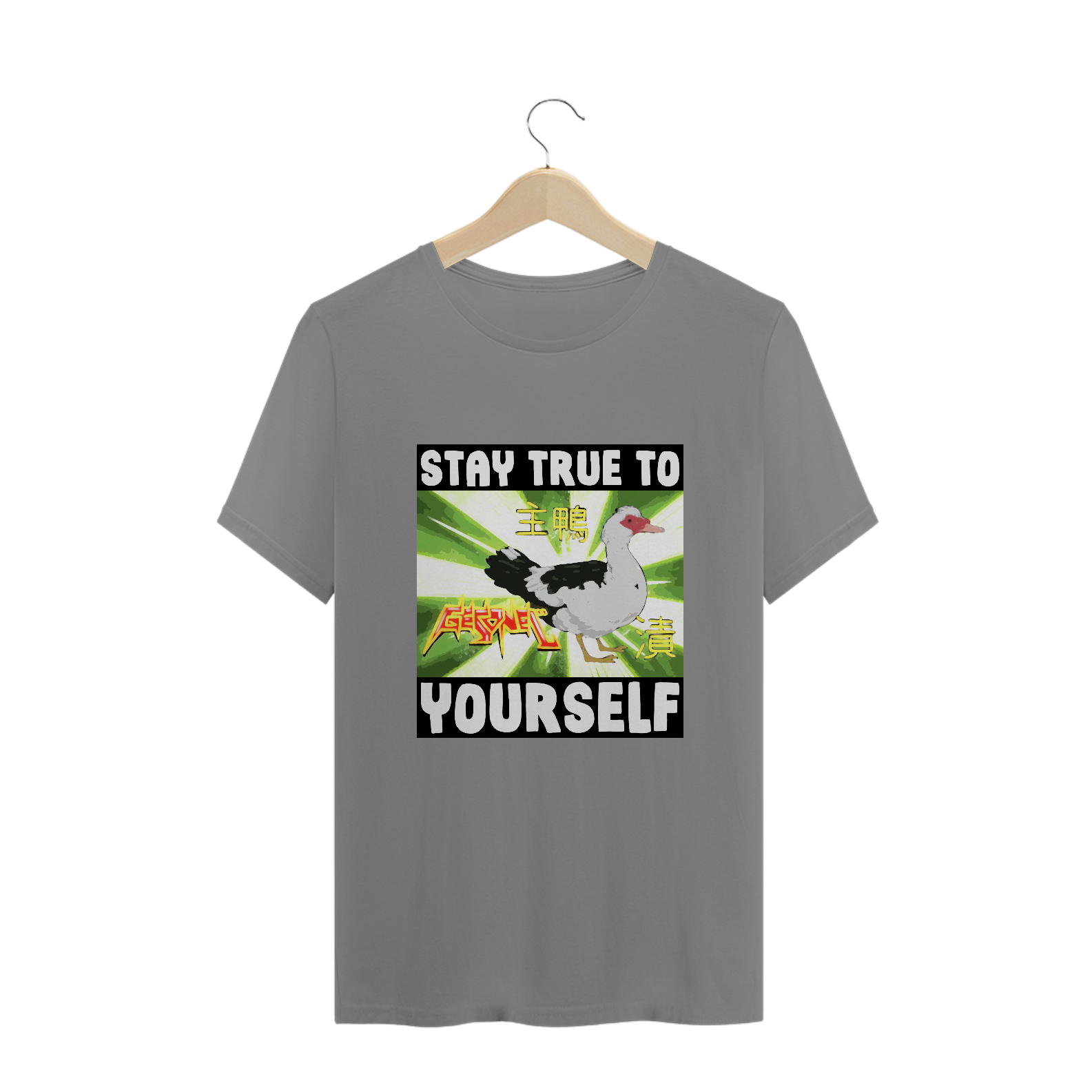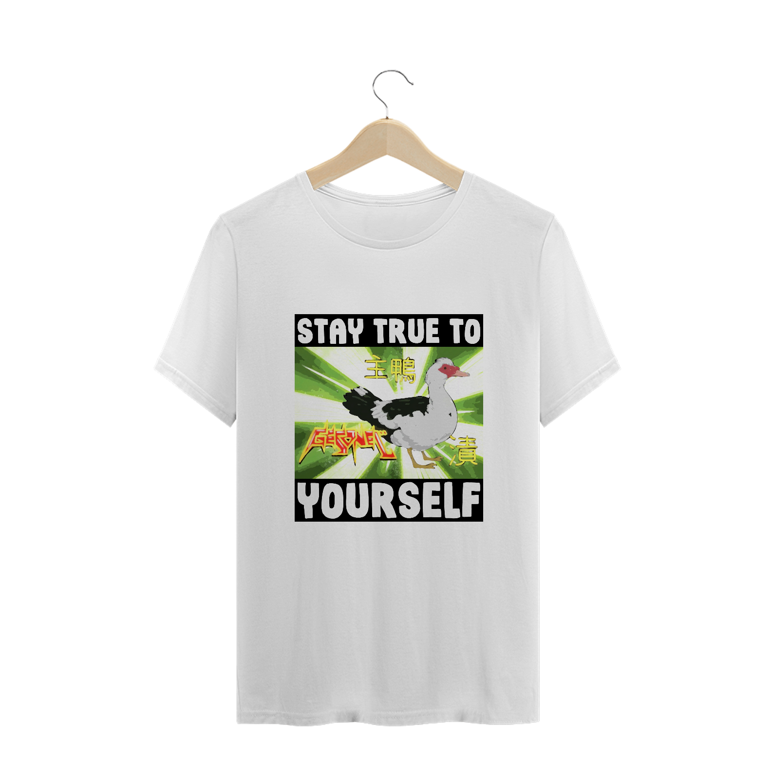 Na camiseta 'Stay True To Yourself', Gesonel, o mestre dos disfarces de 'Irmão do Jorel', desafia a noção de autenticidade. Uma ironia sutil sobre identidade, celebrando a diversidade e a criatividade de ser verdadeiramente único.