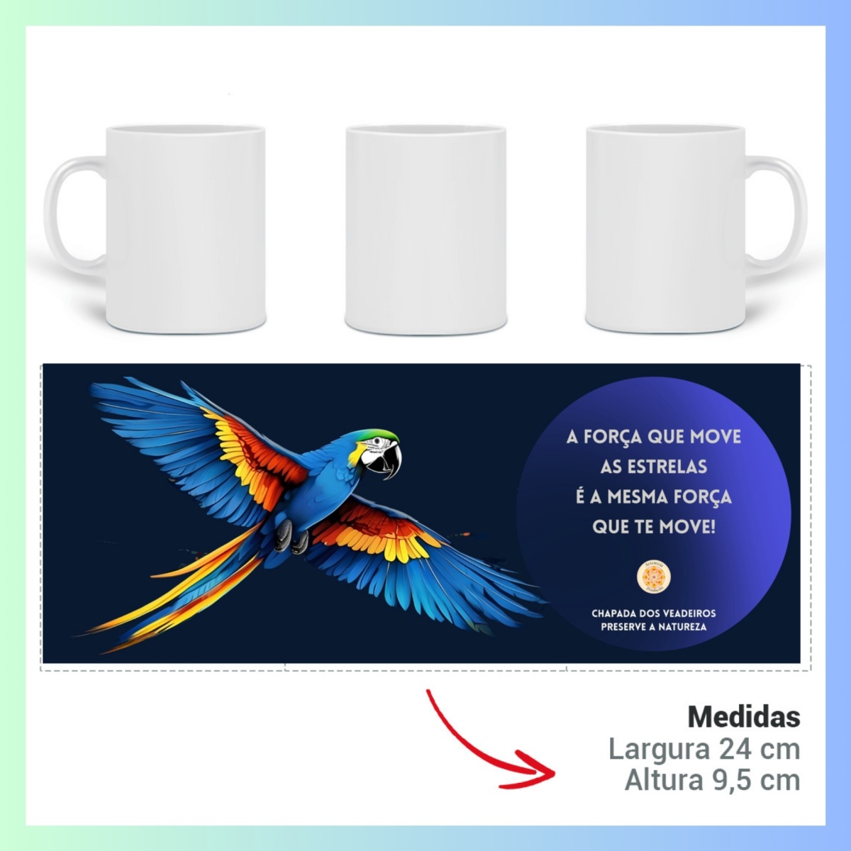 E agora, essa energia colorida e luminosa ganha forma nas canecas Artemísia. Peças que unem arte, natureza e emoção. Cada caneca com a Arara-canindé é um pedacinho do Cerrado, uma lembrança do que é livre, vivo e essencial.