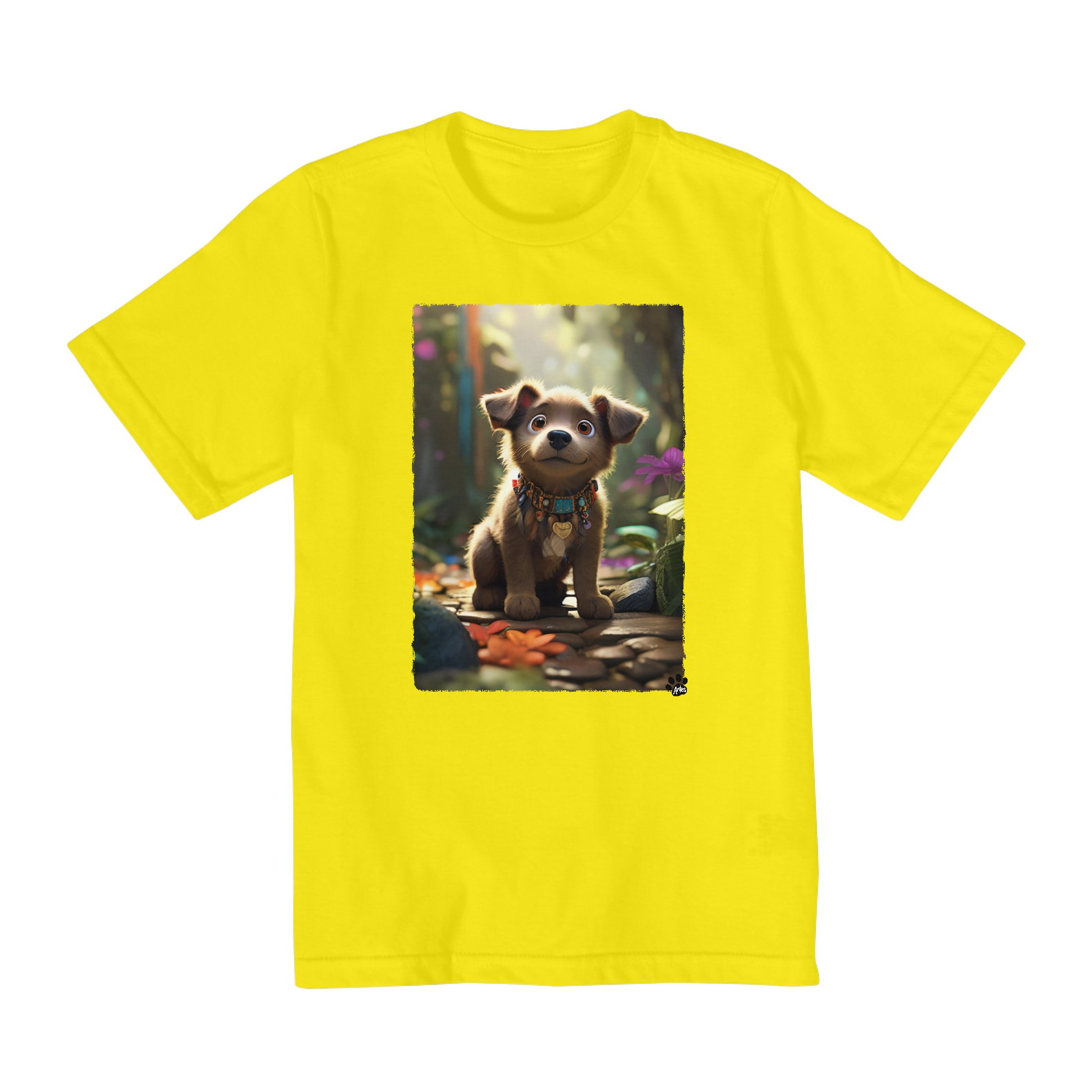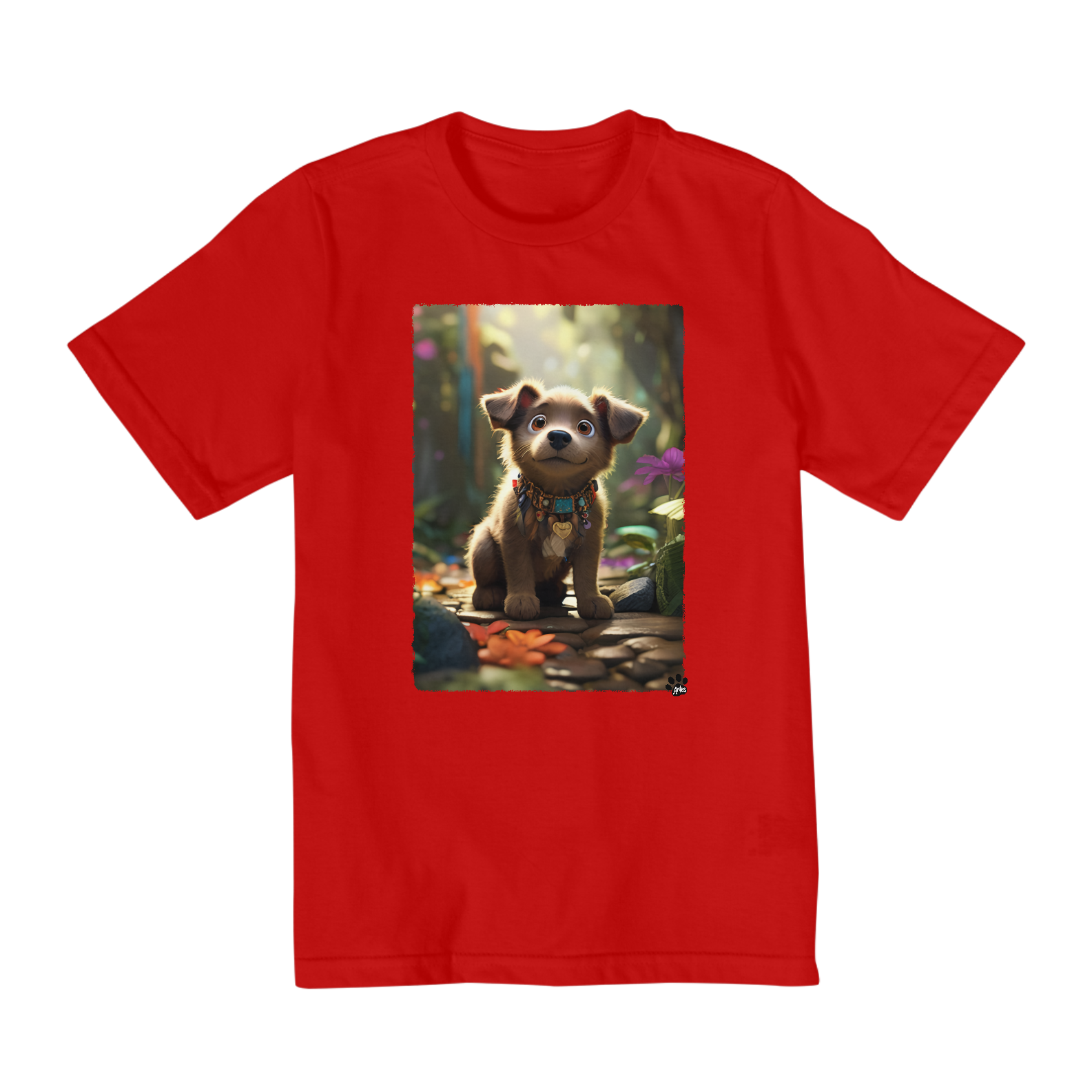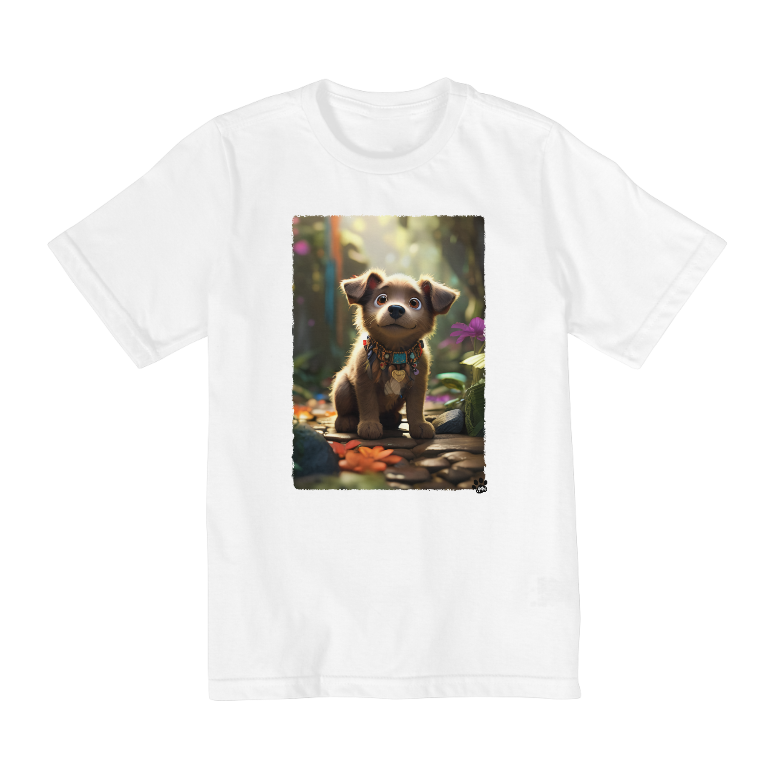 Deixe a imaginação voar com esta adorável camiseta! Um lindo doguinho cinza numa grande aventura por uma floresta cheia de mistérios. Seus olhos curiosos e sua postura elegante transmitem o espírito aventureiro que encanta crianças de todas as idades. Com um cenário exuberante, repleto de árvores altas e folhas coloridas, esta cena captura toda a magia e a beleza da natureza. Perfeito para os pequenos amantes de animais e da natureza, esta camiseta é garantia de diversão e aventuras sem fim!