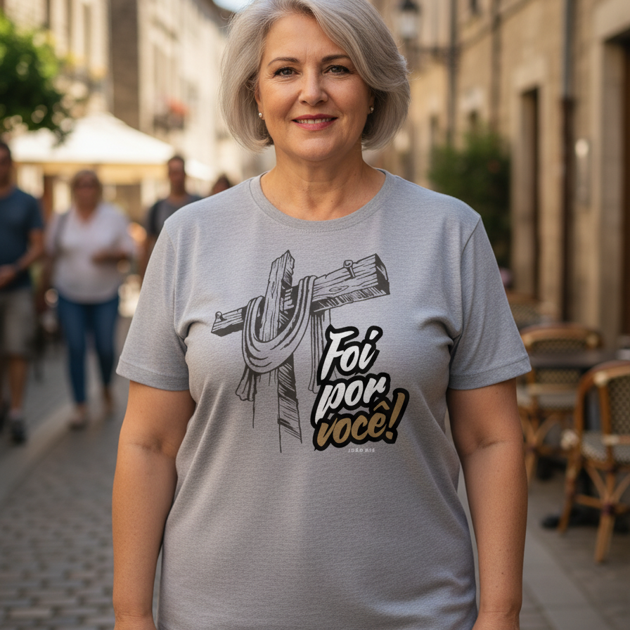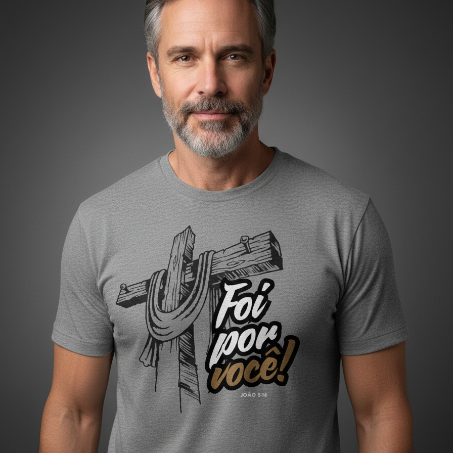 Vista a prova do amor incondicional de Jesus. A camiseta "Foi Por Você" é um lembrete vivo e emocionante do sacrifício que nos salvou. Mais do que uma simples peça de roupa, ela é uma declaração de gratidão, um testemunho silencioso da fé que move montanhas e acalma corações.