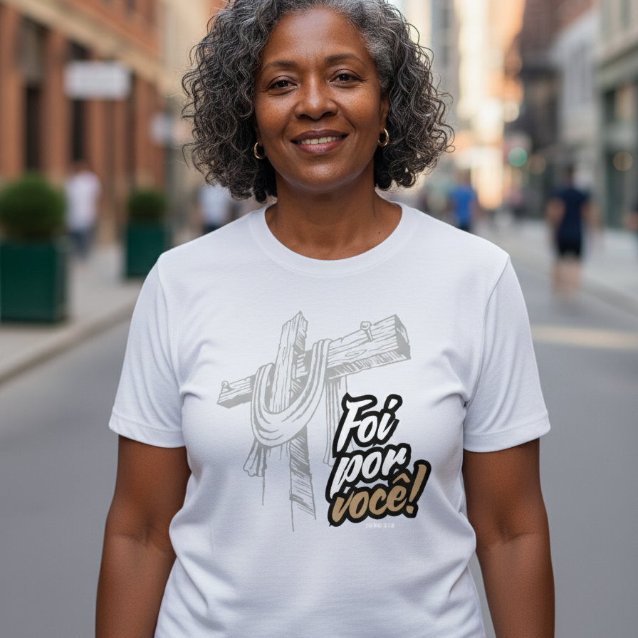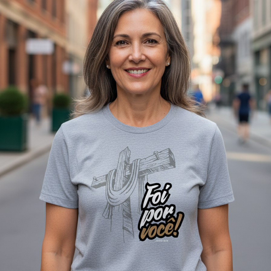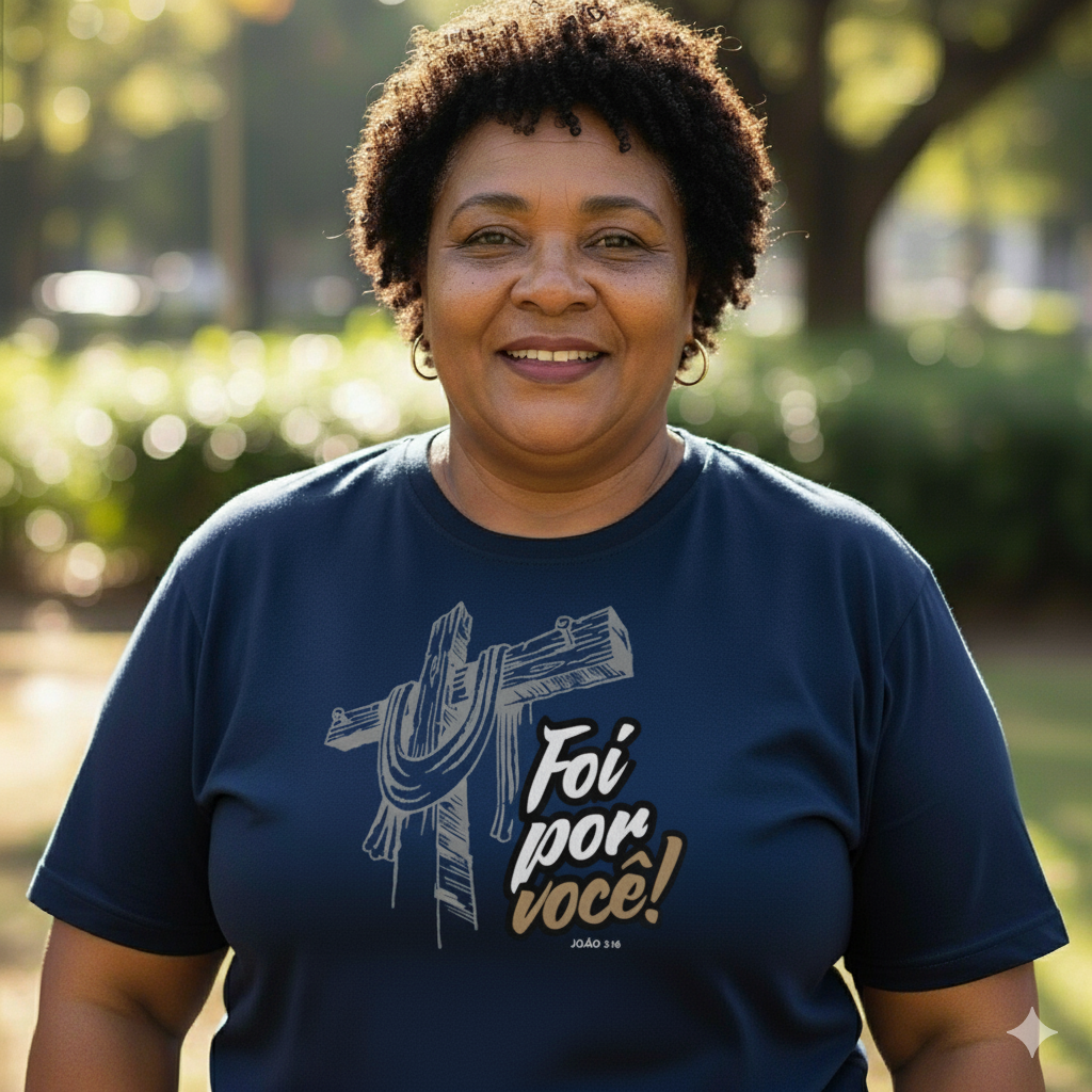 Leve essa mensagem de amor e redenção para onde for. Adquira a sua camiseta "Foi Por Você" e sinta o abraço de Jesus em cada detalhe. Uma peça que fortalece a alma e inspira a todos ao seu redor. Compre agora e vista o amor!