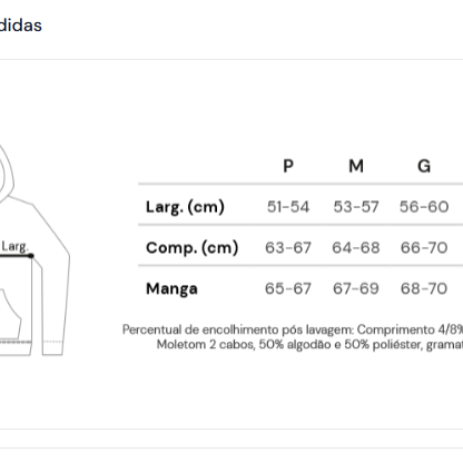 Material: Moletom 2 cabos, gramatura 310.