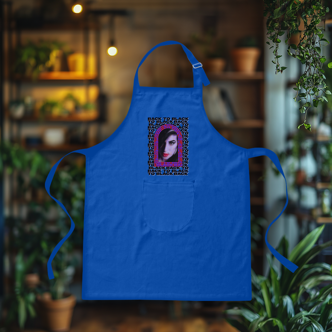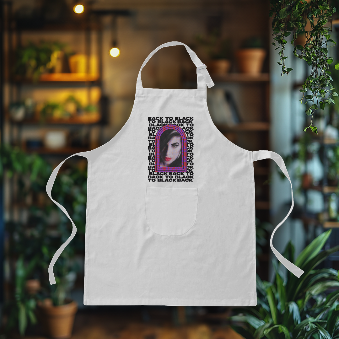 Incorpore o espírito irreverente de Amy Winehouse até na cozinha com este avental exclusivo! Perfeito para os fãs da diva do soul, ele combina personalidade, estilo e praticidade, tornando qualquer momento gastronômico ainda mais especial.
