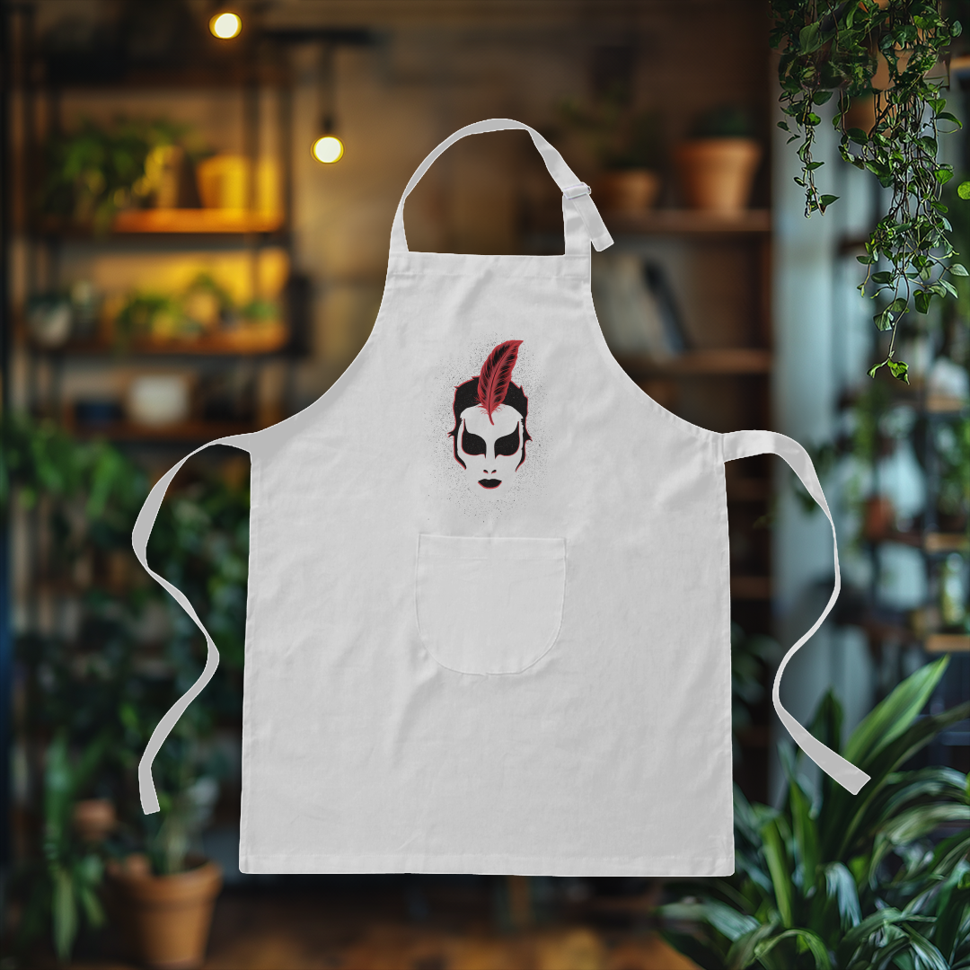 Leve o encanto e a magia para a sua cozinha com o Avental PAVÃO! Com um design enigmático e cheio de personalidade, essa peça traz uma expressão intrigante que parece olhar dentro da alma, despertando mistério e curiosidade enquanto você prepara suas receitas.