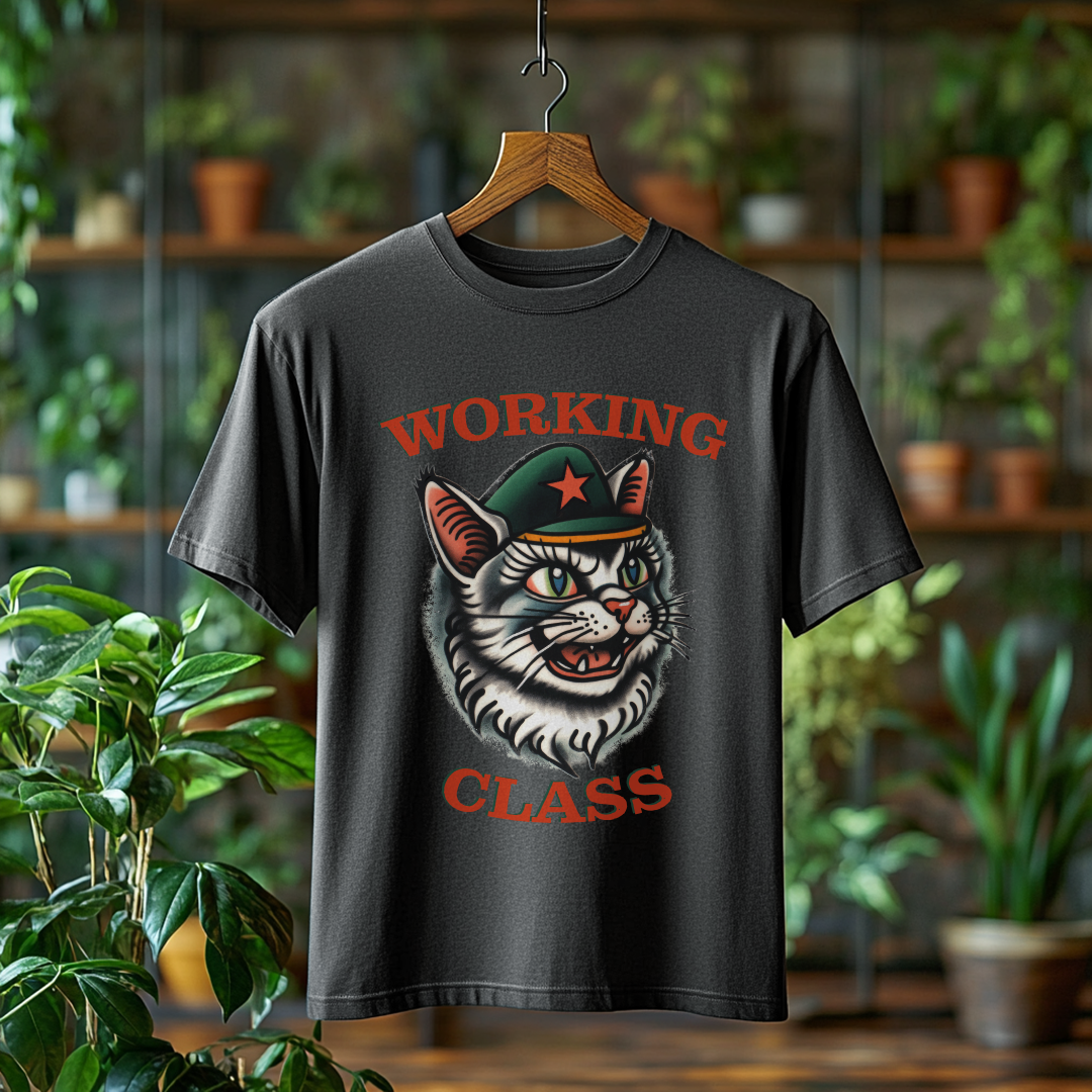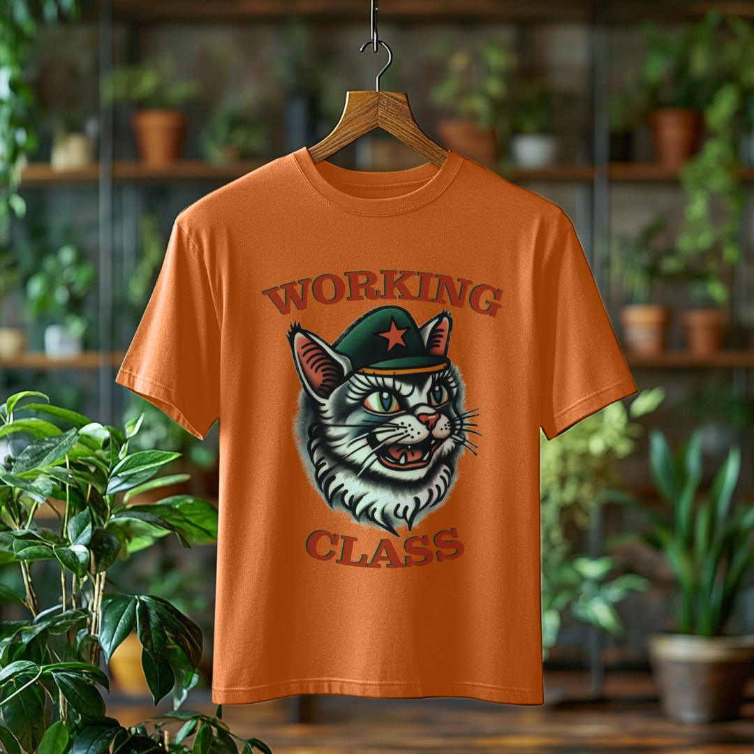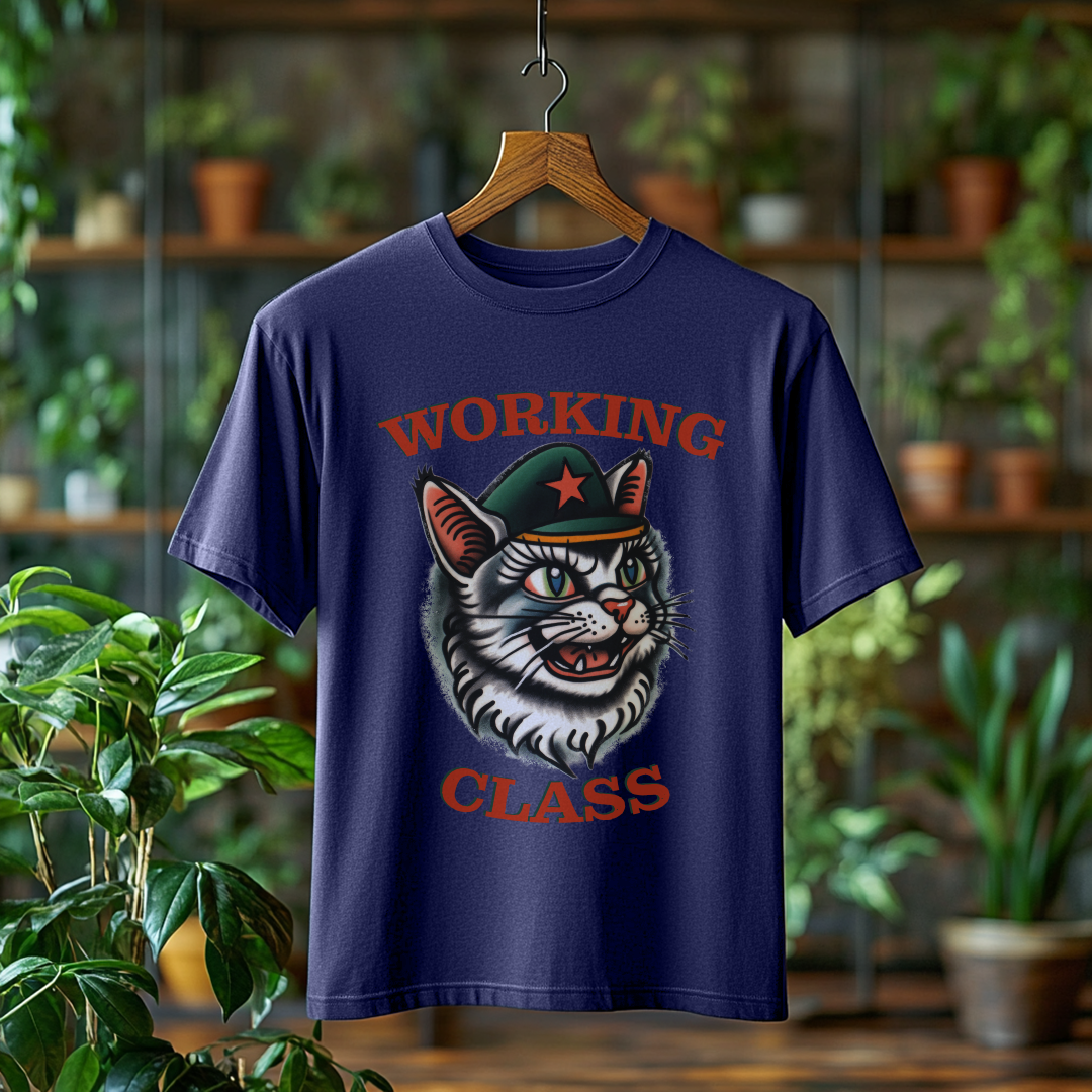 Camiseta Estonada WORKING CLASS é mais do que uma peça de vestuário; é uma verdadeira declaração de princípios! Com a estampa do gatinho com consciência de classe, essa camiseta combina estilo e mensagem, perfeita para quem deseja expressar suas ideias de forma autêntica e divertida.