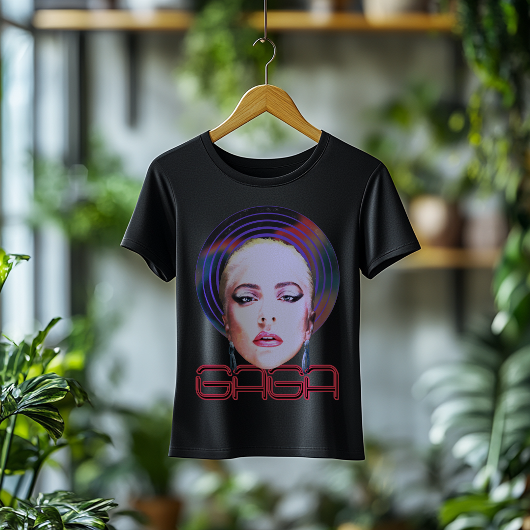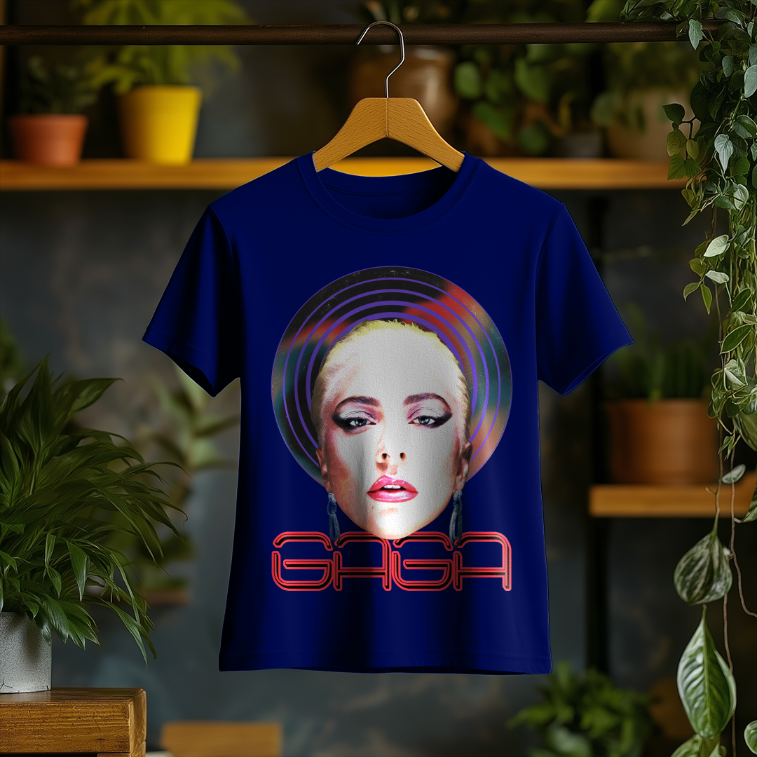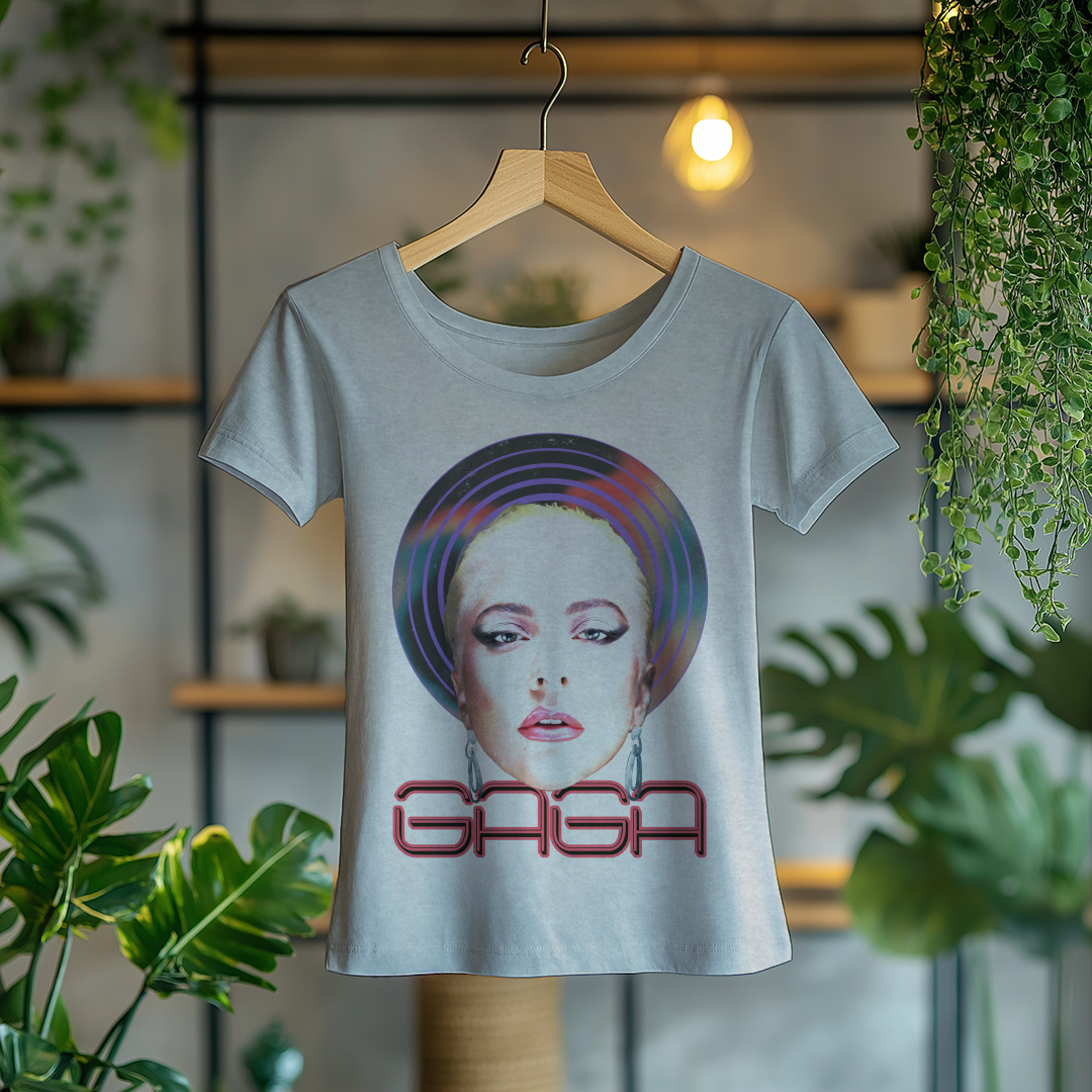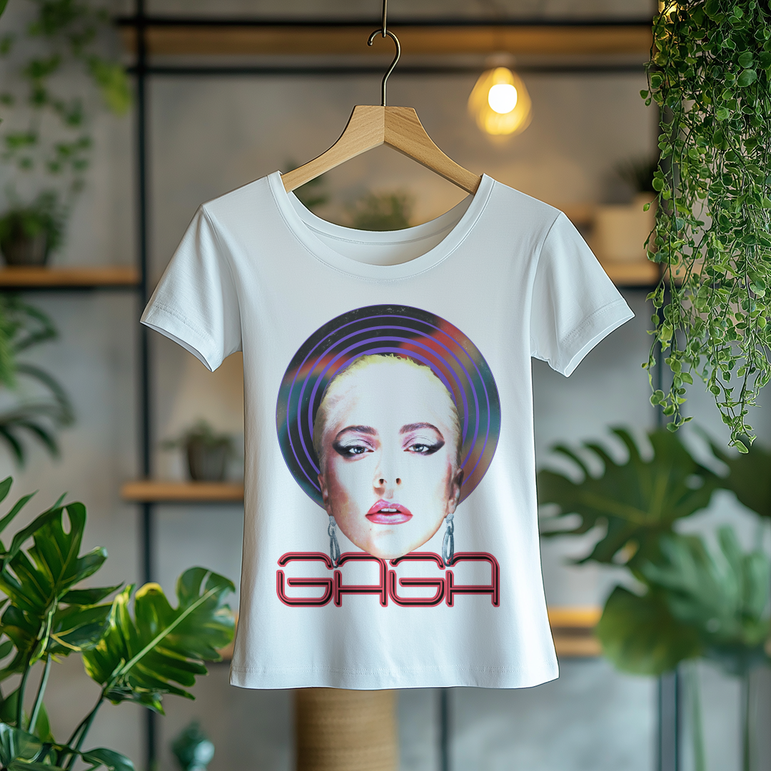 Com um design marcante e cheio de personalidade, a Camiseta Feminina Lady Gaga é a escolha ideal para quem quer homenagear a diva do pop. Seu corte feminino traz um caimento confortável e estiloso, perfeito para fãs que querem carregar a essência icônica de Gaga no dia a dia!