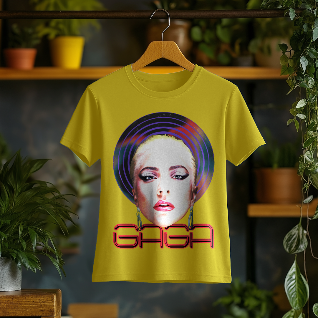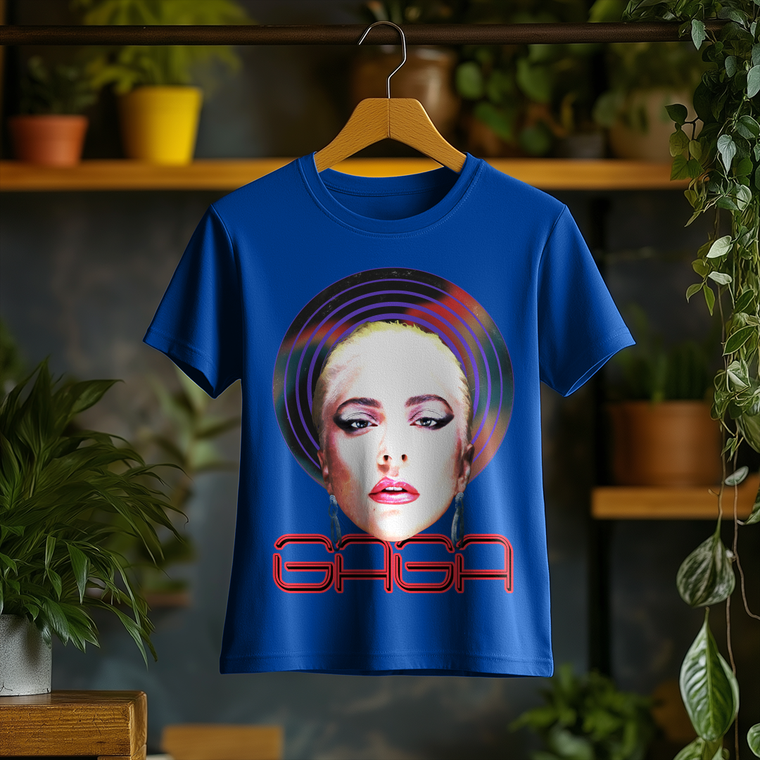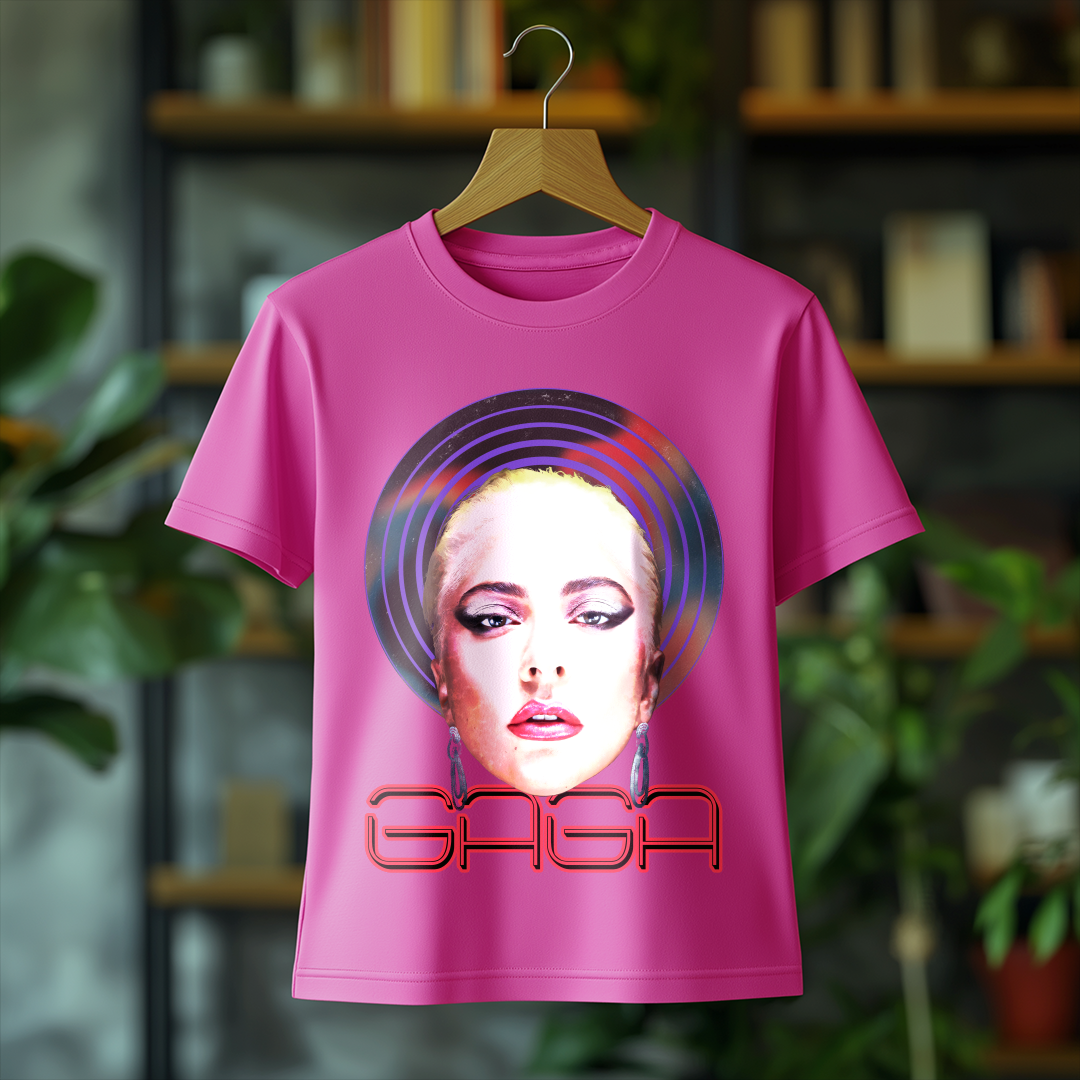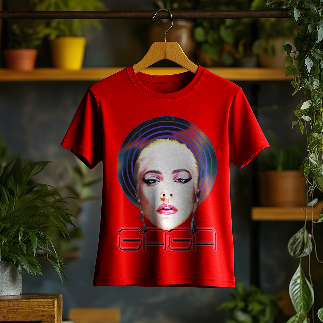 Com um design marcante e cheio de personalidade, a Camiseta Feminina Lady Gaga é a escolha ideal para quem quer homenagear a diva do pop. Seu corte feminino traz um caimento confortável e estiloso, perfeito para fãs que querem carregar a essência icônica de Gaga no dia a dia!