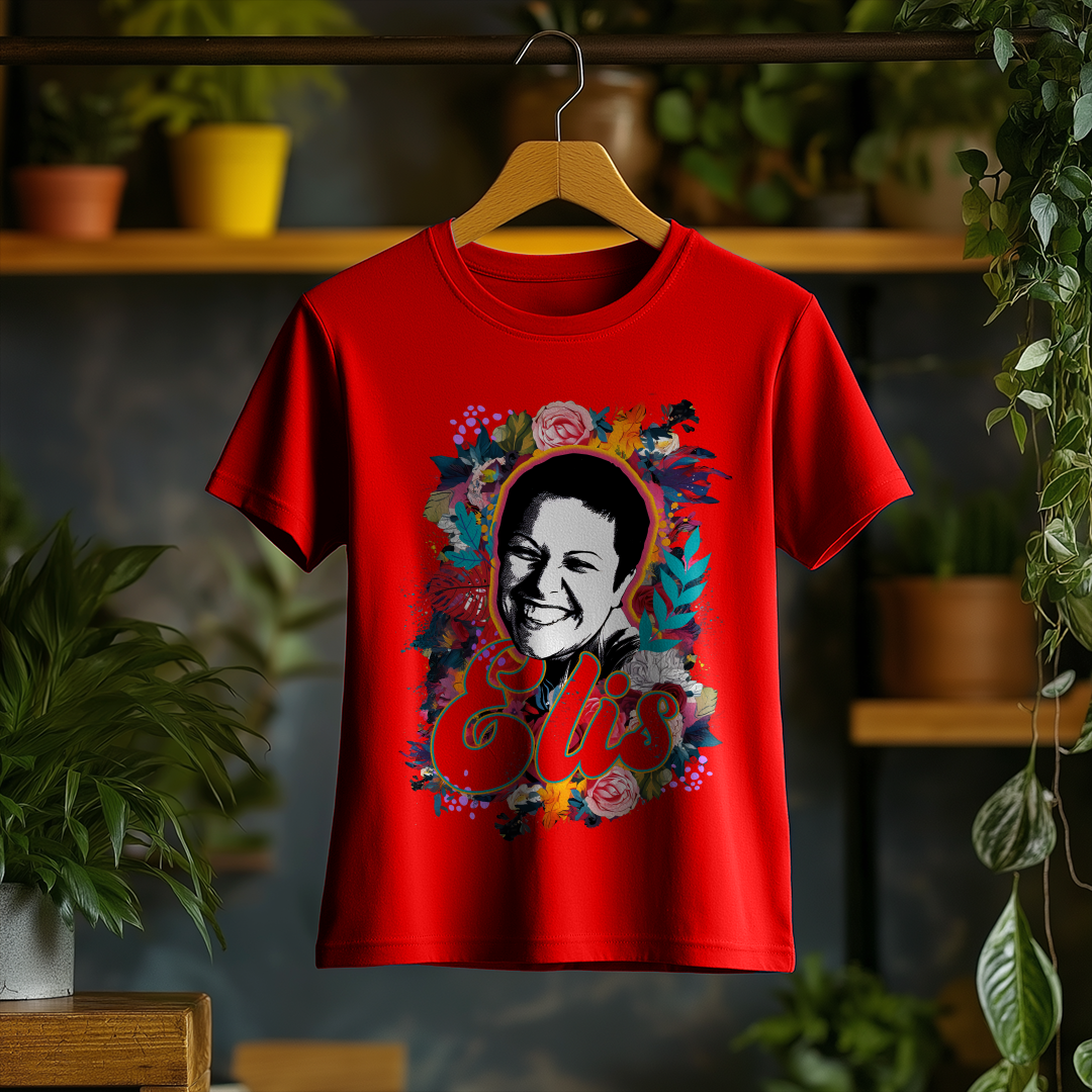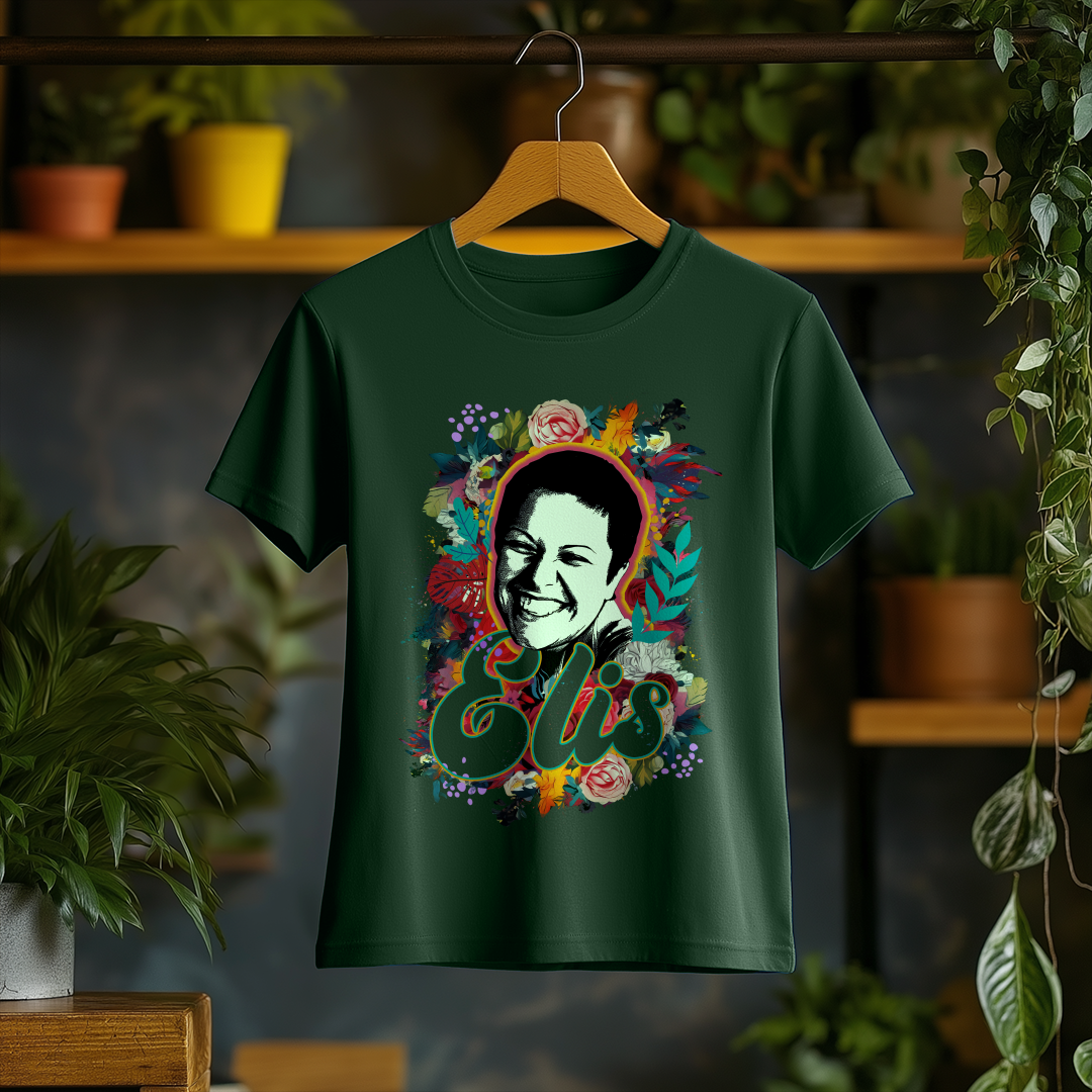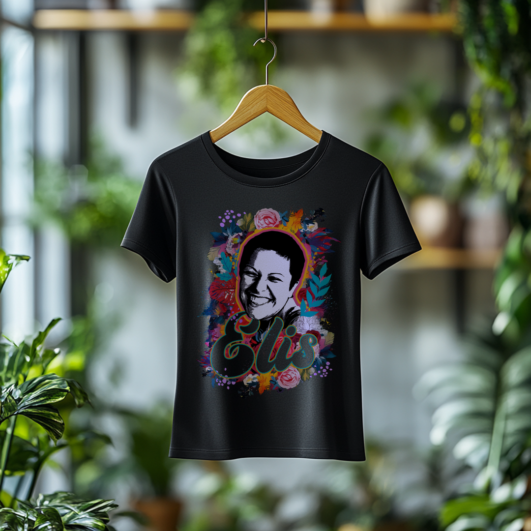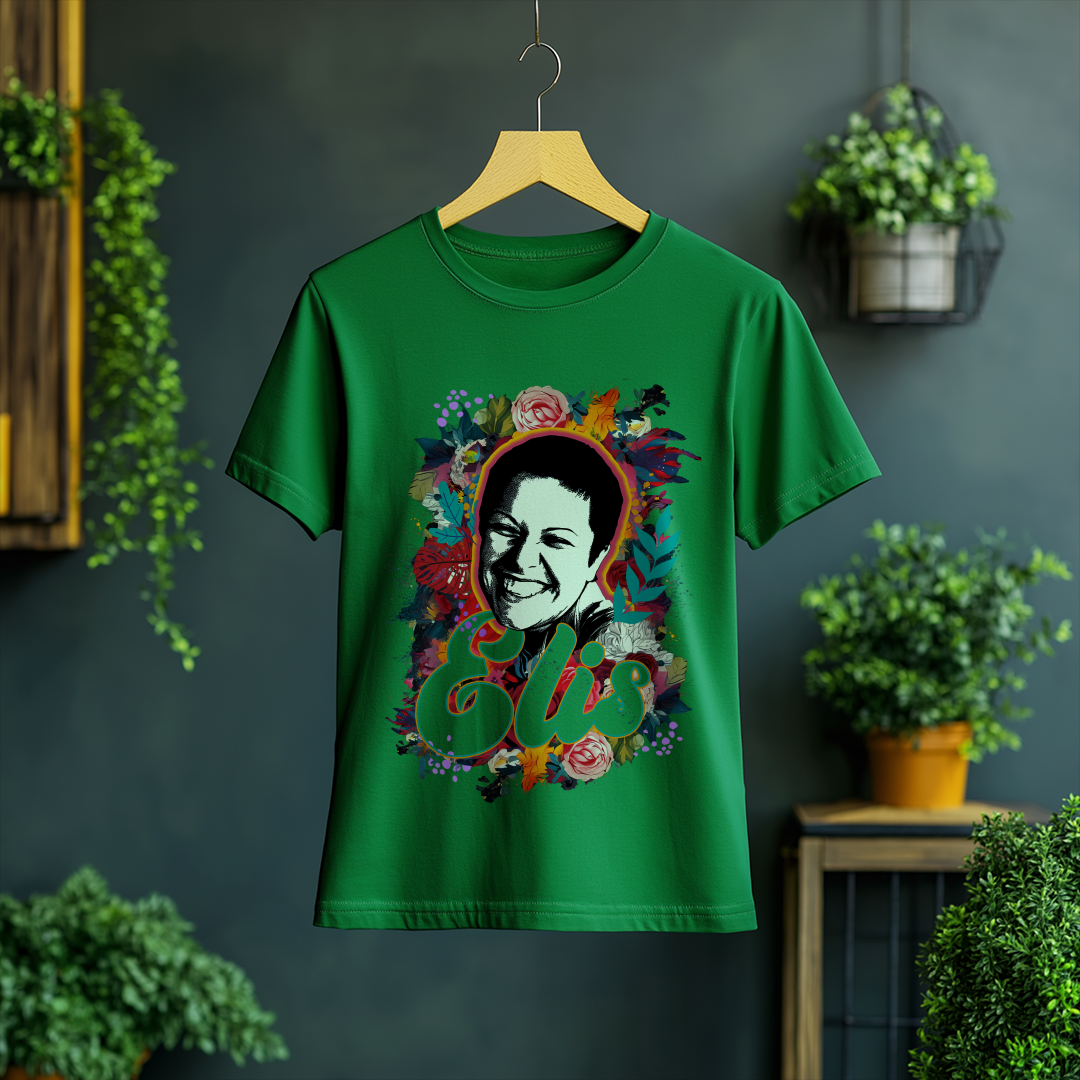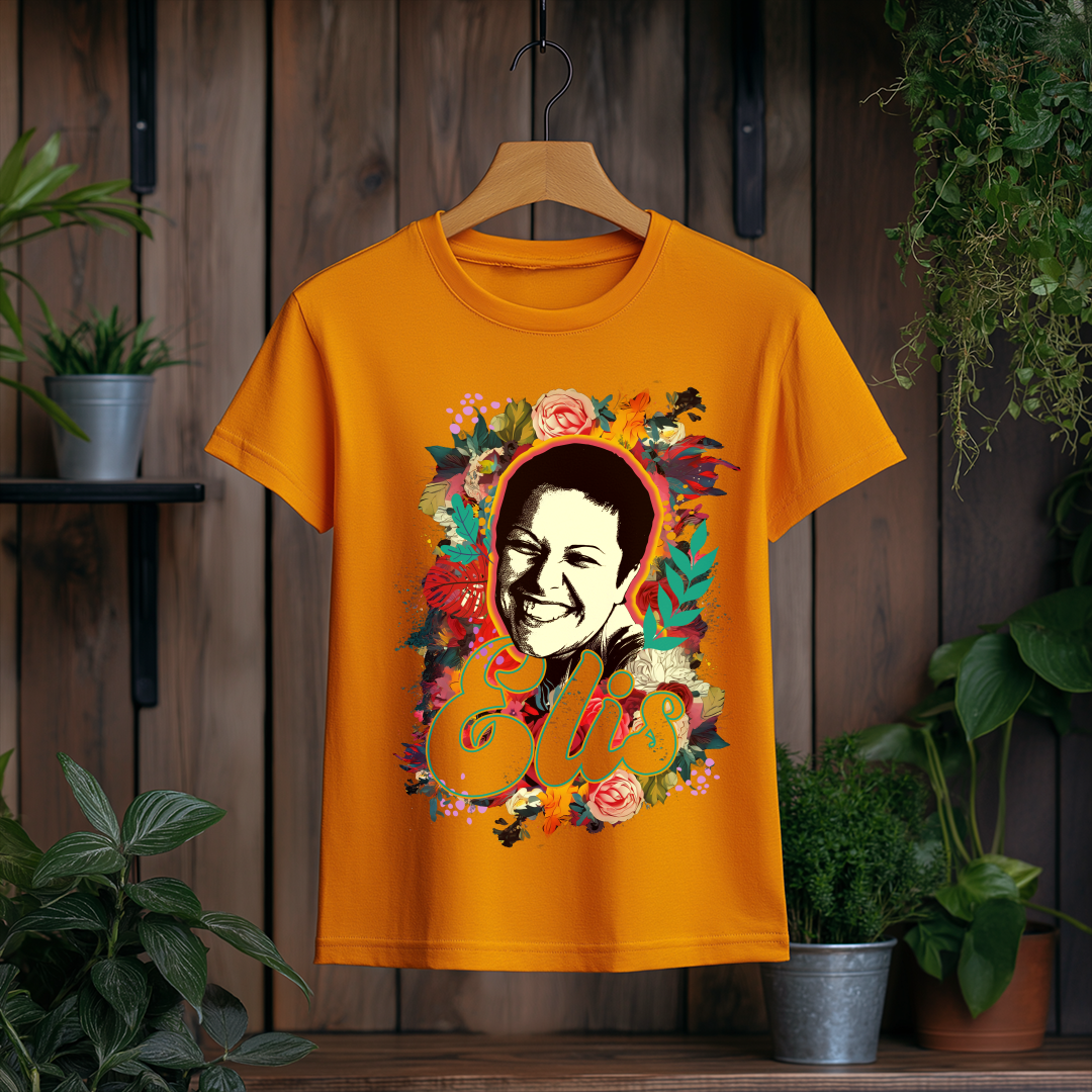 Celebre a genialidade de Elis Regina com a Camiseta Feminina O Sorriso de Elis! Com um design elegante e confortável, essa peça é ideal para fãs que querem carregar no peito a emoção e o talento inigualável da cantora.