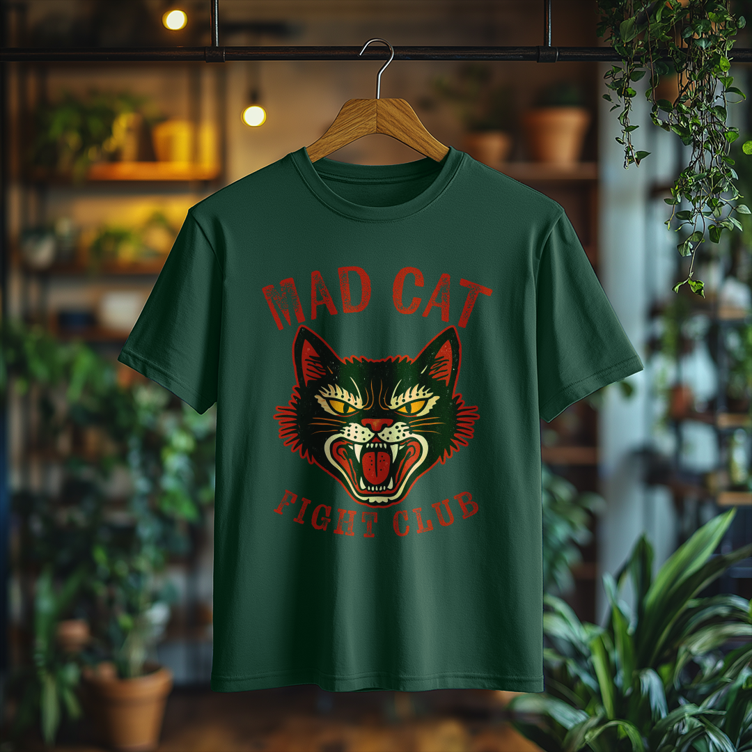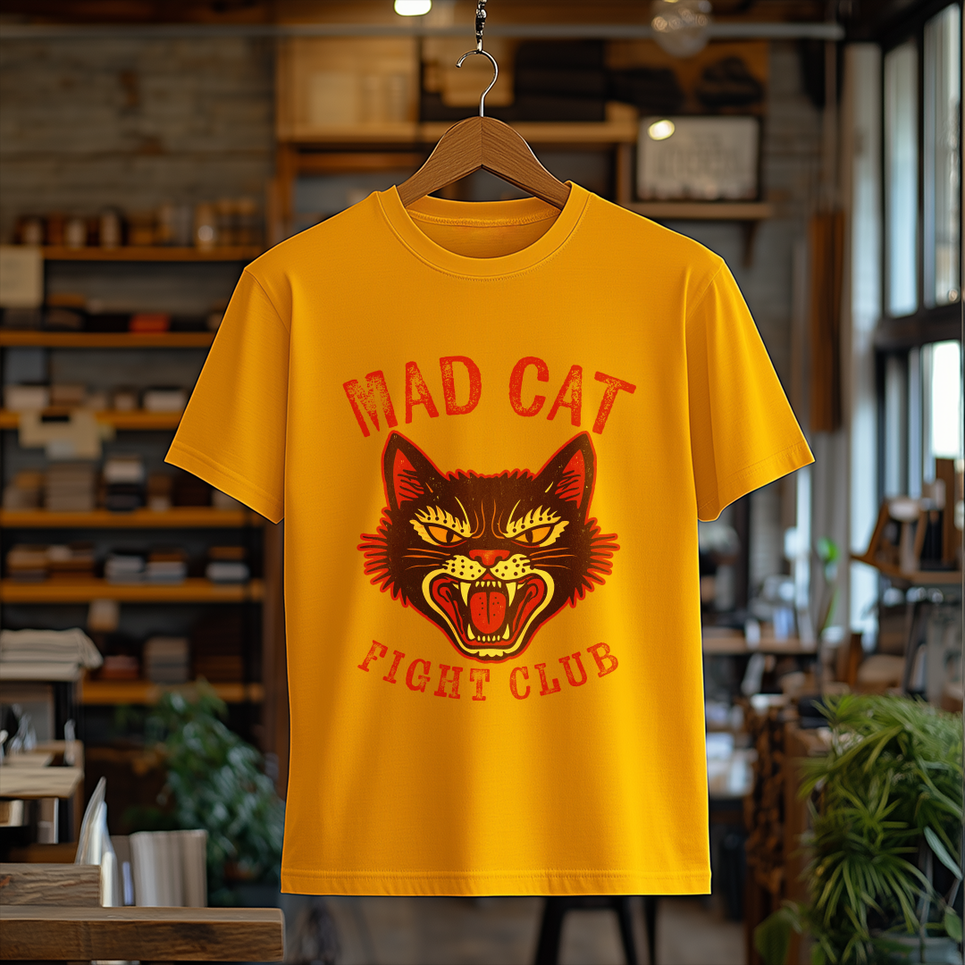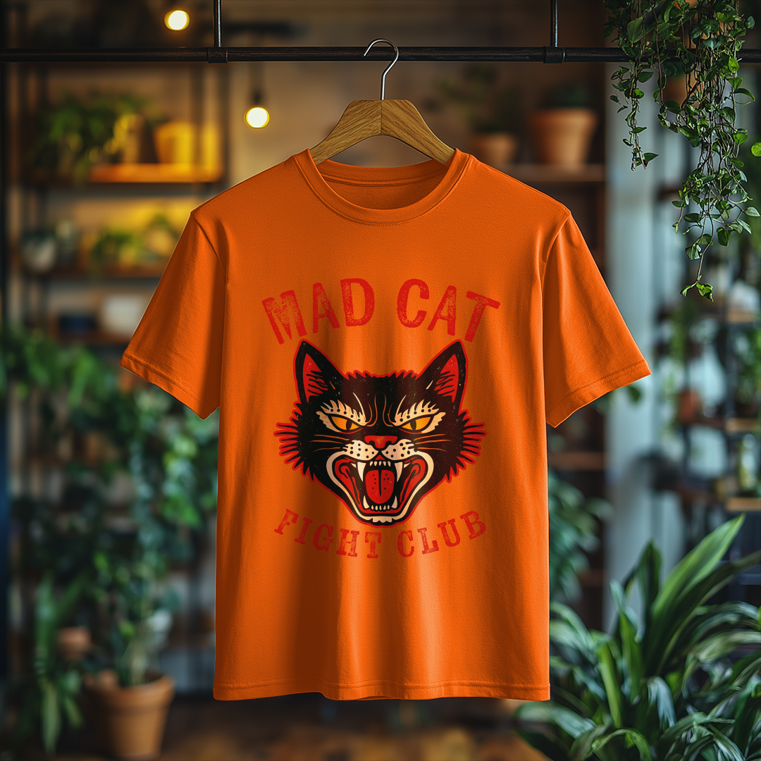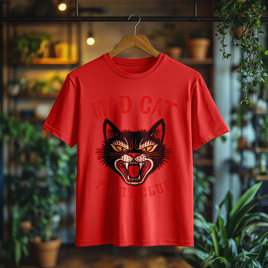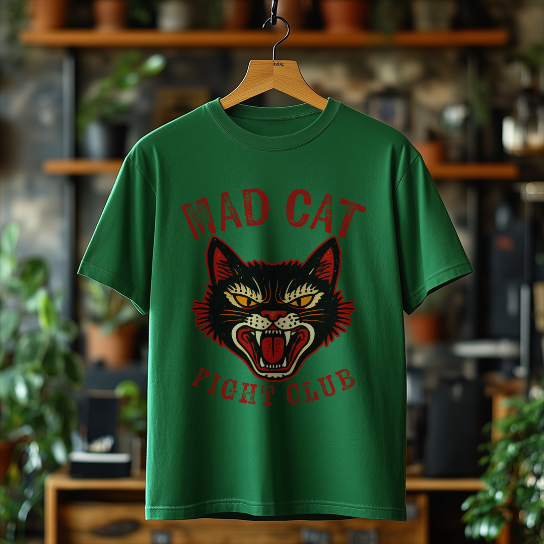 Desperte seu lado divertido com a incrível Camiseta Mad Cat! Com uma estampa vintage de um gato bravo, essa peça é perfeita para quem gosta de adicionar personalidade e humor ao visual.
