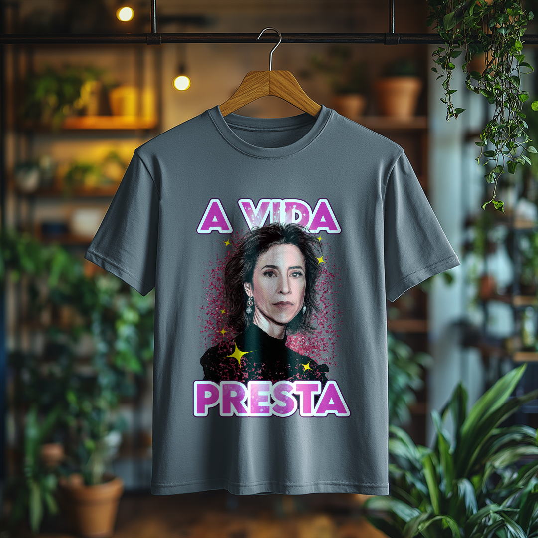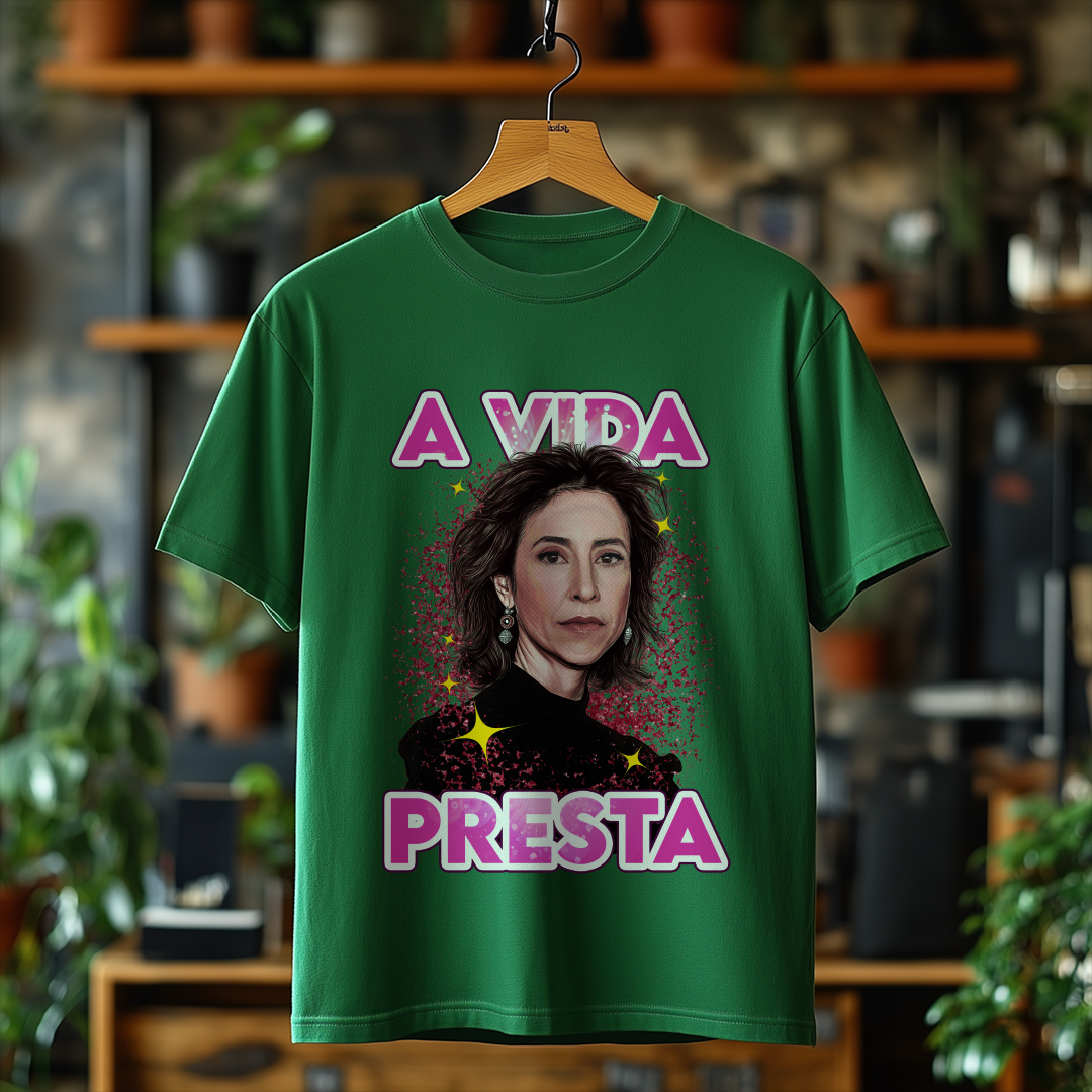 Celebre a força do cinema e das grandes histórias com a Camiseta A Vida Presta! Uma peça icônica para quem se identifica com a mensagem de Ainda Estou Aqui e acredita que cada dia merece ser vivido com plenitude. ✨