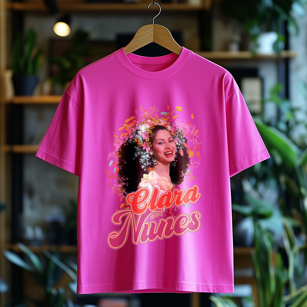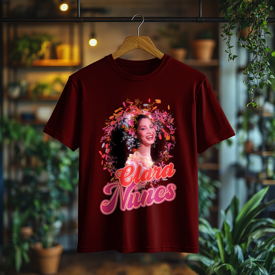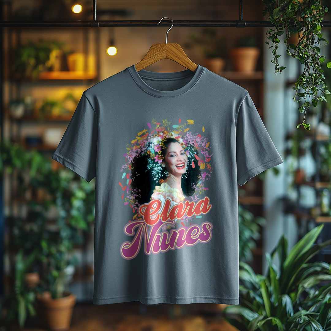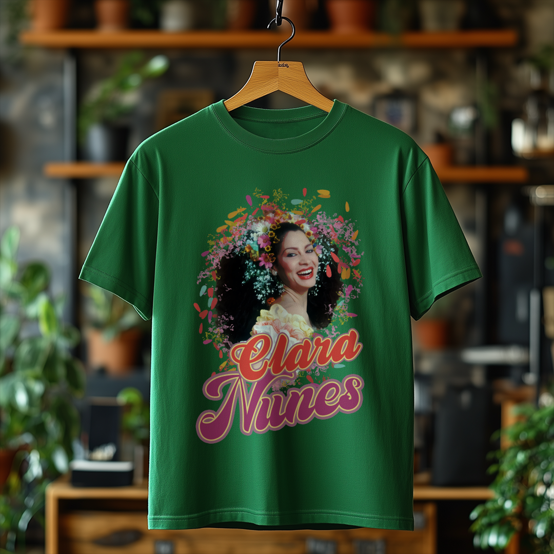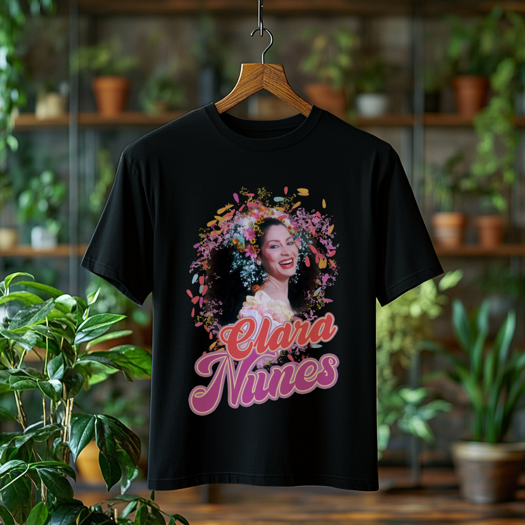 Vista-se com a essência do samba usando a Camiseta Clara Nunes! Um item essencial para qualquer fã da artista que eternizou sua voz na música brasileira. Demonstre seu amor por essa grande estrela com muito estilo!