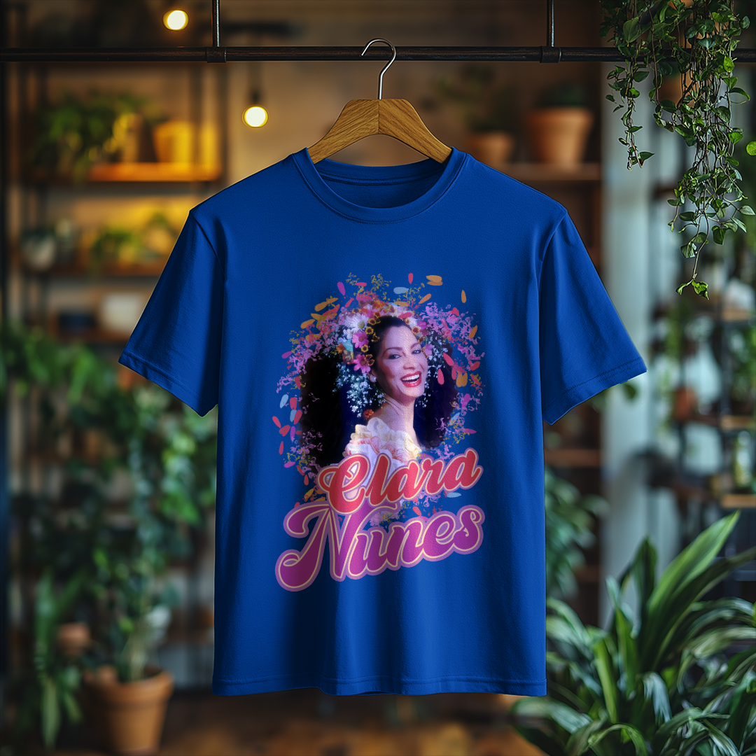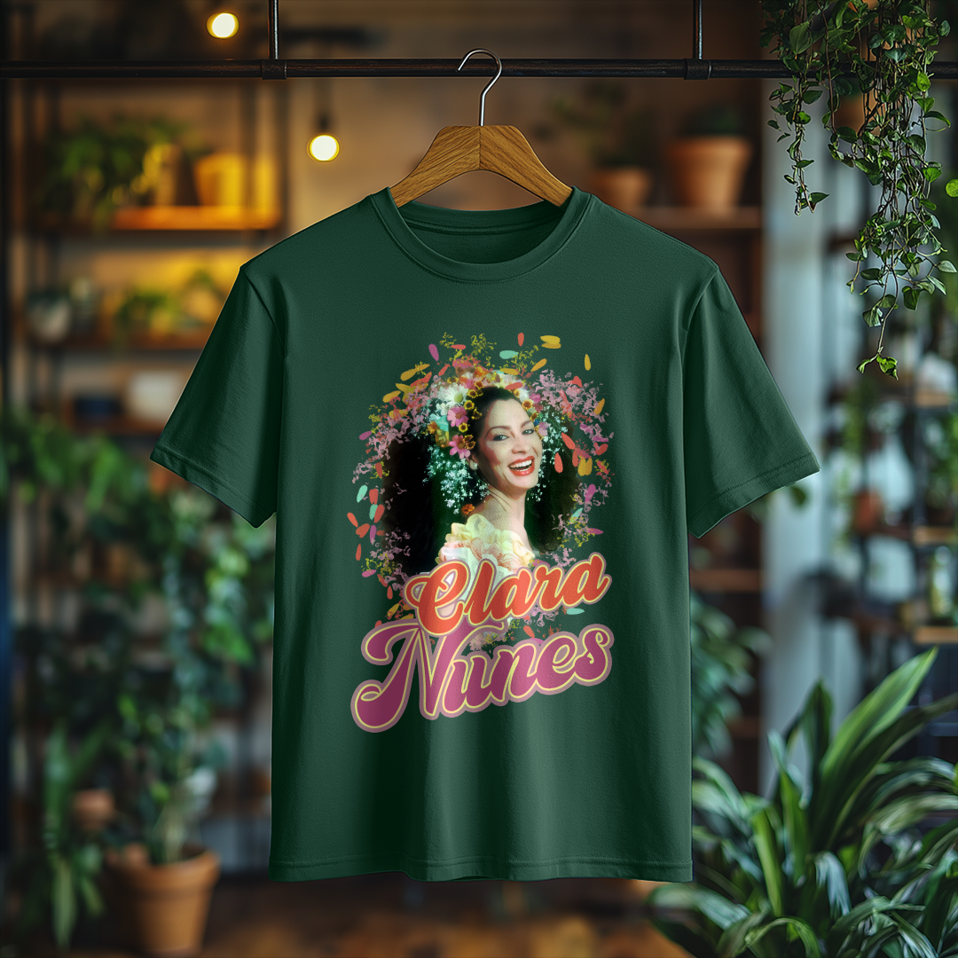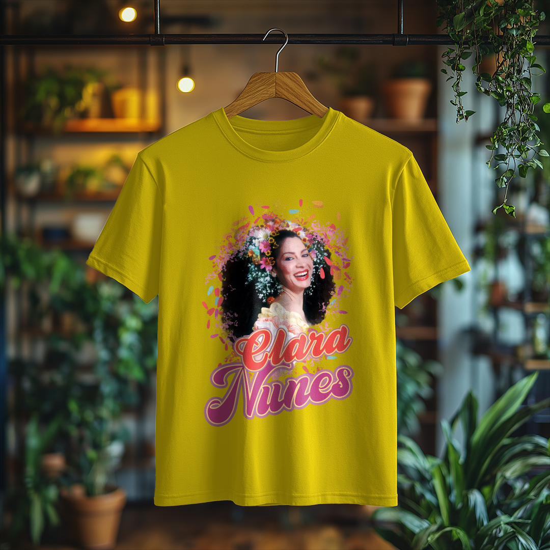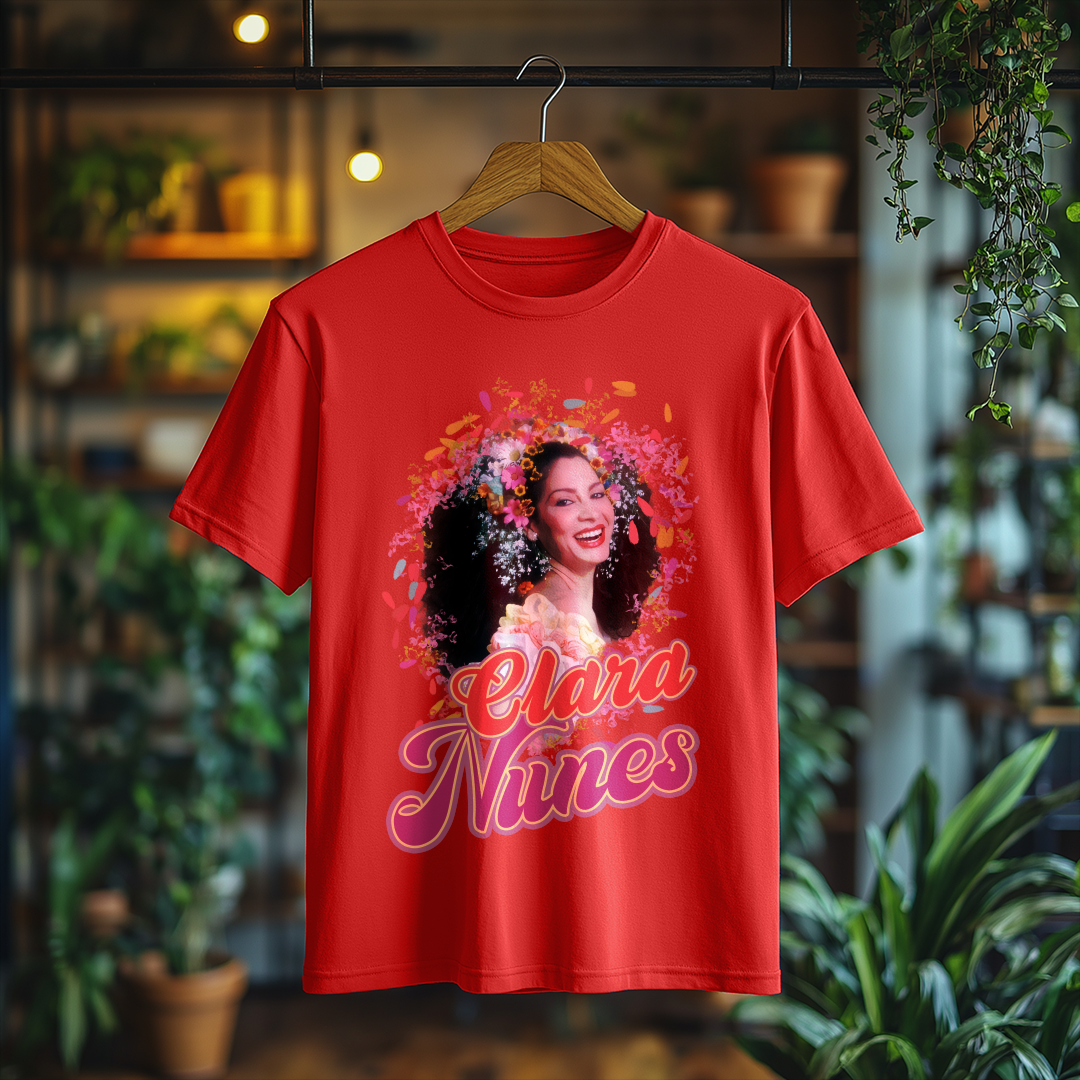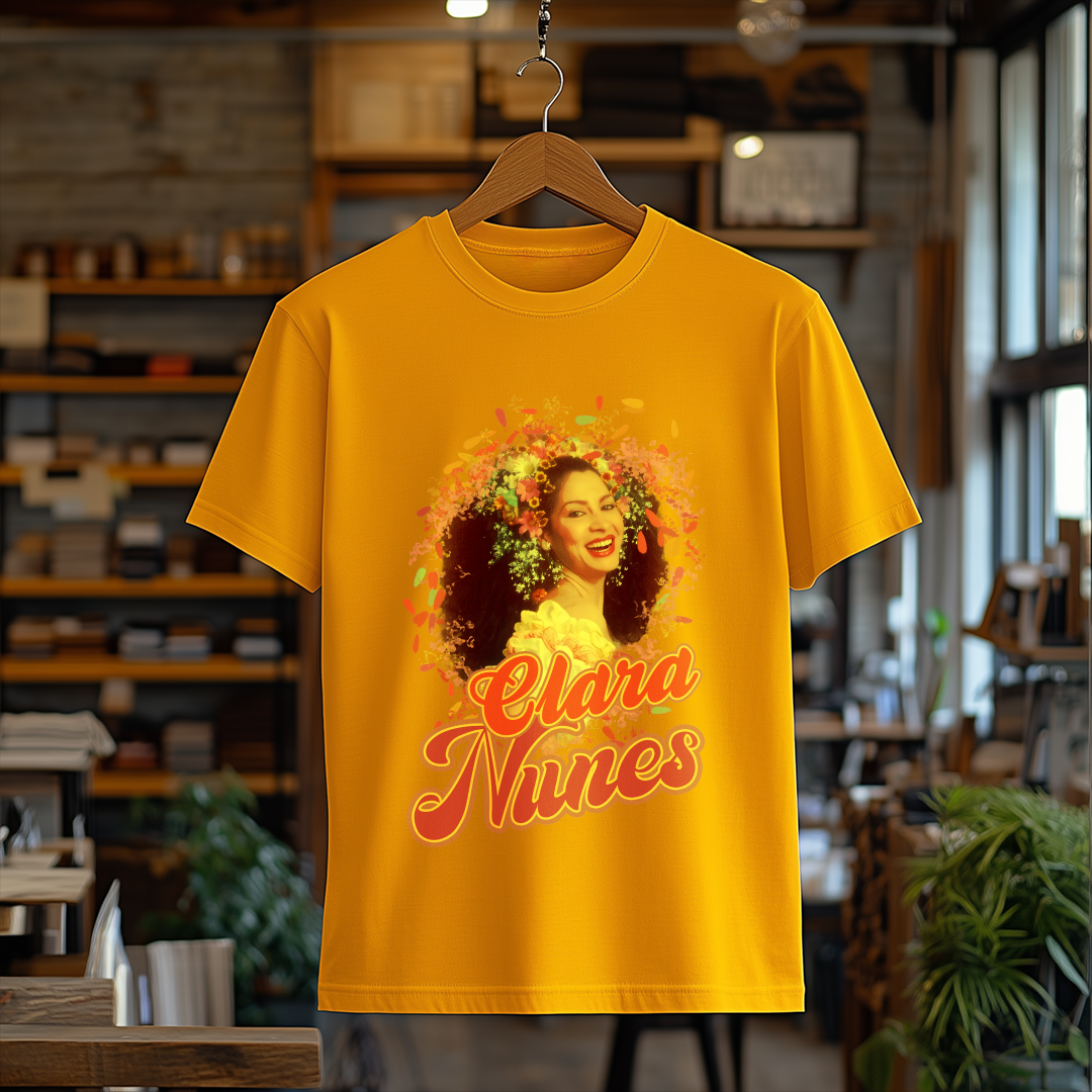 Vista-se com a essência do samba usando a Camiseta Clara Nunes! Um item essencial para qualquer fã da artista que eternizou sua voz na música brasileira. Demonstre seu amor por essa grande estrela com muito estilo!