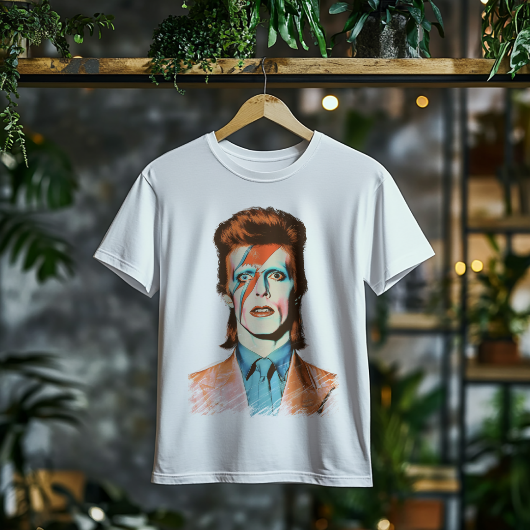 A Camiseta Plus Size David Bowie combina conforto e autenticidade, trazendo a energia do Camaleão do Rock para o seu guarda-roupa. Feita para quem quer expressar sua paixão pelo rock e pela arte de Bowie com muito estilo e caimento perfeito. Vista-se como um verdadeiro ícone! ⚡