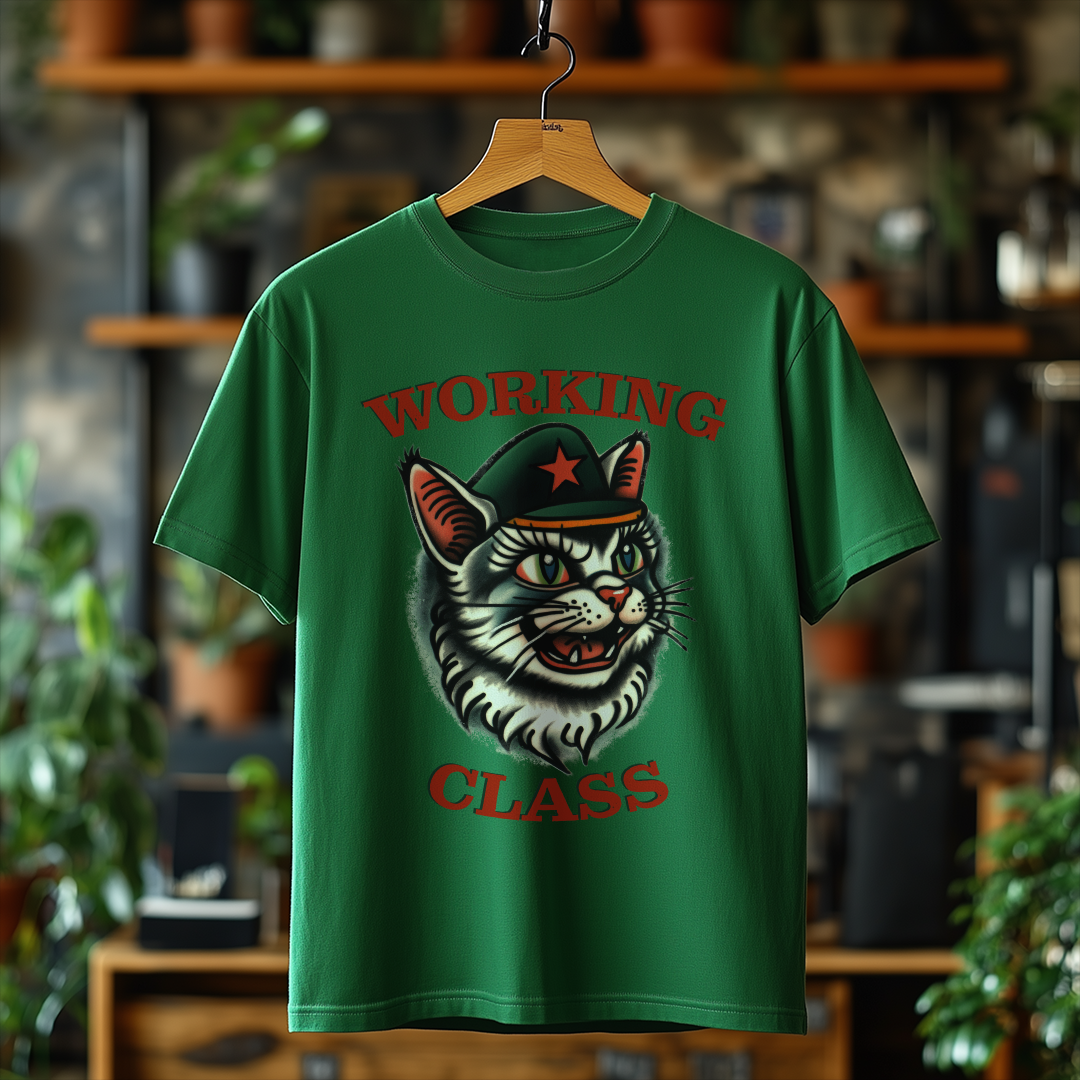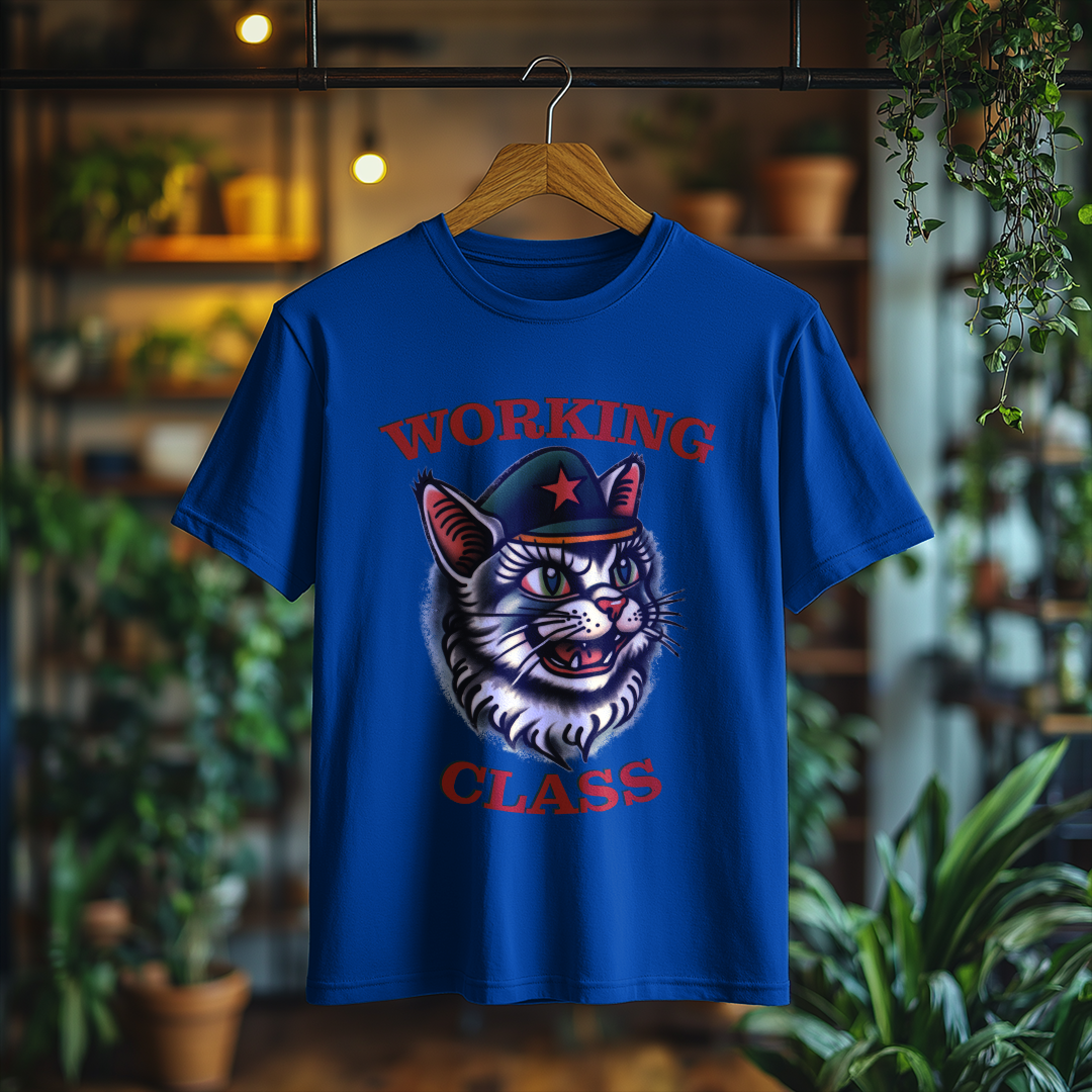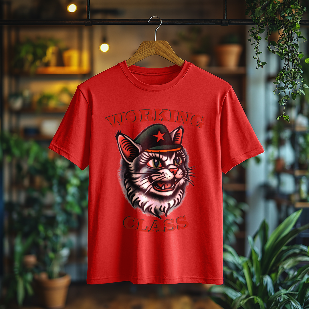 Camiseta WORKING CLASS é mais do que uma peça de vestuário; é uma verdadeira declaração de princípios! Com a estampa do gatinho com consciência de classe, essa camiseta combina estilo e mensagem, perfeita para quem deseja expressar suas ideias de forma autêntica e divertida.