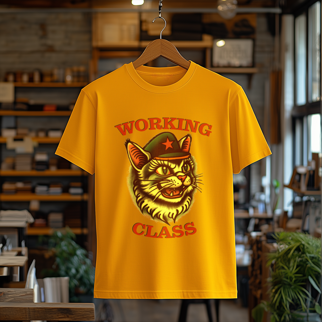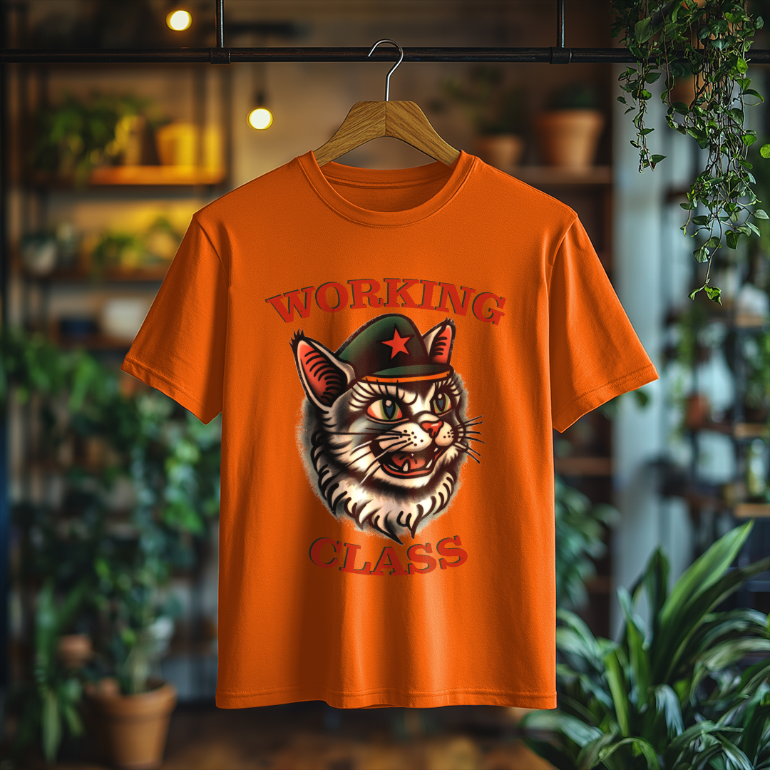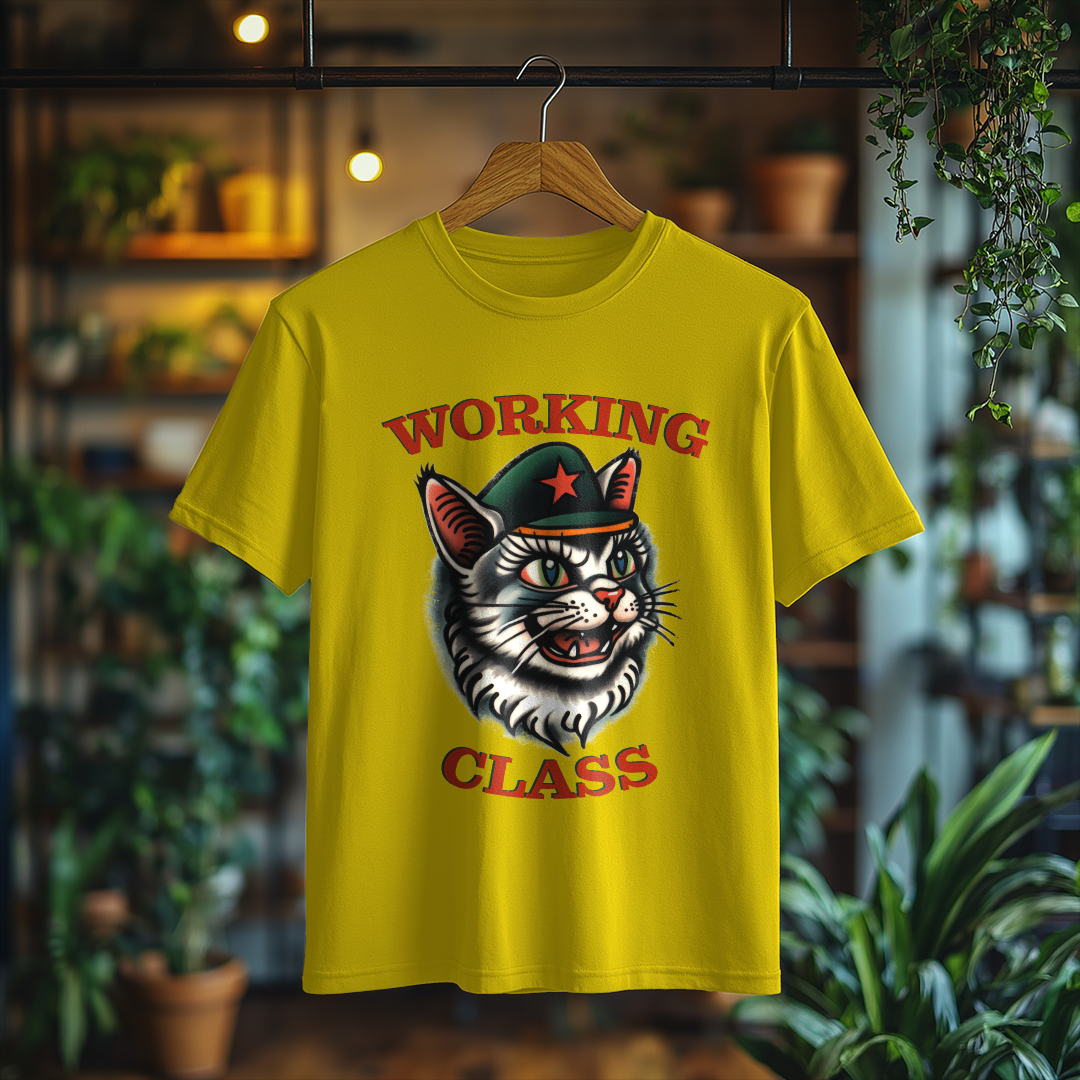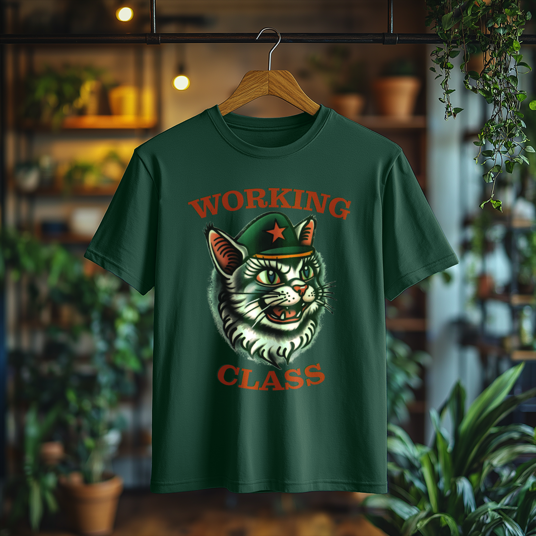 Camiseta WORKING CLASS é mais do que uma peça de vestuário; é uma verdadeira declaração de princípios! Com a estampa do gatinho com consciência de classe, essa camiseta combina estilo e mensagem, perfeita para quem deseja expressar suas ideias de forma autêntica e divertida.