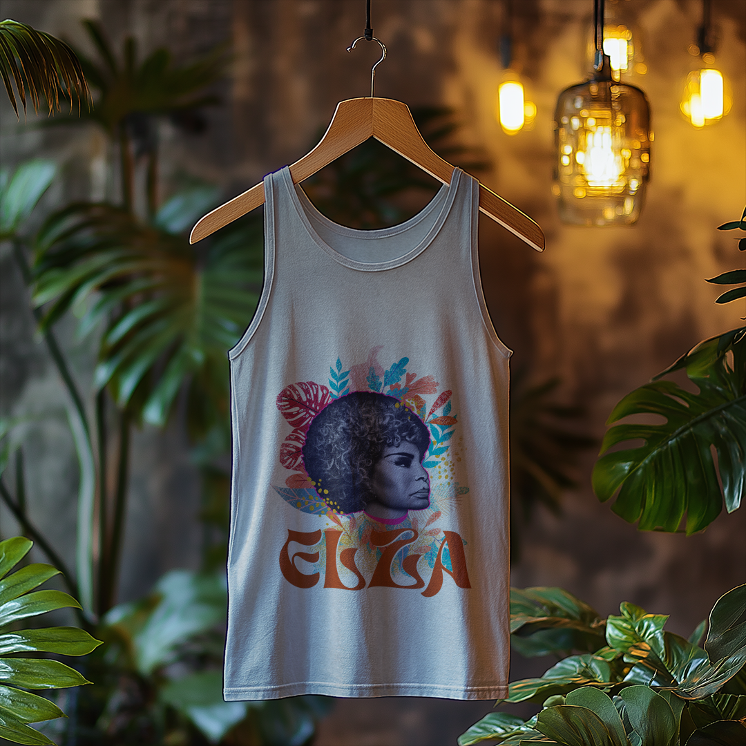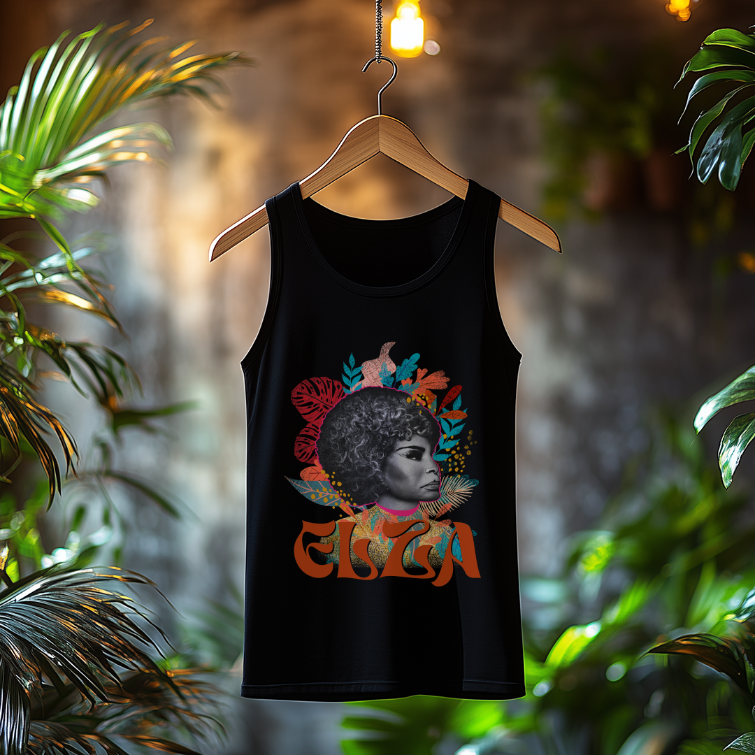 Vista-se com a atitude e a ousadia da mulher do fim do mundo! A Regata Elza é a escolha certa para quem quer conforto e muito estilo enquanto carrega consigo a essência dessa voz imortal.