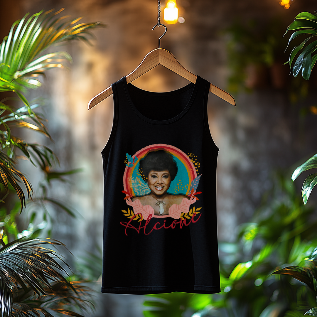 Expresse sua admiração por Alcione, a Rainha do Samba, com a Regata Alcione! Ideal para os dias mais quentes, essa regata combina estilo, conforto e atitude, trazendo a essência da música de Alcione para o seu visual.