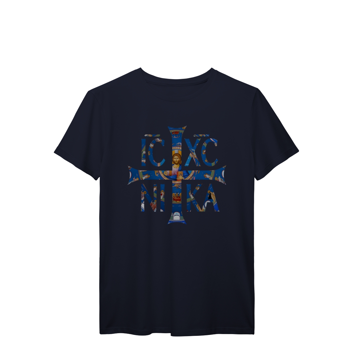 O sagrado encontra o contemporâneo: este design apresenta a cruz bizantina inscrita com o monograma grego antigo IC XC NIKA — "Jesus Cristo Conquista." Uma mistura ousada de teologia e beleza, fundindo iconografia ortodoxa com minimalismo moderno. Perfeito para quem usa sua fé com profundidade e propósito.