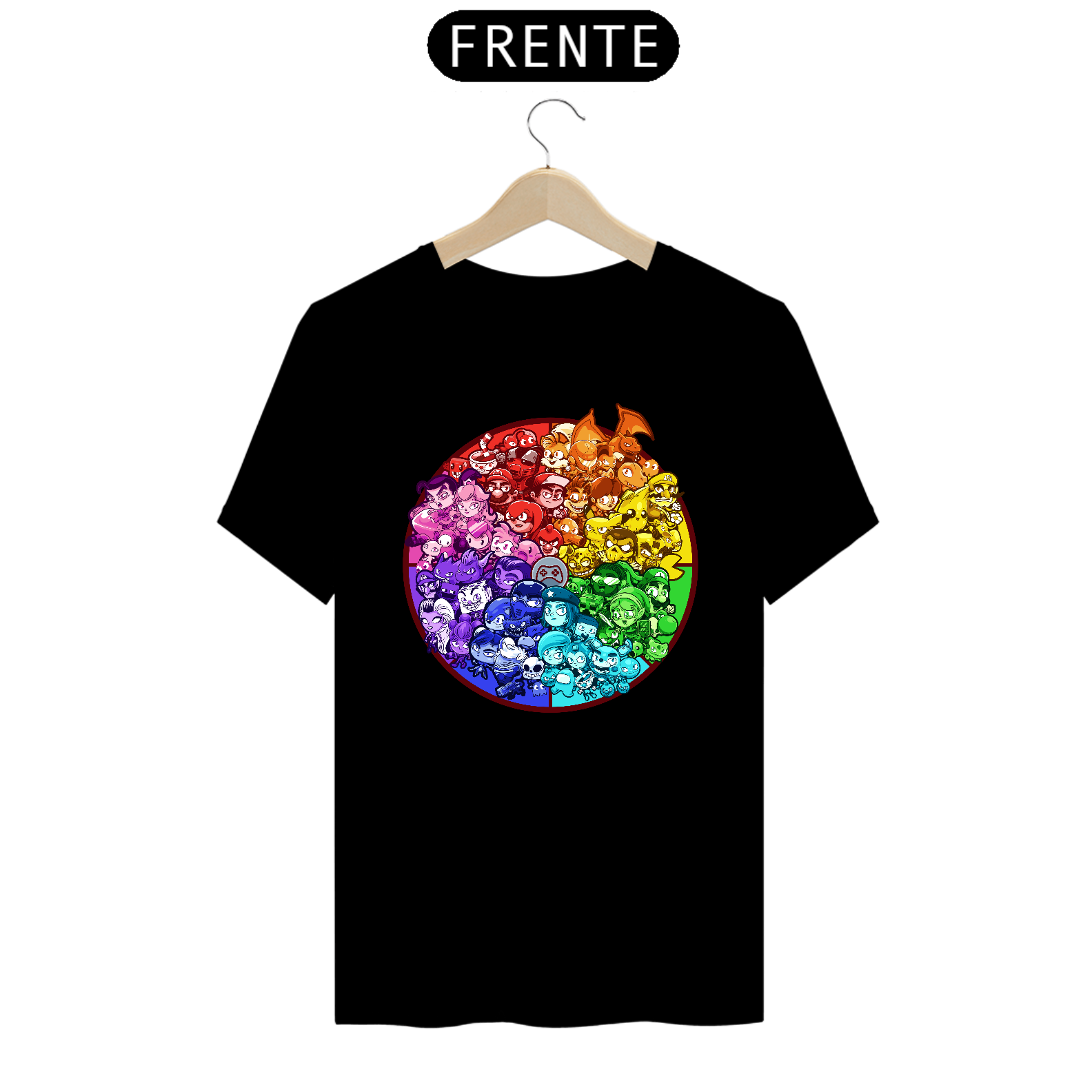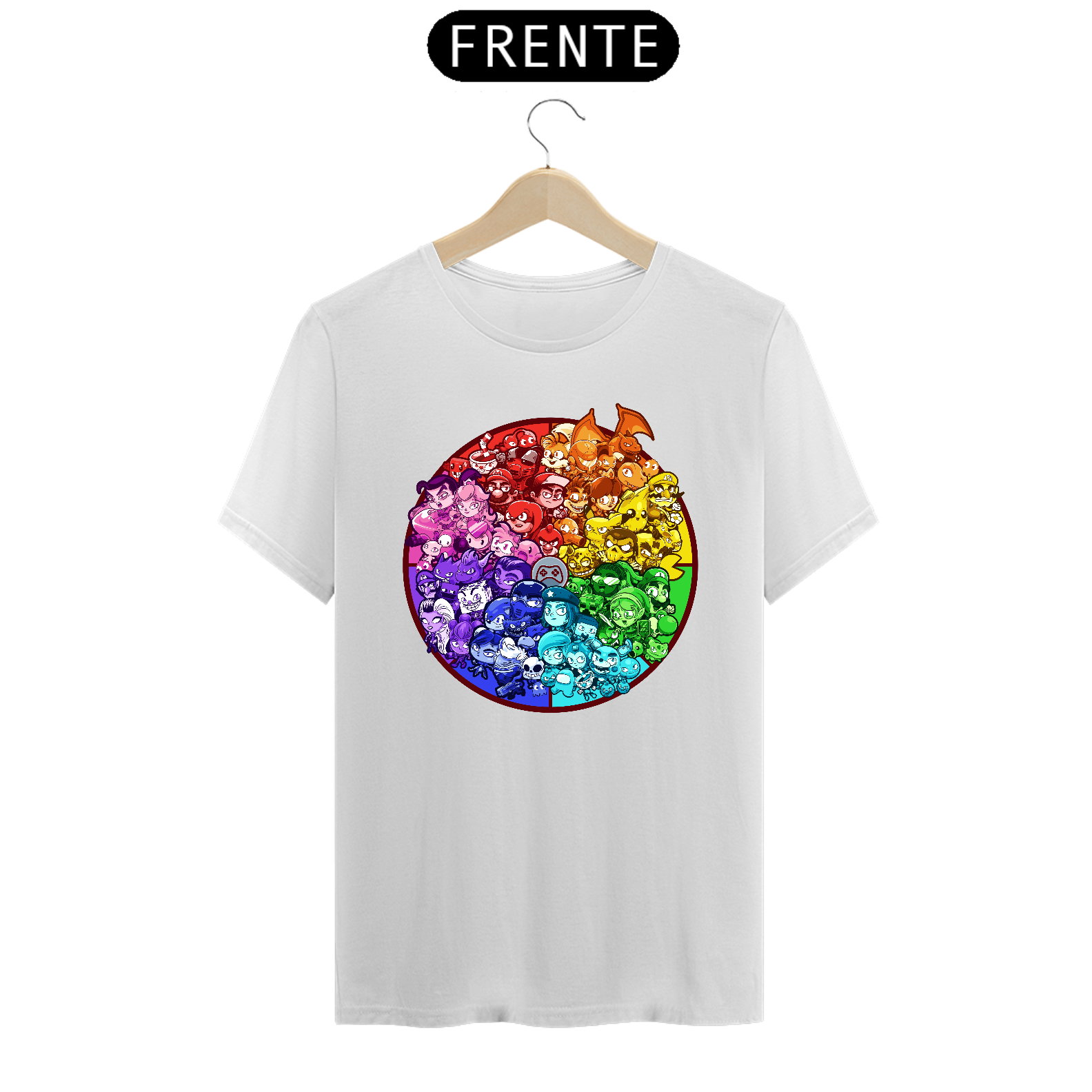 Cores do produto: Como cada tela de computador ou celular tem seu próprio jeito de mostrar cores, então a cor da sua camiseta e da estampa pode ser um pouco diferente do que você viu online.